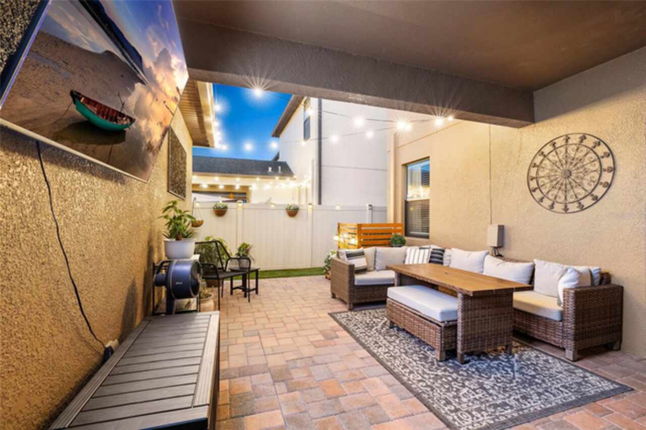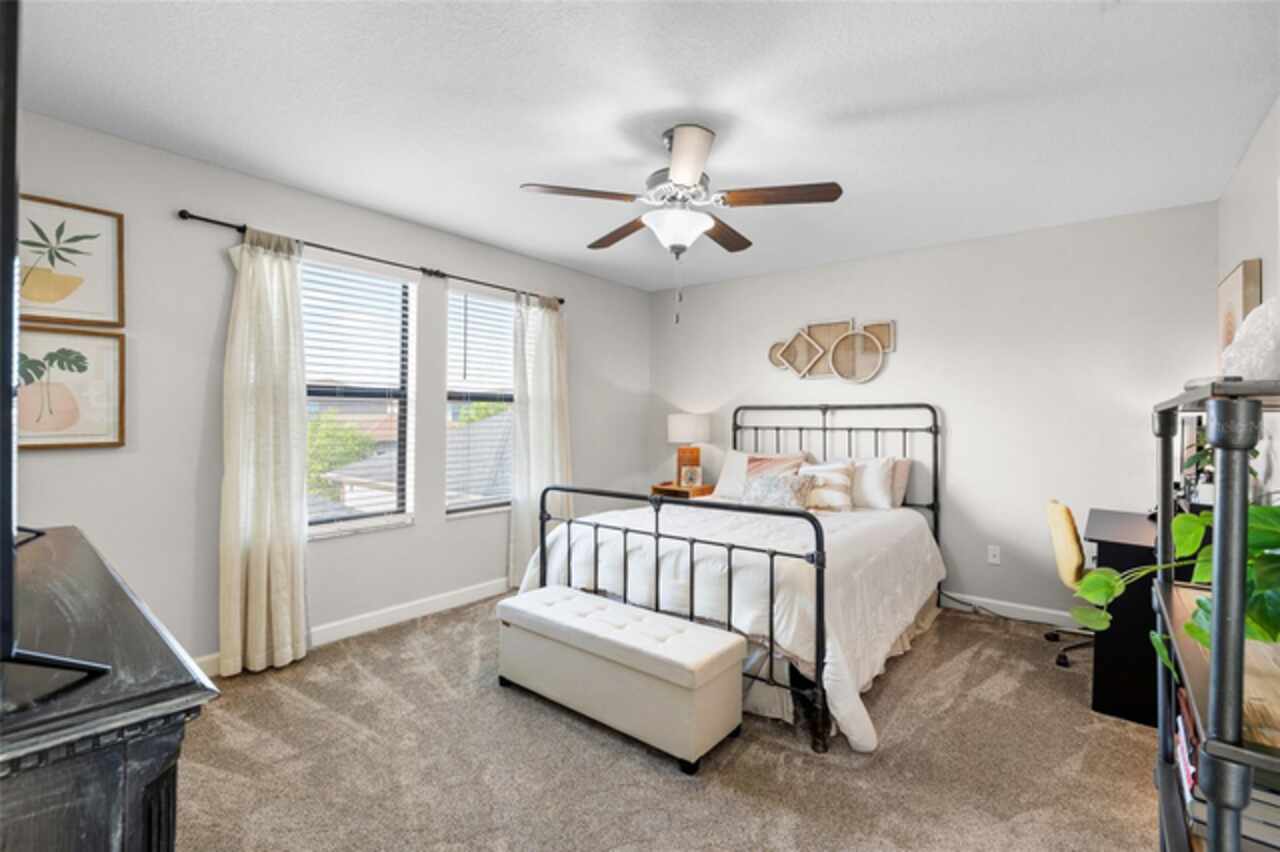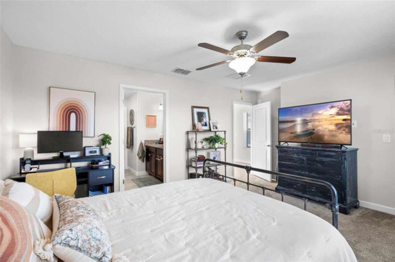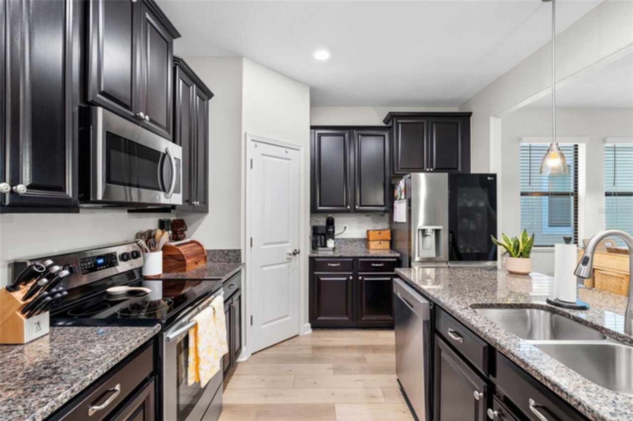 Welcome home to this stunning turnkey two-story residence. Featuring over 2, 000 square feet, 4 bedrooms and 3 bathrooms. This home welcomes you with an open concept living and dining area, perfect for both entertaining and relaxing. The modern kitchen is well-appointed with stainless steel appliances, granite countertops, and ample cabinet space, making it a chef's dream. One bedroom and full bathroom is also located downstairs perfect for an office or guests. Upstairs, you'll find 3 generous sized bedrooms and 2 bathrooms. Including the primary suite, your new retreat, complete with a large closet and attached en-suite bathroom featuring a soaking tub and double vanity. The backyard is the perfect cozy retreat, thoughtfully designed with a covered lounge area and beautifully arranged pavers. Whether savoring a peaceful morning coffee, or hosting a fun get-together with family and friends, this inviting space is crafted for comfort, connection, and relaxation. Leading out to your two-car garage making loading up the car a breeze. All situated in the highly desirable Wiregrass Ranch, just minutes from shopping, dining, entertainment and A rated schools. Enjoy the convenience of being near The Shops at Wiregrass, AdventHealth, and Tampa Premium Outlets. Move right in—no renovations needed! Schedule a showing today and experience the perfect blend of comfort and convenience.