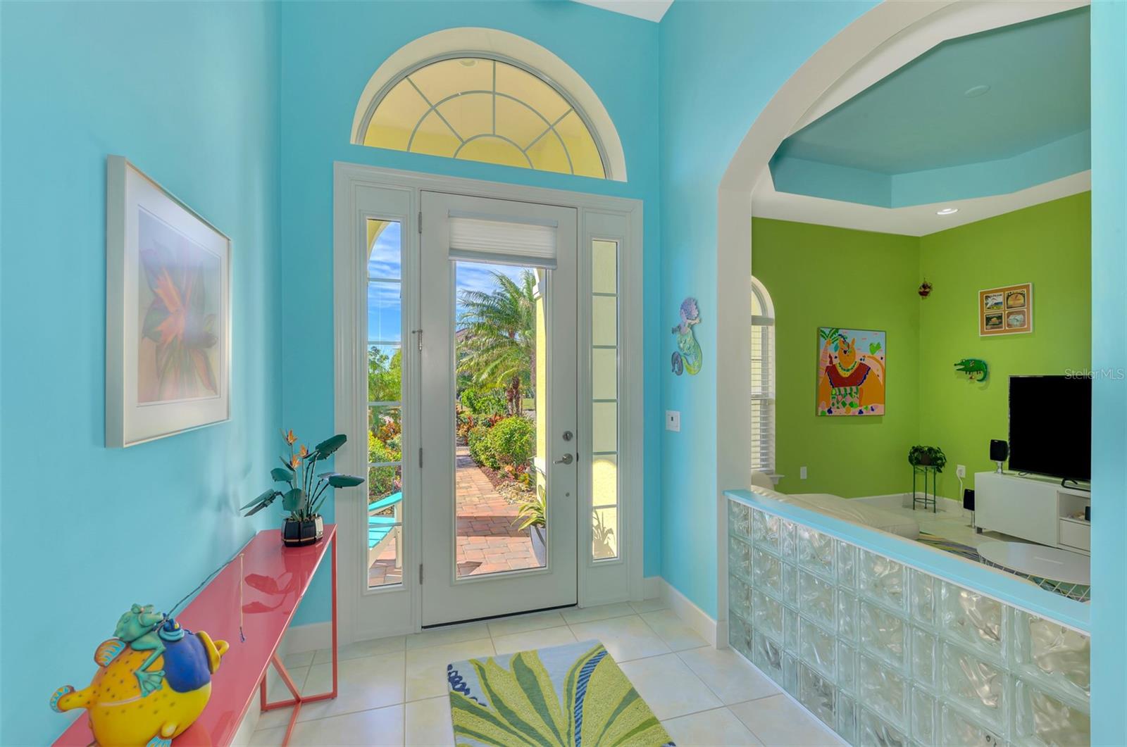 Welcome to Your Tropical Oasis! Step into a world of vibrant charm and perpetual vacation vibes with this stunning 4-bedroom, 3-bathroom Florida retreat. Perfectly blending fun and sophistication, this home is a one-of-a-kind masterpiece with unique Key West-inspired décor. Bright neon and coastal beachy colors create a joyful atmosphere, making every day feel like a getaway. Additionally, what truly sets this home apart is the peace of mind it provides—no storm shutters needed! The home is fully outfitted with certified, energy-efficient IMPACT WINDOWS throughout, offering superior protection, quieter interiors, and long-term value. The property also boasts a desirable extended 3-car garage, offering ample space for vehicles, storage, or even a workshop. Outside, lush, tropical landscaping envelops the home, providing unparalleled privacy and the ambiance of a secluded paradise. The meticulously designed gardens lead to an expansive screened lanai where you'll find the centerpiece of the outdoor living space: a heated pool and spa. Relax on the in-pool lounge chair platform and enjoy the soothing sounds of the cascading fountain and unwind in your own tropical haven. Inside, the home is as functional as it is stylish, offering a large great room open to the kitchen and motorized blinds. Recent valuable upgrades include a brand-new 2024 tile roof, and replaced air conditioner, water heater, dishwasher, and bedroom carpets. Designer furnishings, available for purchase, elevate the refined yet playful vibe, ensuring this home is move-in ready and ideal for entertaining. Whether hosting guests or seeking your own slice of happiness, this home is a perfect blend of relaxation and style—a true “happy place” sure to bring smiles and cherished memories for years to come. Call today to schedule your private showing and explore all the exceptional features of this estate home and the reputable Riverwood community!