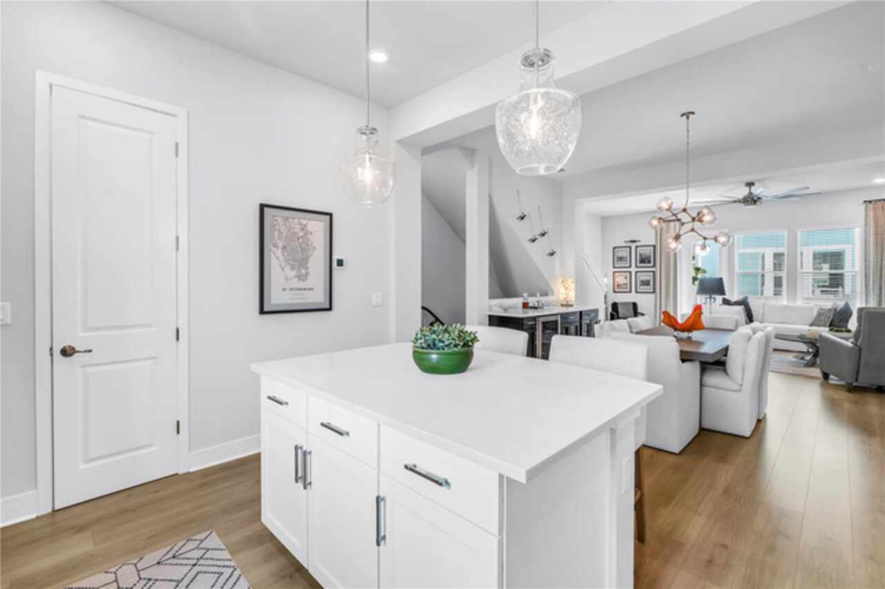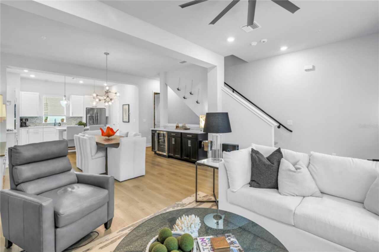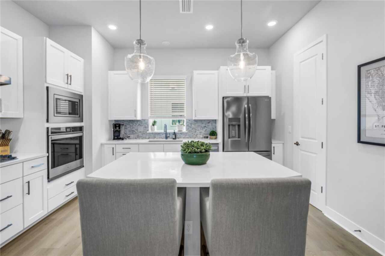 Experience Elevated Urban Living in the Heart of Grand Central! Welcome to this better-than-new 3-bedroom, 3.5-bathroom townhome located in the vibrant Grand Central District of St. Petersburg. Nestled within a gated community offering secure alley and courtyard access, this newer construction home delivers the true Florida lifestyle with a modern urban twist. Step inside to find a thoughtfully designed floor plan where each bedroom features its own private ensuite, offering comfort and privacy for family and guests alike. The main living area boasts an open-concept layout with a spacious kitchen, complete with an oversized island, pantry, and upgraded appliances. Entertain with ease in the connected dining and living areas, enhanced by a built-in dry bar and beverage fridge. A recently renovated powder bath with custom wallpaper and tile adds a touch of designer flair. Upstairs, the expansive primary suite includes a walk-in closet with custom built-in cabinetry and a spa-inspired ensuite bath. A second upstairs bedroom also includes its own ensuite, perfect for guests or a home office. Additional highlights include a 2-car attached garage equipped for your electric vehicle, high-end finishes throughout, and the convenience of low-maintenance townhome living — all just steps from the shops, dining, and culture of Grand Central and Downtown St. Pete. For the right offer, furnishings may also be included, making this an exceptional turnkey opportunity. Don’t miss your chance to own a stunning home that blends luxury, location, and lifestyle! Transferable builder warranty and AC warranty included.