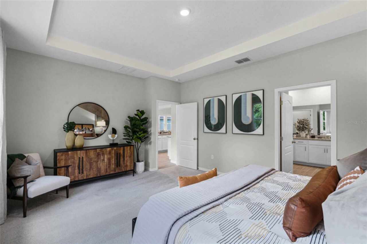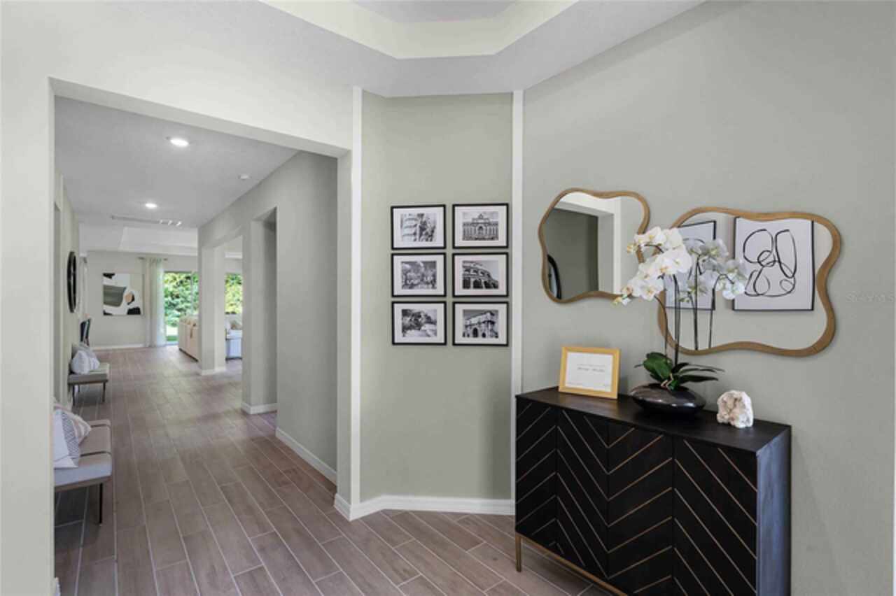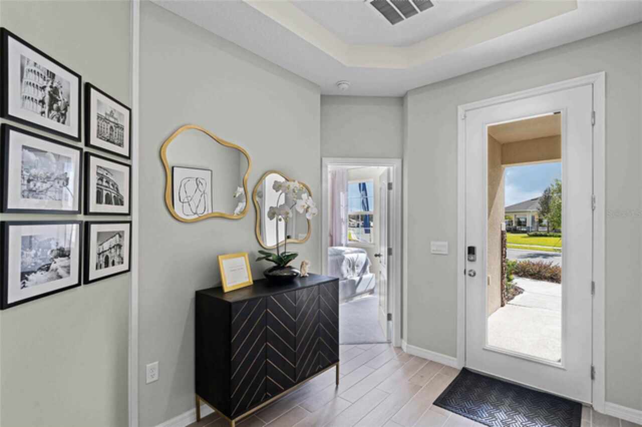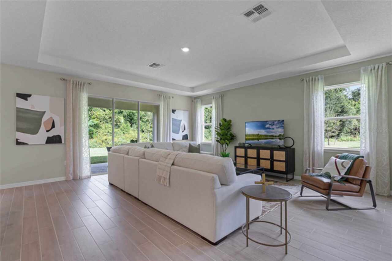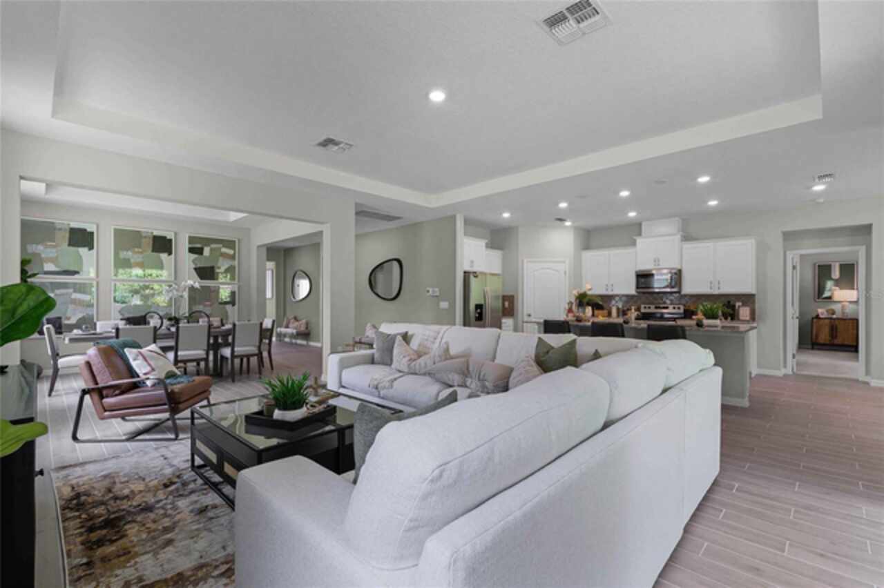 "Step into the Camden at Harmony West, one of our floorplans featuring a seamless blend of modern design and functionality. This all-concrete block constructed, one-story multi-gen layout offers two homes under one roof. As you enter the foyer you are greeted with two guest bedrooms that share an en suite bathroom with a double vanity. Making your way down the hall you will find a large dining room perfect for the whole family. The well-appointed kitchen overlooks the great room and features an island with bar seating, beautiful granite countertops and stainless-steel appliances. Enjoy views of the oversized covered lanai from the café area just off the kitchen. Bedroom one, located at the back of the house for privacy, has an en suite bathroom with a double vanity and two spacious walk-in closets providing ample space for storage. This floorplan offers more than just a spare guest room. It’s two homes — the main home area with a separate suite including living space, bedroom, kitchenette and private entrances with the convenience and safety of a connecting door. Like all homes in Harmony West, the Camden includes a Home is Connected smart home technology package which allows you to control your home with your smart device while near or away. *Photos are of similar model but not that of exact house. Pictures, photographs, colors, features, and sizes are for illustration purposes only and will vary from the homes as built. Home and community information including pricing, included features, terms, availability and amenities are subject to change and prior sale at any time without notice or obligation. Please note that no representations or warranties are made regarding school districts or school assignments; you should conduct your own investigation regarding current and future schools and school boundaries.*