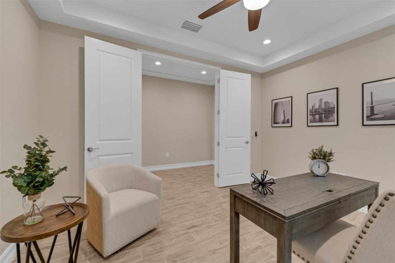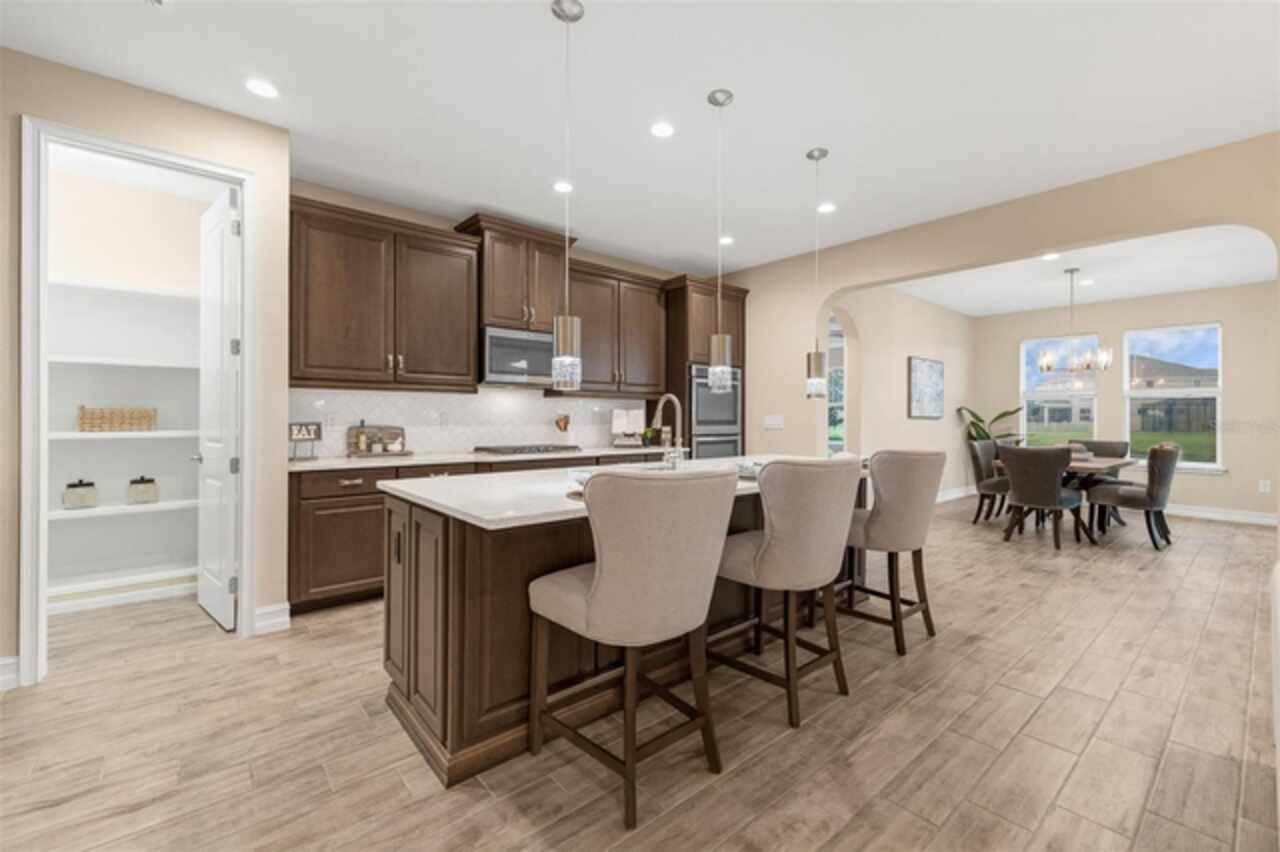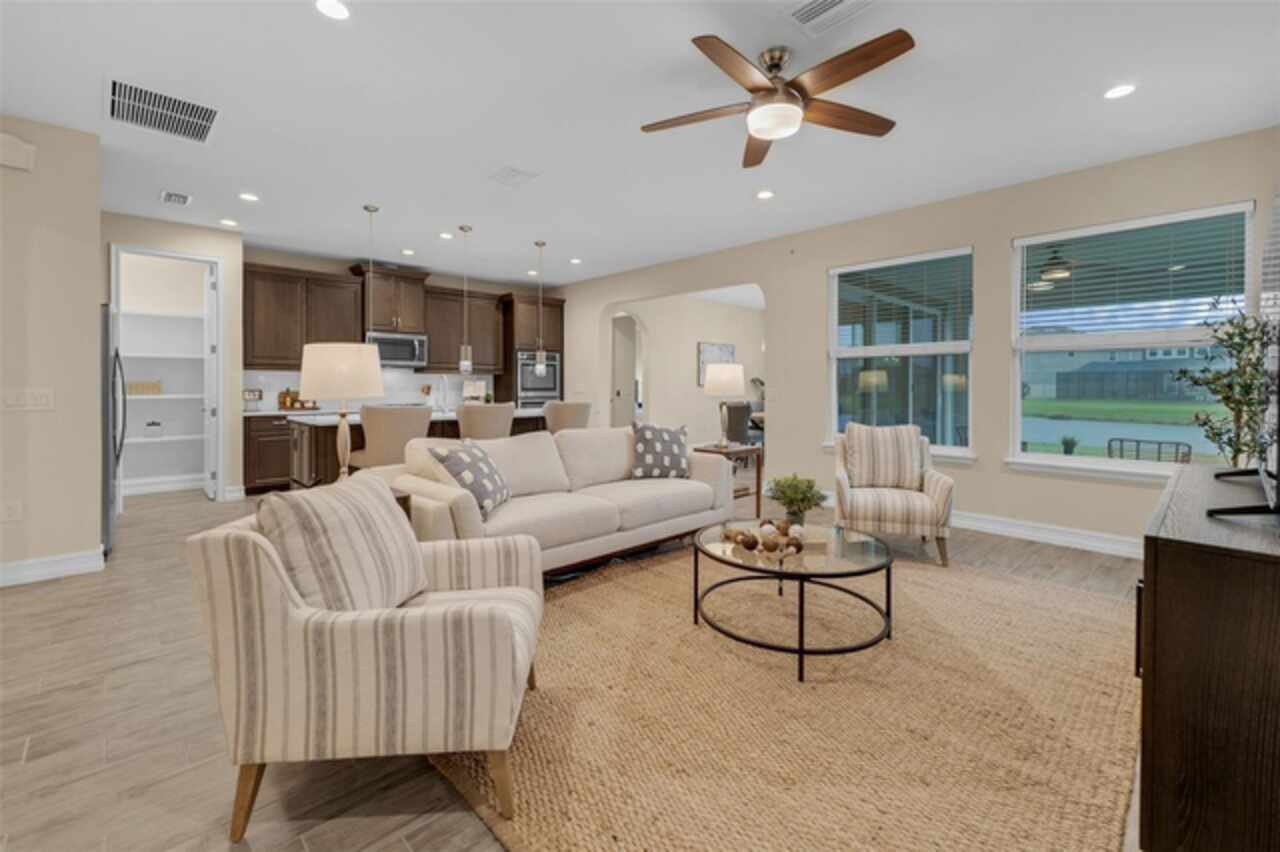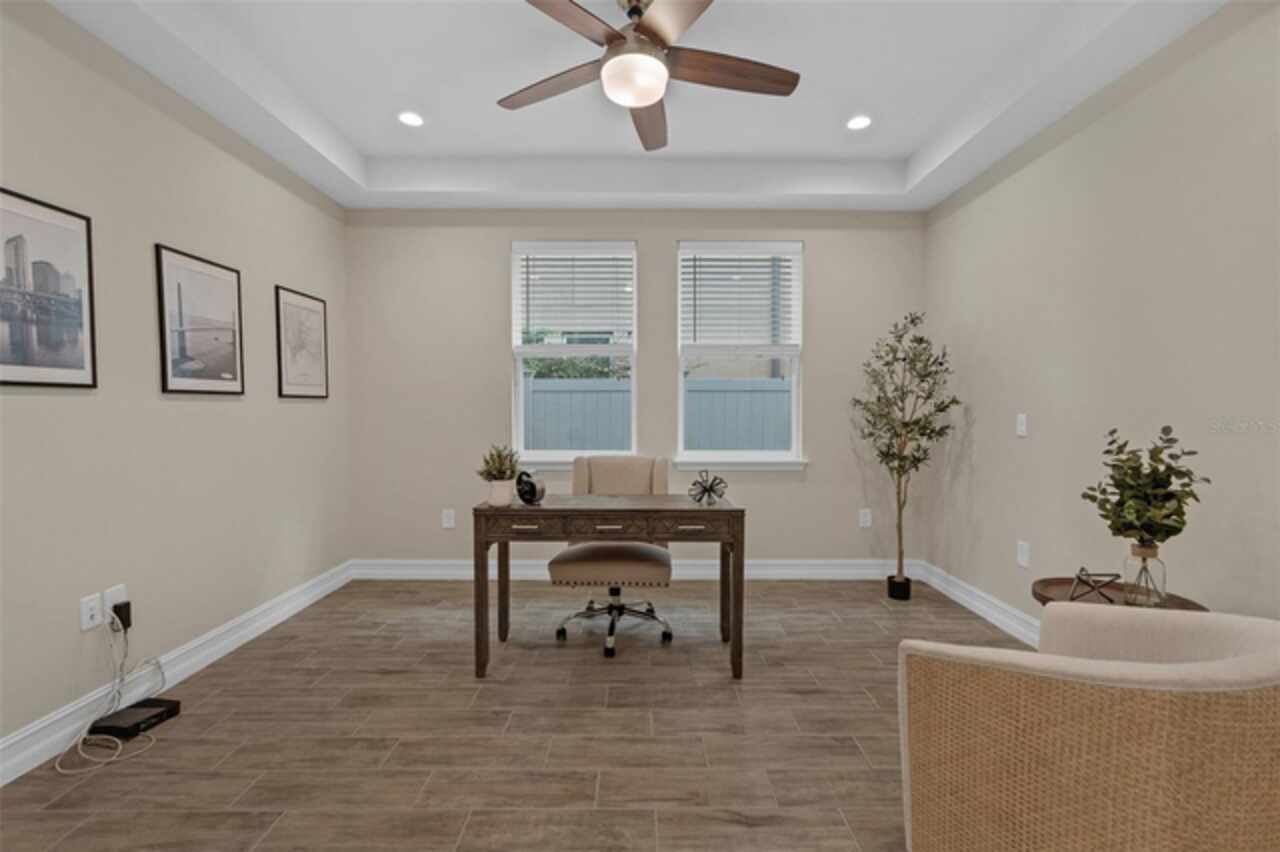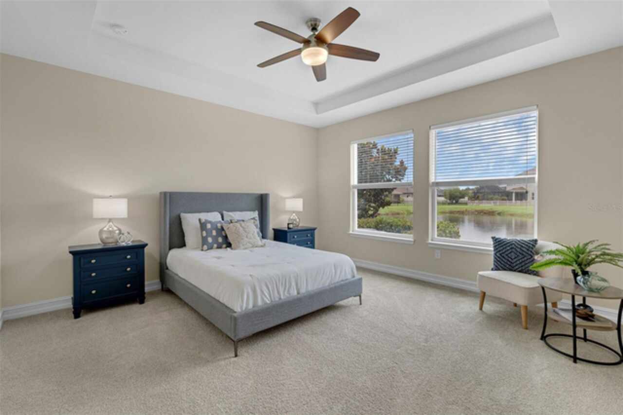 Is there a 3-bed home in Estancia at Wiregrass with a gourmet kitchen and water view? This Wesley Chapel gem says yes. Nestled on a quiet cul-de-sac, this 3-bedroom, 3-bath, single-story home with dedicated office and 2, 332 square feet blends elegance and ease. Tile flooring flows through the open-concept main living areas, while all bedrooms feature brand new carpet for added warmth. The chef’s kitchen boasts a massive island, double ovens, gas cooktop, solid surface counters, and a walk-in pantry. The great room opens to a 12x16 covered lanai overlooking tranquil pond views. The primary suite features a spacious walk-in closet, dual vanities, a garden tub, and a separate glass-enclosed shower. Additional highlights include a 2-car garage, interior laundry room, ceiling fans, thermal windows, and split-bedroom layout. Located in the gated Estancia at Wiregrass community, enjoy resort-style amenities including pool, gym, tennis, trails, and parks. Zoned for top-rated schools and near Wiregrass Mall, dining, healthcare, and major highways. Monthly HOA is just $118. Built in 2018 on a 6, 600 sqft lot with energy-efficient features and public utilities. Seller open to contributing toward buyer’s closing costs. This 3-bed home in Estancia at Wiregrass is ready for move-in—schedule your private tour today.