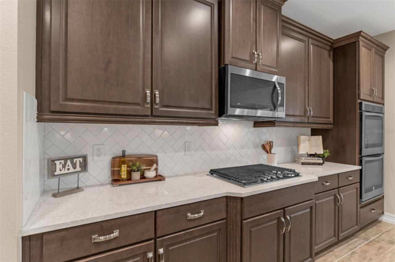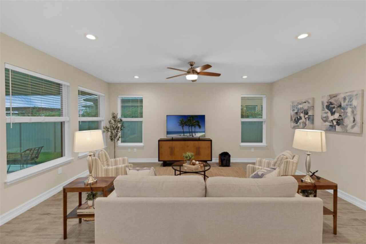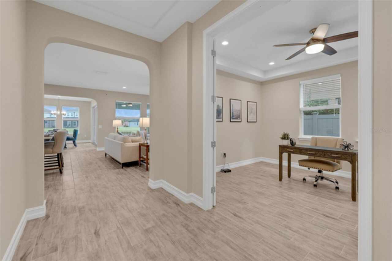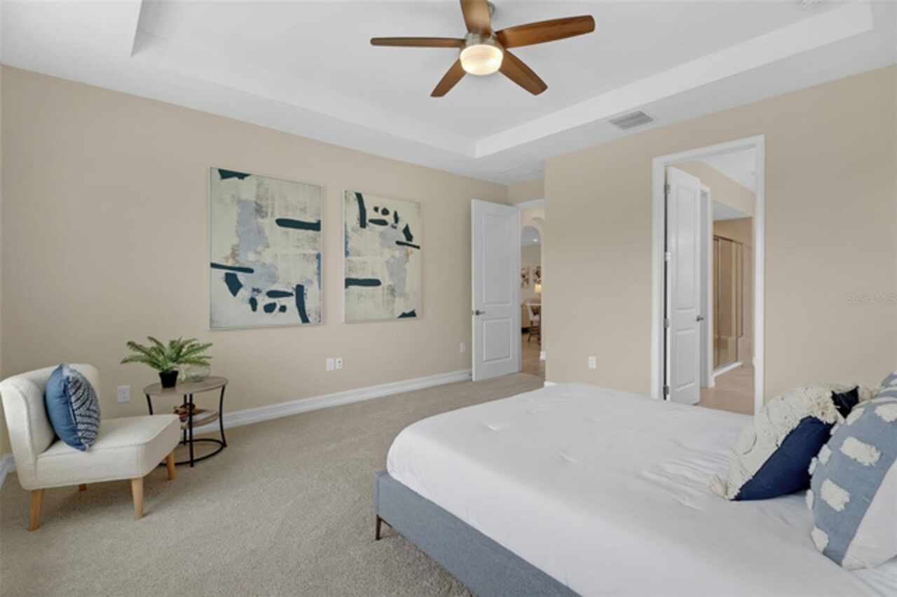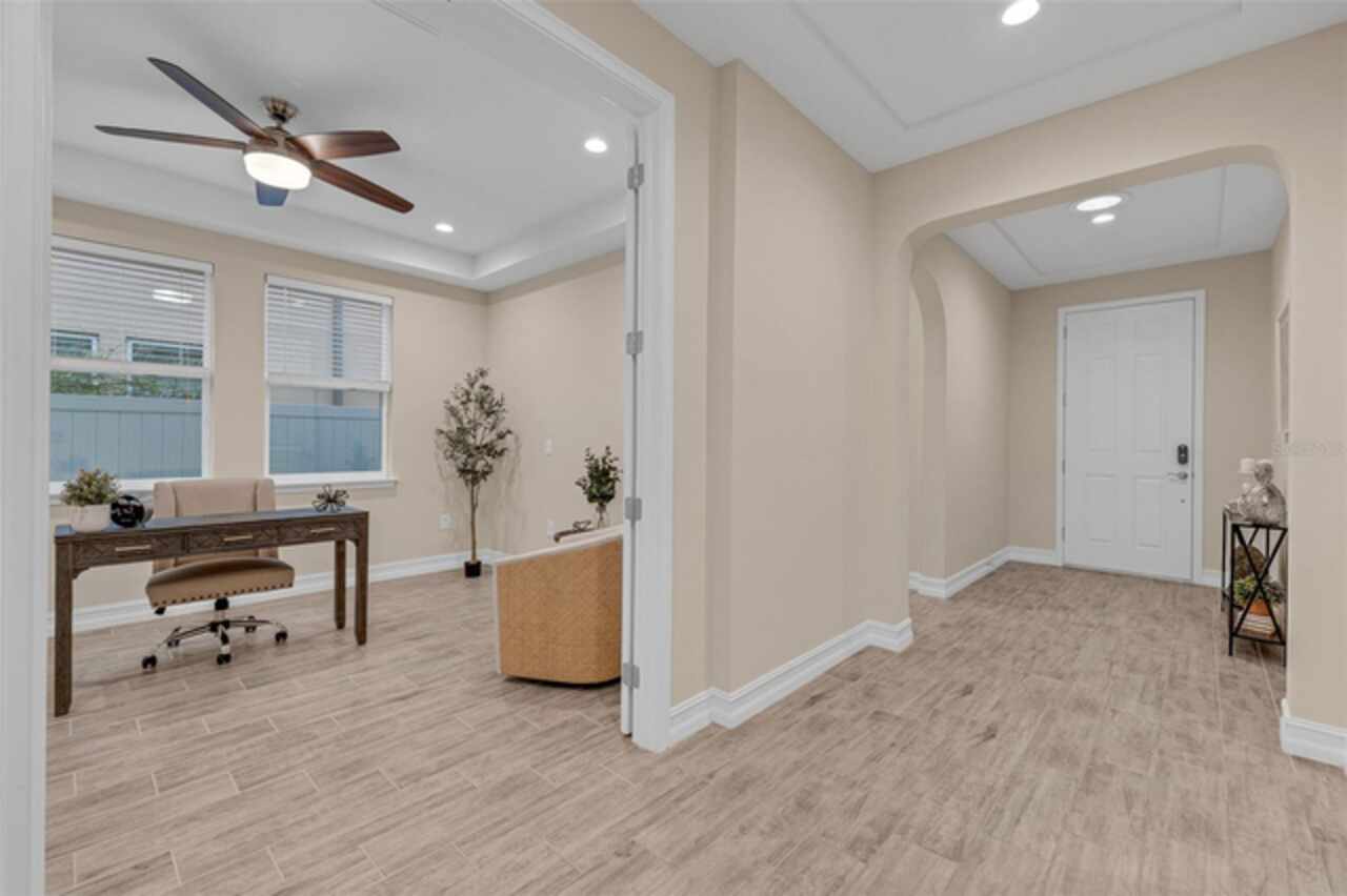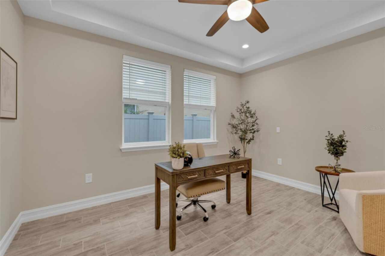 Is there a 3-bed home in Estancia at Wiregrass with a gourmet kitchen and water view? This Wesley Chapel gem says yes. Nestled on a quiet cul-de-sac, this 3-bedroom, 3-bath, single-story home with dedicated office and 2, 332 square feet blends elegance and ease. Tile flooring flows through the open-concept main living areas, while all bedrooms feature brand new carpet for added warmth. The chef’s kitchen boasts a massive island, double ovens, gas cooktop, solid surface counters, and a walk-in pantry. The great room opens to a 12x16 covered lanai overlooking tranquil pond views. The primary suite features a spacious walk-in closet, dual vanities, a garden tub, and a separate glass-enclosed shower. Additional highlights include a 2-car garage, interior laundry room, ceiling fans, thermal windows, and split-bedroom layout. Located in the gated Estancia at Wiregrass community, enjoy resort-style amenities including pool, gym, tennis, trails, and parks. Zoned for top-rated schools and near Wiregrass Mall, dining, healthcare, and major highways. Monthly HOA is just $118. Built in 2018 on a 6, 600 sqft lot with energy-efficient features and public utilities. Seller open to contributing toward buyer’s closing costs. This 3-bed home in Estancia at Wiregrass is ready for move-in—schedule your private tour today.