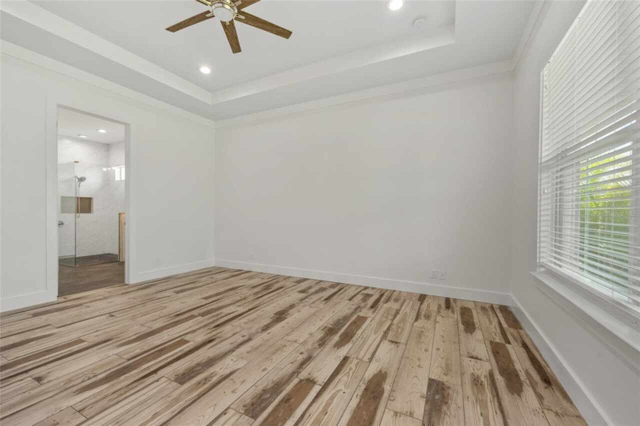 Ceiling Fans(s), Crown Molding, High Ceilings, Living Room/Dining Room Combo, Open Floorplan, Primary Bedroom Main Floor, Solid Surface Counters, Solid Wood Cabinets, Split Bedroom, Stone Counters, Thermostat, Tray Ceiling(s), Walk-In Closet(s), Window Treatments