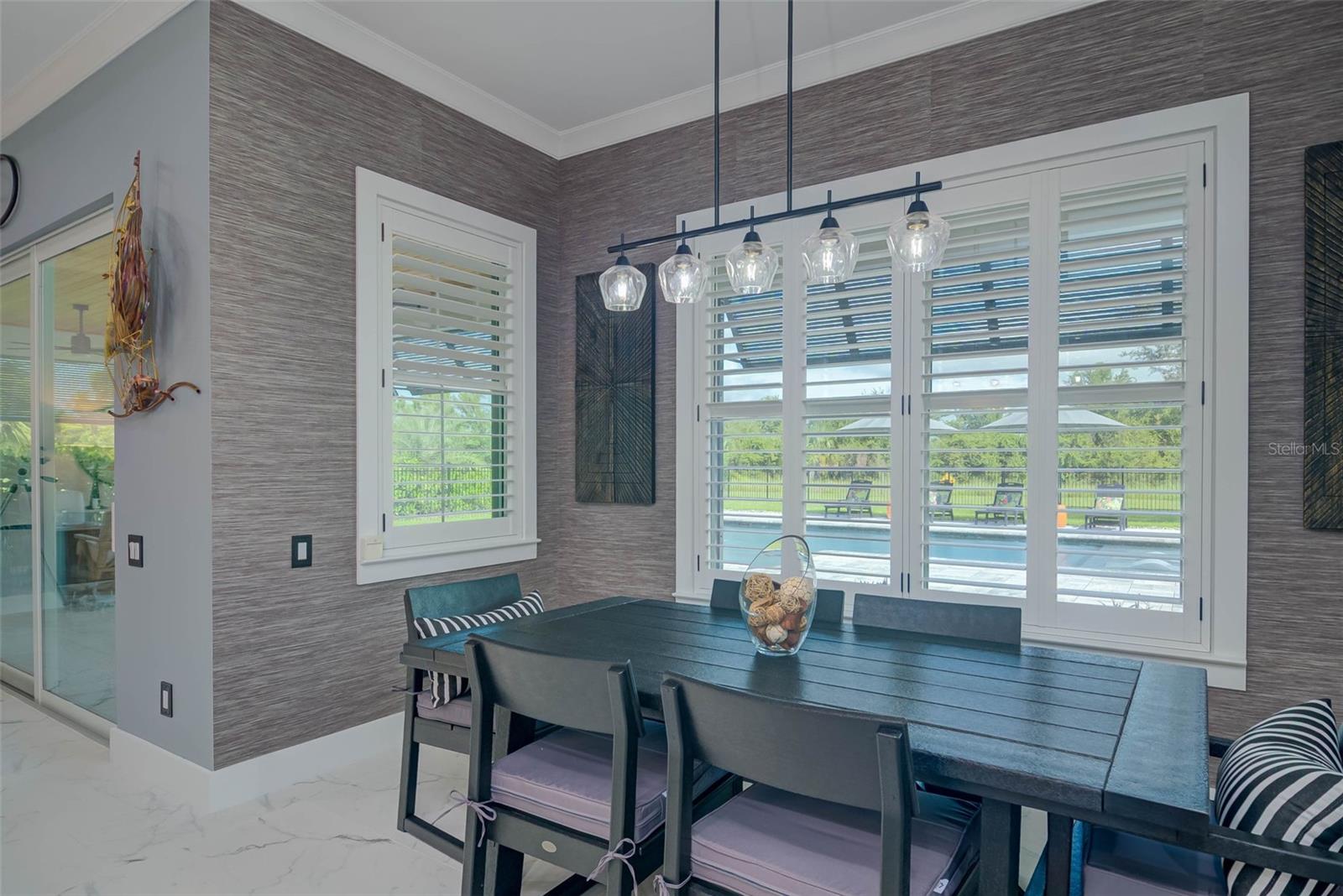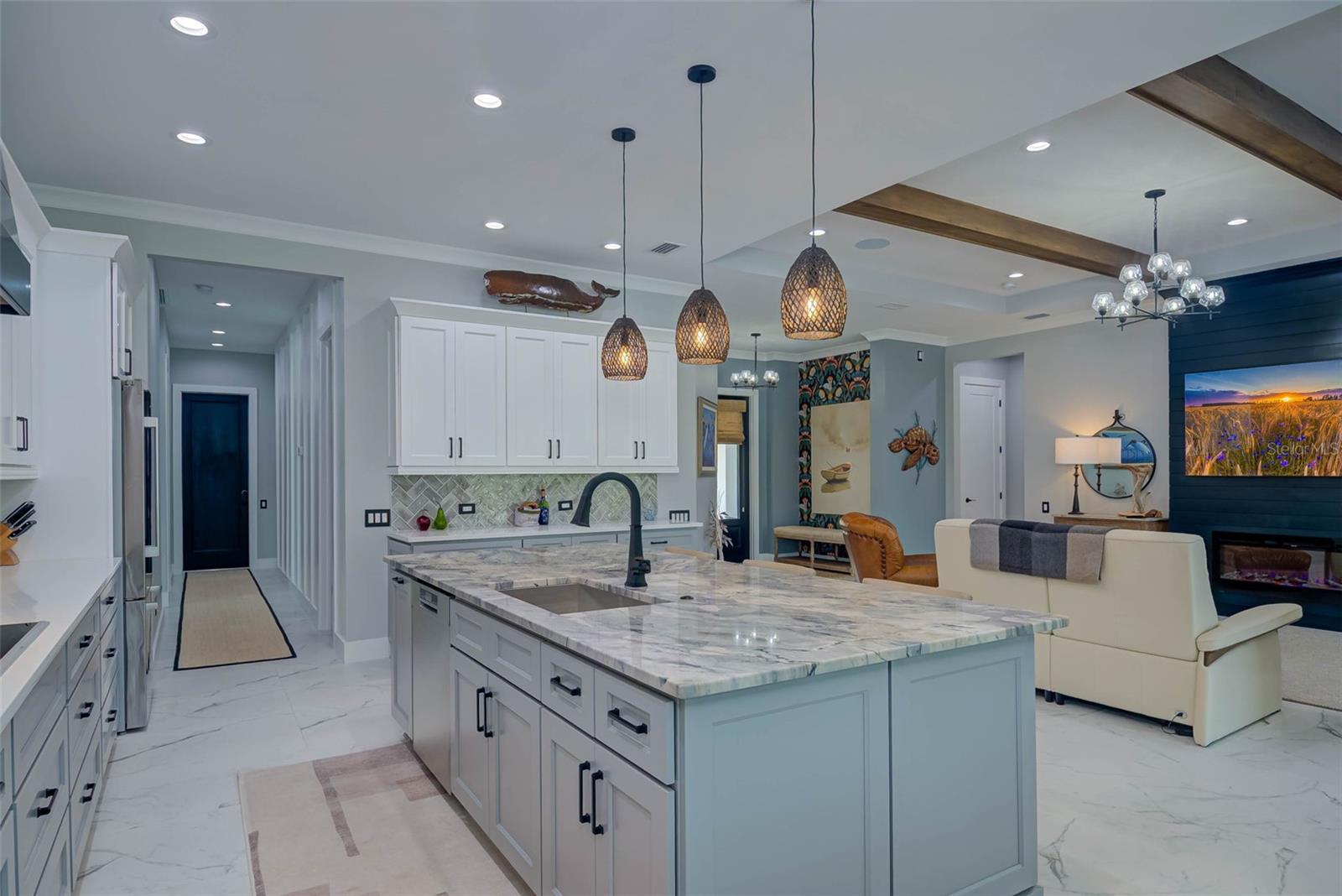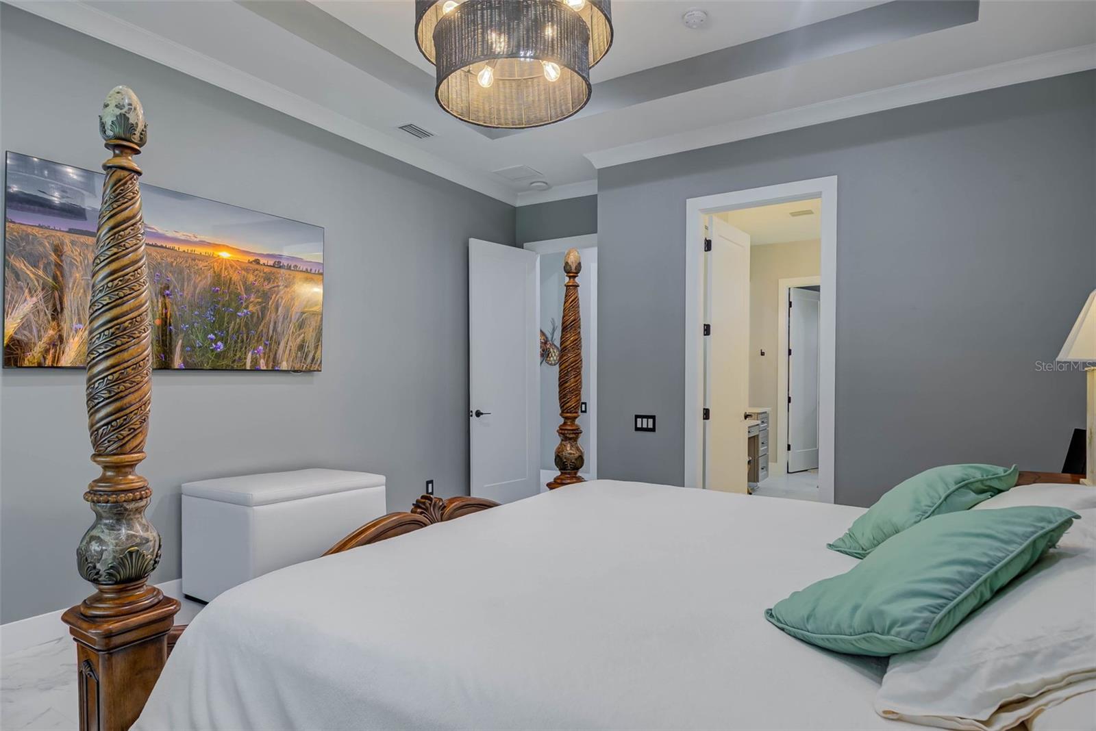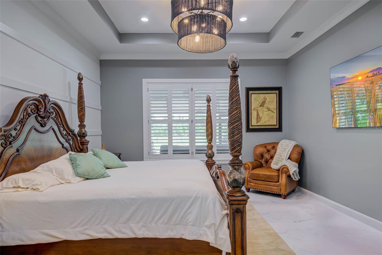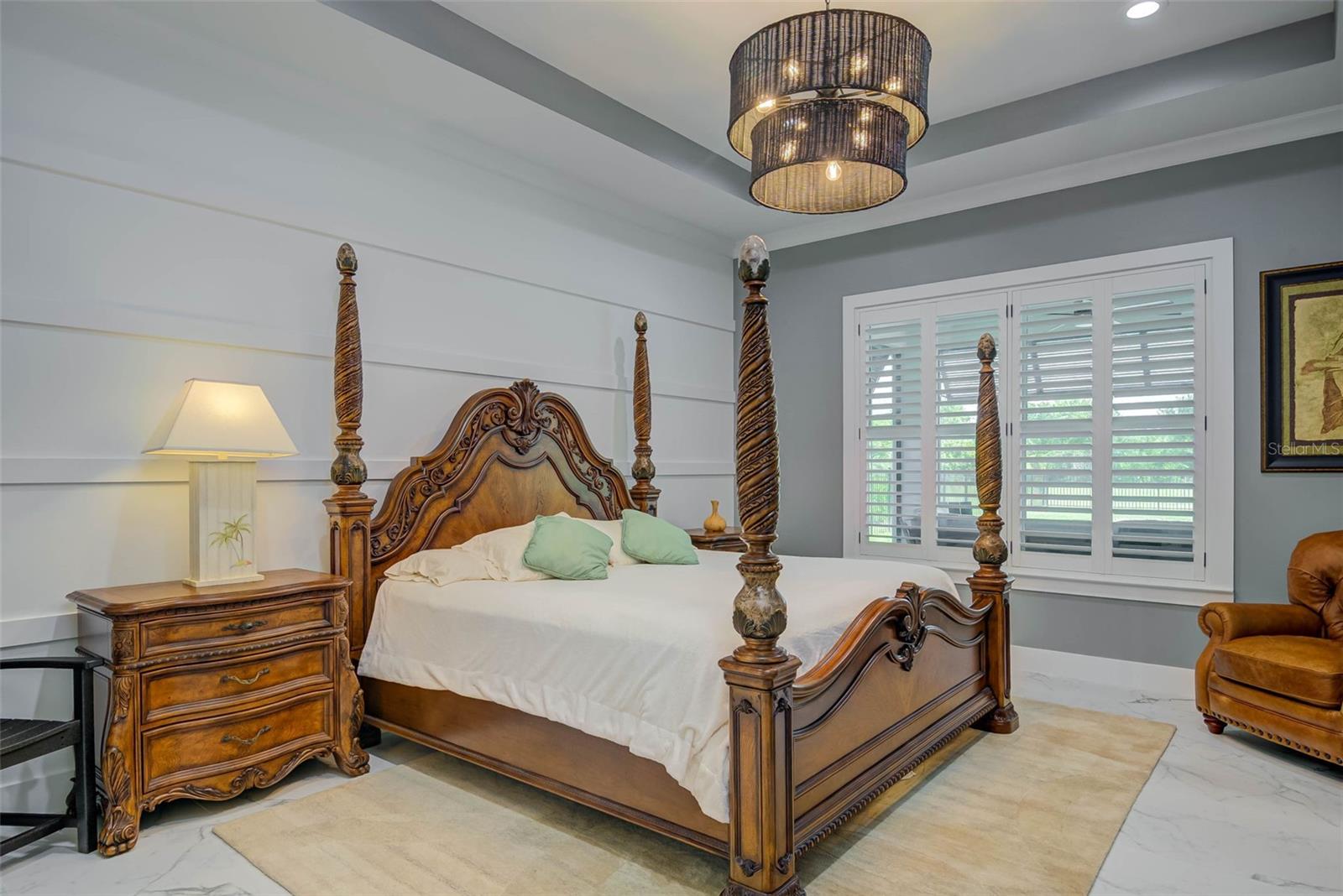 Accessibility Features, Built-in Features, Ceiling Fans(s), Coffered Ceiling(s), Crown Molding, Eat-in Kitchen, High Ceilings, Open Floorplan, Primary Bedroom Main Floor, Solid Wood Cabinets, Split Bedroom, Stone Counters, Thermostat, Tray Ceiling(s), Walk-In Closet(s), Window Treatments