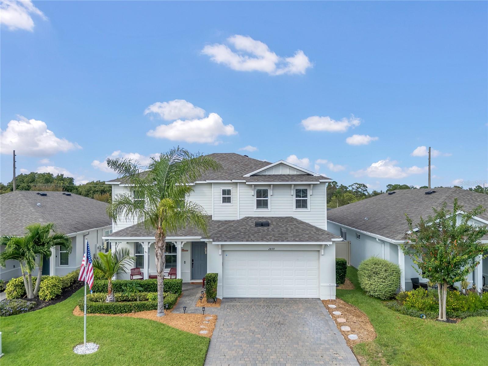 SELLER MOTIVATED!! Also an additional 1% with Next Mortgage (Ask your Buyers Agent about this!!) Welcome to this Gorgeous MOVE- IN READY ready two-story home in the desirable Hickory Grove community of Saint Cloud. Built in 2020, this 5-bedroom, 3-bath residence blends modern design, functionality, and classic Florida lifestyle living—complete with a sparkling Salt Water pool and spa. Step inside to an open-concept layout filled with natural light and elegant finishes, including crown molding and marble–quartzite blend counters. The kitchen showcases 42-inch cabinetry, stainless steel appliances, and a large island with bar seating—perfect for casual dining or entertaining. A guest bedroom and full bath with under-sink cabinets and a bathtub are conveniently located on the first floor, providing ideal space for guests or a home office. Additional storage under the stairs and above-garage shelving add smart functionality to the home’s thoughtful design. Upstairs, a loft offers flexible living space, surrounded by four additional bedrooms. The primary suite features a spacious bath with double sinks and a large walk-in closet, while the secondary upstairs bathrooms also include double vanities. The laundry room is conveniently located upstairs and includes built-in cabinets and a full sink for added convenience. Enjoy comfort year-round with climate-controlled A/C accessible via phone app, keyless entry at the door and garage, and an EV car charger outlet ready for your electric vehicle. Step outside to your private backyard retreat featuring a fenced yard, brick paver pool deck, pool with fast-heating gas heater, attached spa, stone fireplace, and pergolas for lounging—the perfect outdoor escape for relaxing or entertaining. The Hickory Grove community offers outstanding amenities including a resort-style pool, playground, clubhouse, and more. Conveniently located near major roads, highways, shopping, dining, and entertainment, this home offers both comfort and convenience in one exceptional package. This Beautiful home truly combines thoughtful upgrades, timeless style, and an unbeatable location—delivering the perfect place to call home.