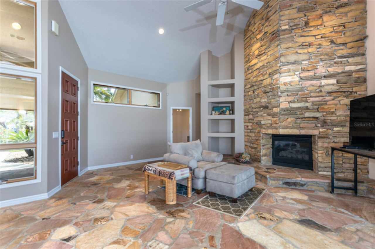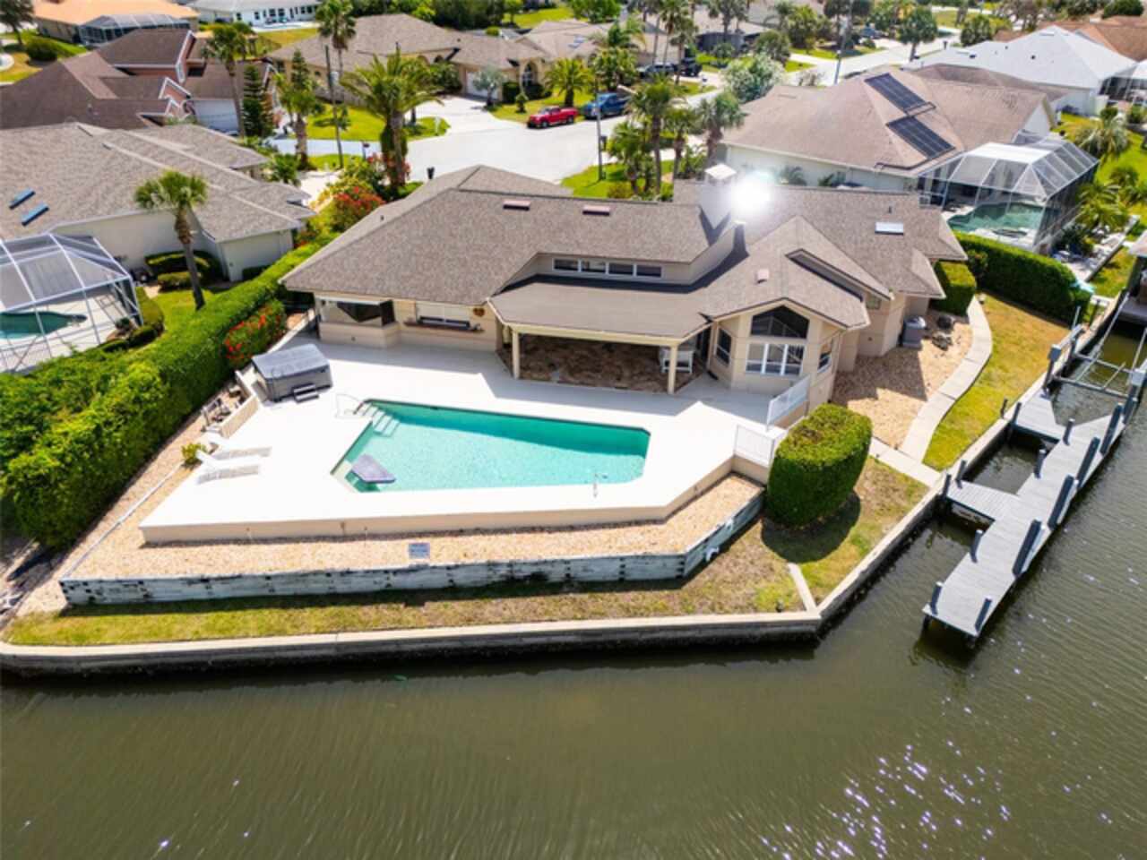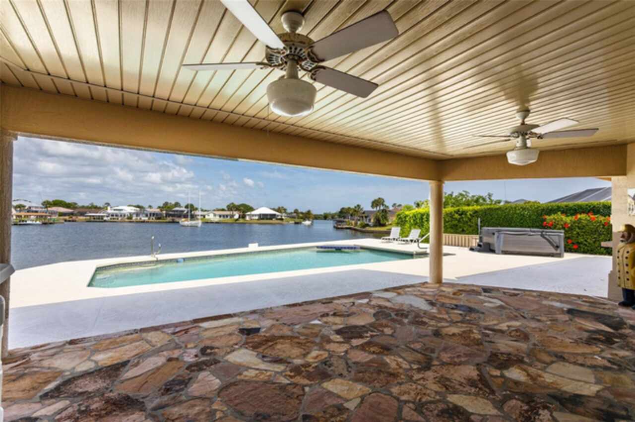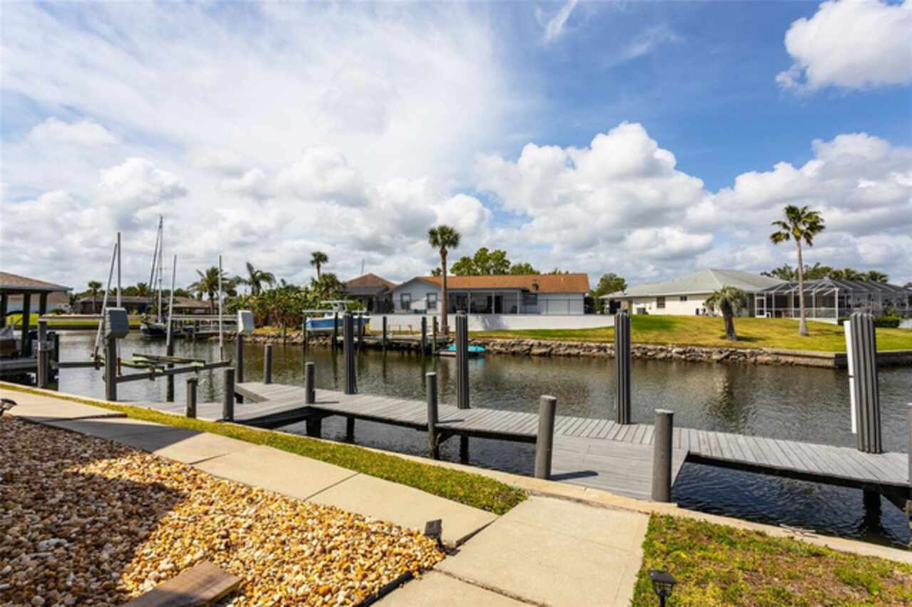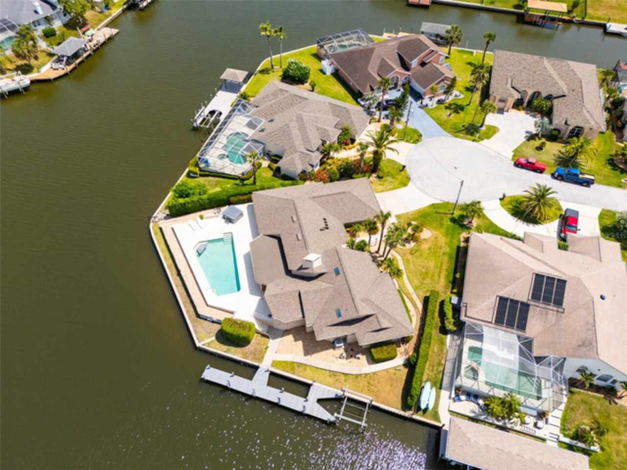 Under contract-accepting backup offers. "Reduced To Sell" "Sailboat Country" Located on Cul-de-Sac, Quiet Road. Up-Scale Community area. "C" Section on waterfront. Deep Water Country, Sits on Large Canal Water Basin, Full Boat Dock with Lift. Pool is in sun all day. Rear of house faces West for excellent sunsets and view of pool, deck and canal basin. Dolphin and Tarpon in the Basin. Interior Features: Primary Bedroom has a Walk-in closet for two with Built-in Drawers and shelves. Great room has a Stone Fireplace that rises to the vaulted ceiling. Ceiling Fans: 11, Eat-In Kitchen w/counter sitting, Nook area table with view of pool & canal. High Ceilings, Vaulted, Tall Flat Surface Counters consist of a mix of Tile and Laminated materials, Flooring: Tile, Tennessee Sandstone, Carpet, Vinyl in laundry room. Window Features: Anderson brand 8’ sliding doors and windows. Other Insulated Glass windows. Central Air Two Units, Zones for different controllable areas. Over-sized Laundry Room w/Lots of Cabinets, food storage pantry. Second Refrigerator & Freezer area. Up Scaled Landscape w/ Palms, Hibiscus flowers all stone beds no wood chips. Oversized Garage Very Larger Bi-Fold closet storage 18' x 2'-6" Walk-in Attic Storage space w/pull down staircase . High Anderson Windows to brighten up and ventilate. In-Wall folding Ironing Board. Stem wall superior Concrete foundation w/monolithic slab on grade. Covered front porch, Large rear covered porch, w/beautiful stone floor, very large pool deck. Large Benched seat w/ tiled table area. Massive Pool Deck overlooking Canal Basin. UPDATE: New bath remodel, tile shower, floors & new vanity w/ sink. New White Quartz kitchen counters, all new stainless steel appliances. Today's cost to rebuild this Home & Pool with this premium lot $1, 650, 000.