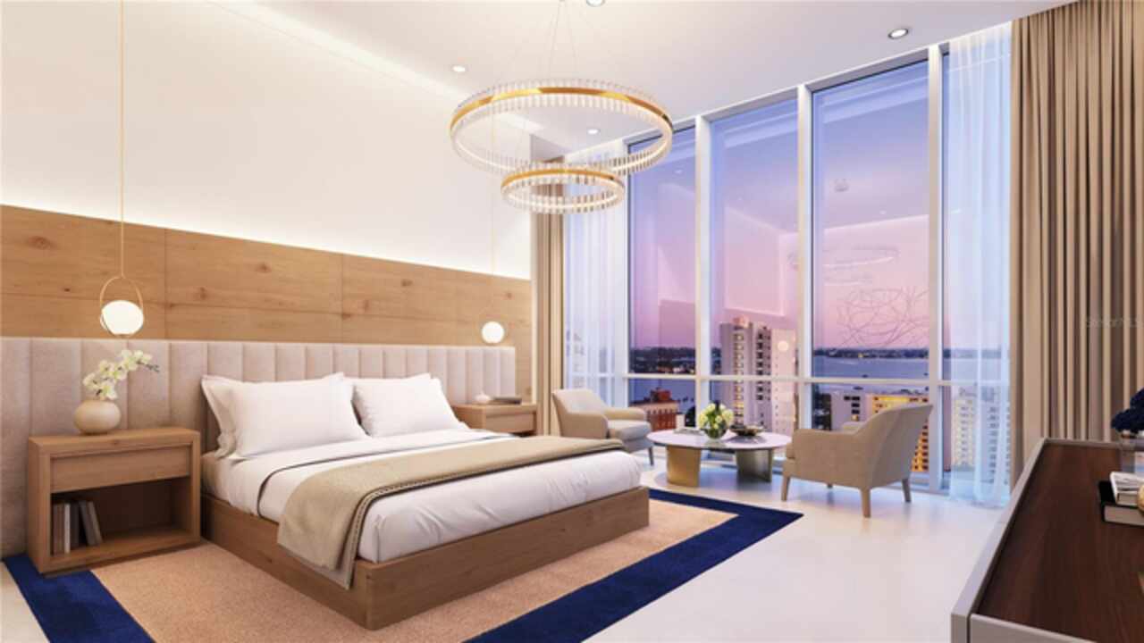 Pre-Construction. To be built. Discover a rare opportunity at The Edge Sarasota—where boutique living meets vibrant city life. Residence A is a premier 3-bedroom, 3-bathroom corner residence offering over 3, 200 square feet of open, modern living in one of Sarasota’s most in-demand downtown locations. From the 6th floor, this light-filled residence wraps the northwest side of the building offers exceptional natural light with floor-to-ceiling walls of glass. Step out onto your generous wraparound terrace and watch the sunset over the city. Designed to be as unique as you, the home features a great room and separate living room that connects to a chef’s kitchen with Italian cabinetry, Wolf and Sub-Zero appliances including a gas cooktop, a large island with waterfall edge and a butler’s pantry for easy entertaining. A thoughtfully designed owners’ suite provides a true retreat with a gracious foyer, midnight bar, walk-in closet and en suite bathroom featuring dual vanities, private water closets, glass enclosed shower and soaking tub. Beyond your residence, enjoy a curated collection of luxury amenities including a resort-style pool deck with hot and cold plunge pools, cabanas and two outdoor kitchens. The owners’ club focuses on wellness and entertainment with a fully equipped fitness center complete with a yoga room and infrared sauna. Two treatments rooms afford plenty of space for your personal massage therapist or a physical therapy session. The social room includes a lounge, bar, game room and catering kitchen. For more intimate gatherings, reserve the private dining room featuring resident wine lockers and a separate bar area. The building’s boutique size—only 27 residences—creates a community feel in the heart of Sarasota’s vibrant Arts District. Walk to acclaimed restaurants, galleries, boutiques, and the Bayfront, embracing a lifestyle that combines culture, convenience, and sophistication. Construction is progressing with limited opportunities to customize your finishes—secure your place at The Edge today and invest in a rare downtown Sarasota address with lasting appeal. Images shown are artist renderings intended to illustrate the interior finishes and design concepts for this community.