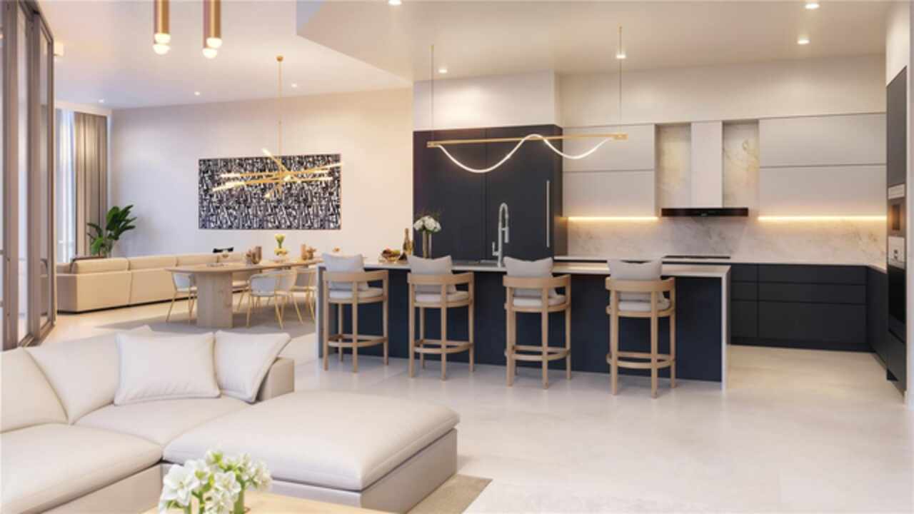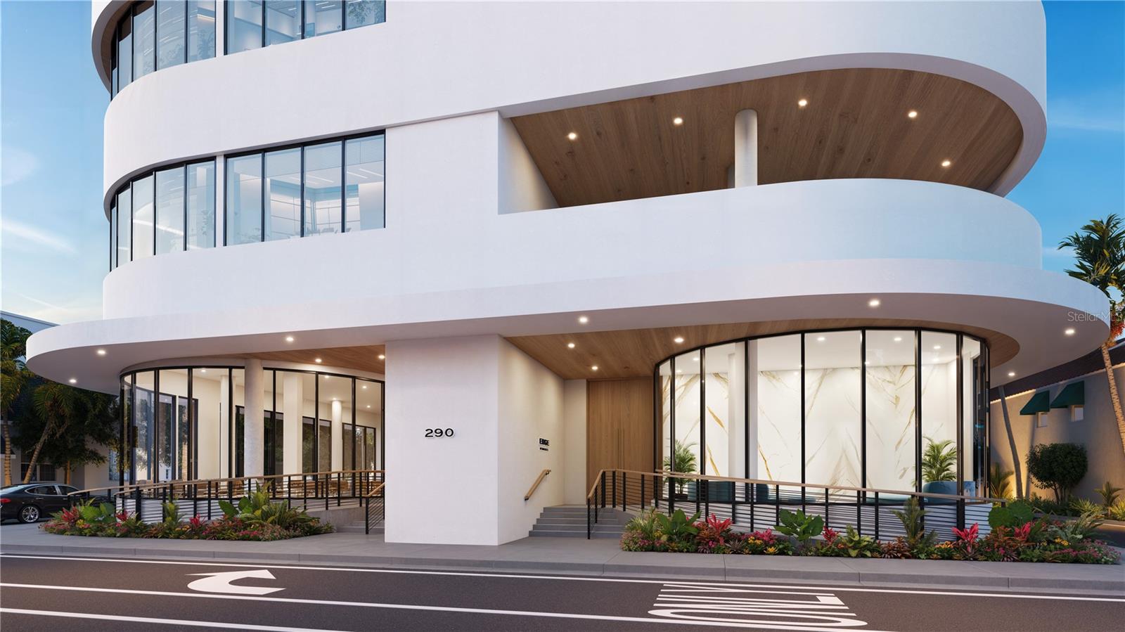 Under Construction. The Edge Sarasota embodies refined urban luxury in the heart of downtown’s vibrant Arts District. Residence B is an impeccably designed 3-bedroom, 3-bathroom corner residence offering over 3, 500 square feet of living space, framed by floor-to-ceiling windows and sweeping city views from the 8th floor. The open-concept design features soaring ceilings, walls of glass and a chef’s kitchen with Italian cabinetry, Wolf and Sub-Zero appliances including a gas cooktop, an expansive island with waterfall edge and a butler’s pantry—all curated for elevated living. From the great room, dining or separate living room step out onto your private terrace and feel the energy of Sarasota below while enjoying the tranquility of your own modern sanctuary. The owners’ suite provides a true retreat with a gracious foyer, midnight bar, dual walk-in closets and en suite bathroom featuring dual vanities, private water closets, glass enclosed shower, soaking tub and convenient linen closet. A full laundry room with front-load washer and dryer and utility sink includes additional storage for ease of living. Beyond your residence, enjoy a curated collection of luxury amenities including a resort-style pool deck with hot and cold plunge pools, cabanas and two outdoor kitchens. The owners’ club focuses on wellness and entertainment with a fully equipped fitness center complete with a yoga room and infrared sauna. Two treatments rooms afford plenty of space for your personal massage therapist or a physical therapy session. The social room includes a lounge, bar, game room and catering kitchen. For more intimate gatherings, reserve the private dining room featuring resident wine lockers and a separate bar area. The building’s boutique size—only 27 residences—creates a community feel in the heart of Sarasota’s vibrant Arts District. Walk to acclaimed restaurants, galleries, boutiques, and the Bayfront, embracing a lifestyle that combines culture, convenience, and sophistication. Construction is progressing with limited opportunities to customize your finishes—secure your place at The Edge today and invest in a rare downtown Sarasota address with lasting appeal. Images shown are artist renderings intended to illustrate the interior finishes and design concepts for this community.