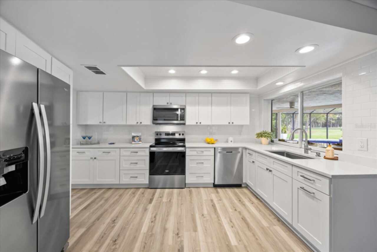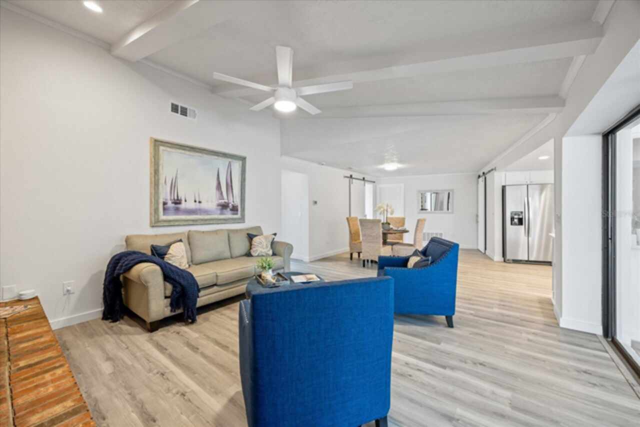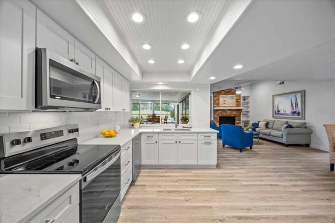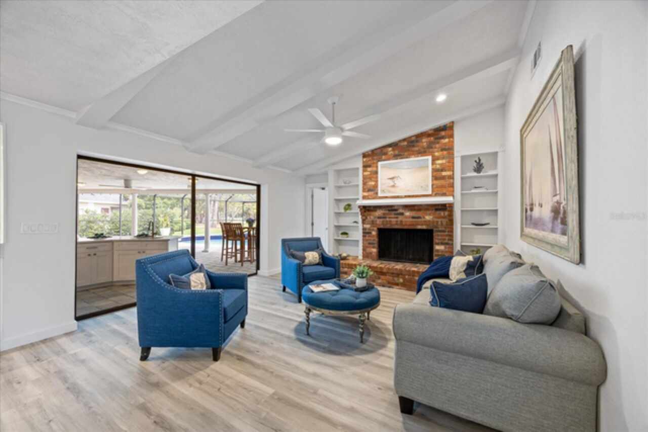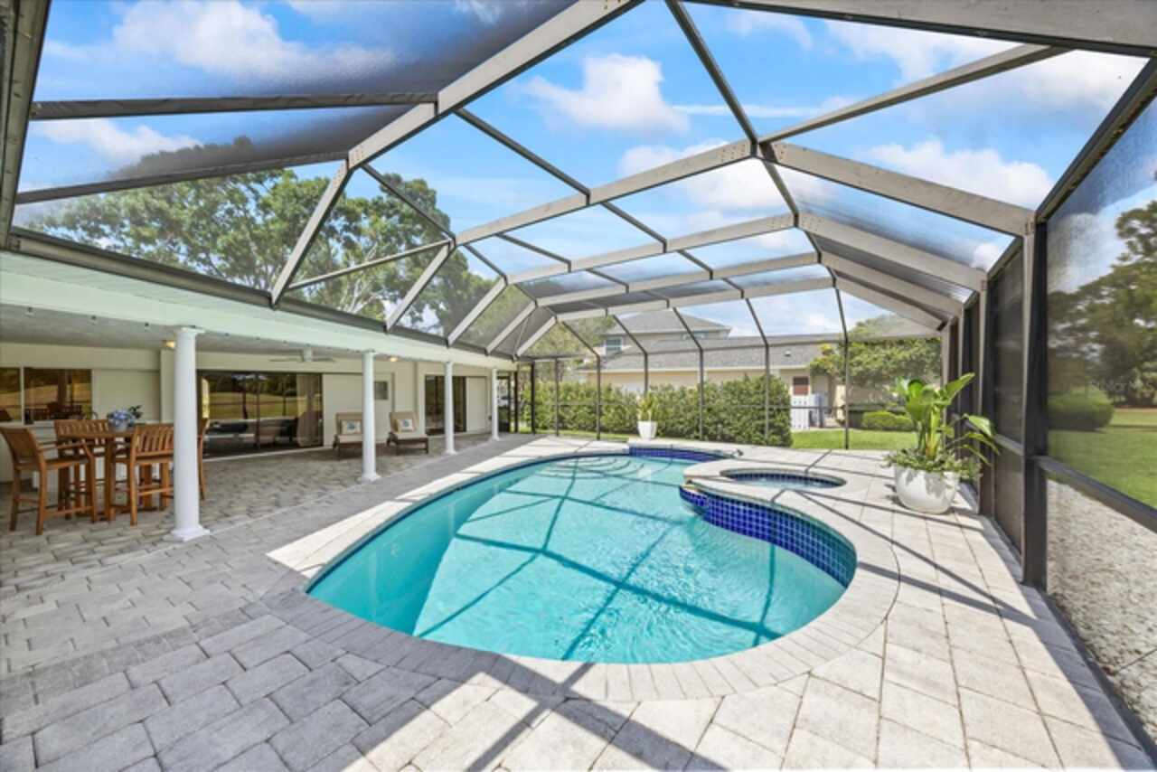 Golf Course Lifestyle in Feather Sound! This beautifully updated residence in the highly sought after Feather Sound community is perfectly positioned on the fairways of the Feather Sound Country Club's golf course and offers the ideal blend of being centrally located and a friendly community lifestyle. A thoughtfully designed split floor plan, offering privacy and functionality for families and guests alike. Primary suite and bedrooms feature one or more of the following: serene golf course views, spacious walk-in closets, and beautifully remodeled en-suite or adjacent bathrooms. The remodeled kitchen is complete with quartz countertops, classic white shaker cabinets, subway tile backsplash, and a walk-in pantry for additional space. Adjacent to the kitchen, the spacious laundry room offers the opportunity to create a custom mud room or additional pantry space. The home's living spaces are thoughtfully designed for both comfort and connection, featuring a welcoming family room, an expansive dining area, and an open-concept layout ideal for relaxed, family-style living. A charming wood-burning fireplace serves as a warm focal point. Brand new HVAC installed in 2025!! Step outside to your private covered lanai and screened-in pool with spillover spa, set on a paver deck with serene views of the golf course. An outdoor wet bar adds the perfect touch for entertaining, grilling or relaxation. The oversized three-car garage has a new epoxy-coated floor, attic space and bonus tool room. Professional lighting and landscaping create a striking curb appeal in this desirable community. Seller is open to offers and flexible on closing timeframe.