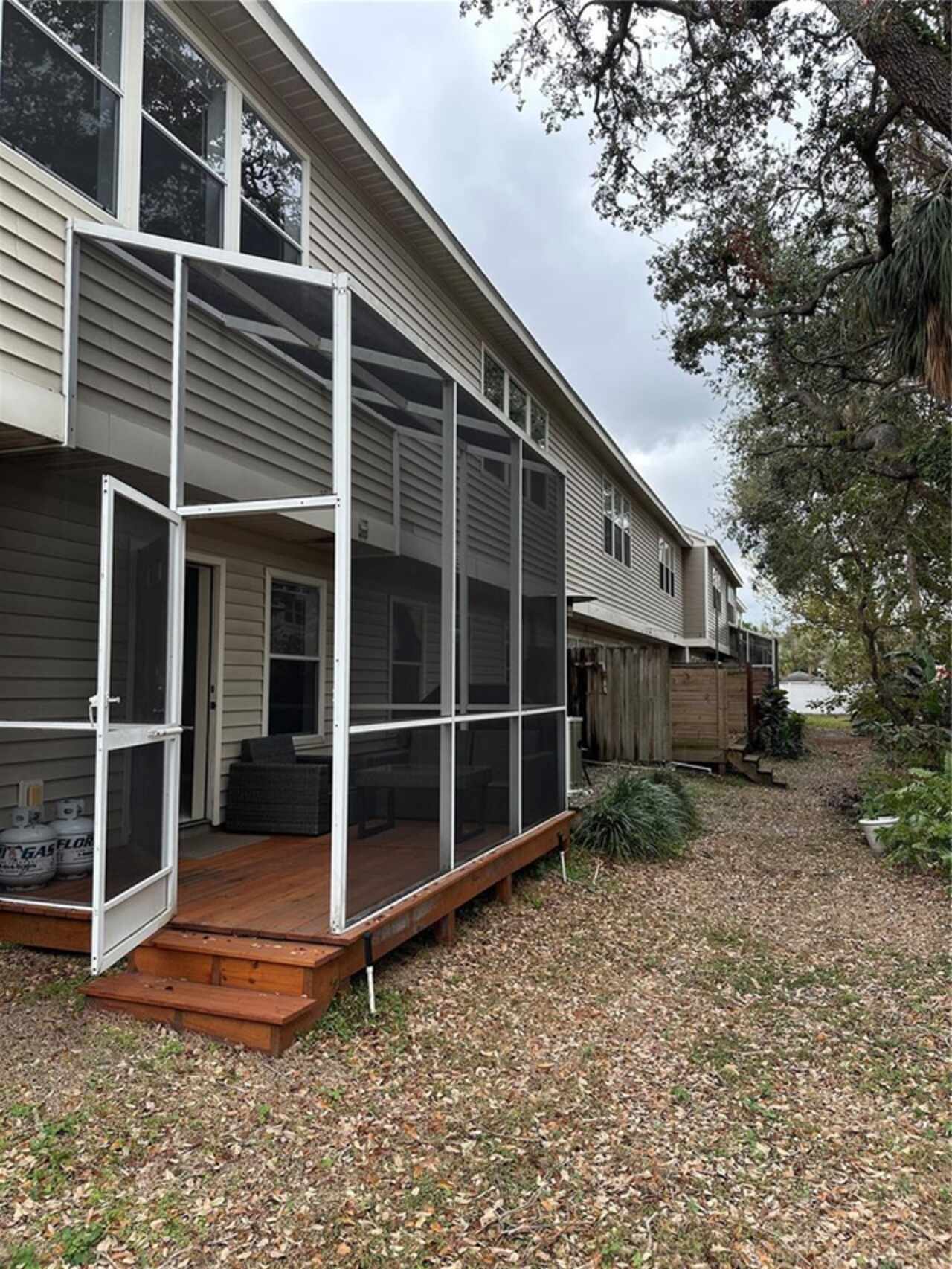 South Tampa 3 Bedroom 2 Bath Townhouse(with condo Assoc), this end-unit with a two car garage is in a private 14 unit gated community in the Plant H.S. district. Two bedrooms are located on the first level, one with access to the screened newly built deck/lanai and back yard. A full bathroom is also on the first level which features a new vanity with Italian marble top, newly tiled shower/tub combination and just outside the bathroom on this level is the laundry area which include a washer and dryer. The upper level of the townhome includes a large open floor plan featuring the spacious kitchen with an excess of cabinets and newer granite counter tops, a very large family room and a dinette area next to the dual level island also with granite counter tops. This great entertaining space also has large windows for lots of natural light, high ceilings and a custom built-in entertainment cabinet system. The primary suite also on the upper level includes an over-sized bedroom with walk-in closet, an en-suite bath featuring a newly tiled large step-in shower, new double vanity with Italian marble top, dual sinks, lighted mirrors, new plumbing fixtures and wall light sconces. This en-suite bath also includes a separated half bath for guests private use. The gated and fenced complex is very well maintained with plenty of green space for pets, garden areas and guest parking. The HOA fee includes water, trash, recycling, gate and lawn maintenance. This townhouse unit also includes a private water-softener.