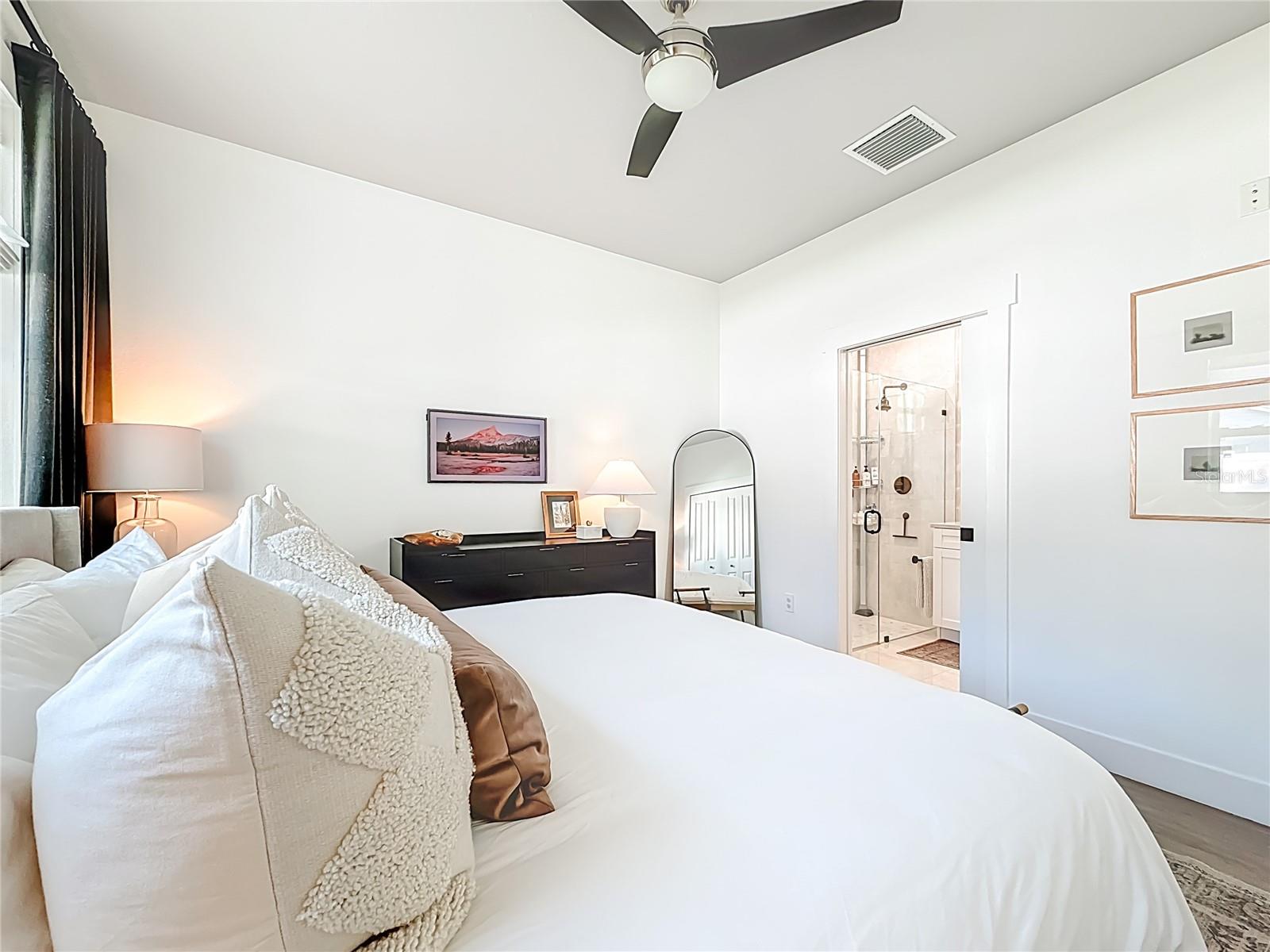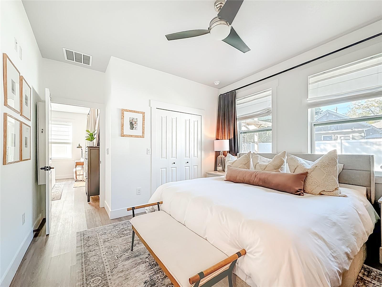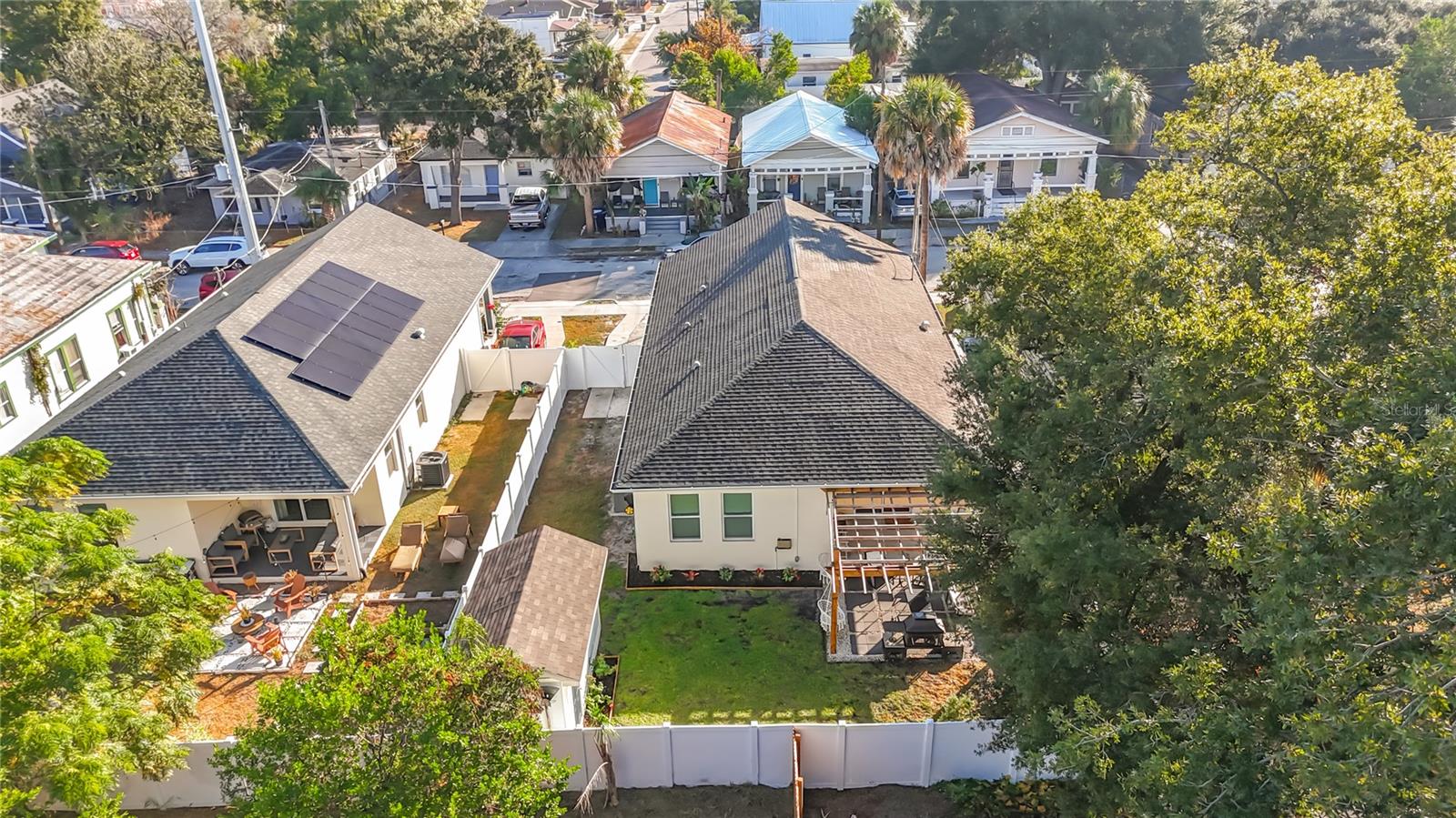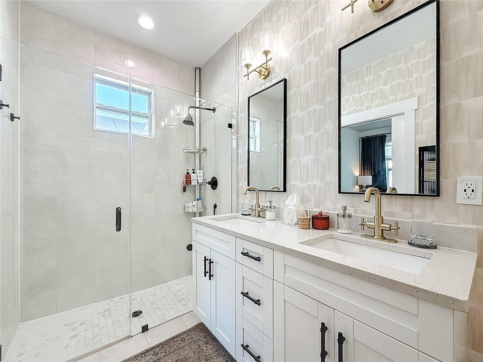 Discover a home that feels custom-built for modern living, where designer luxury meets 2022 construction in one of Tampa’s fastest-growing districts. This 3 bed / 2 bath / 1, 607 sq ft residence lives larger than its footprint, offering an open-concept layout, abundant natural light, and refined finishes throughout. The heart of the home is the professionally designed kitchen, styled with quartz countertops, Samsung stainless smart appliances, a striking blue tile backsplash, upgraded lighting, and an expansive island perfect for gathering. A fully custom coffee/wine bar elevates daily routines with floating wood shelves, warm wood countertops, additional cabinetry, and a built-in wine fridge. Thoughtful upgrades continue with framed windows, cordless blinds, premium hardware and plumbing fixtures, designer lighting selections, built-in laundry cabinetry, and a stunning custom sliding barn door that enhances both style and function. The primary suite offers a serene retreat with a spa-inspired bathroom featuring dual sinks, brass fixtures, designer lighting, and a walk-in shower. The split floorplan provides comfort and privacy for all. Outside, the fully fenced backyard transforms into a private outdoor haven. Enjoy the custom pergola, gather around the outdoor fireplace, unwind in the professionally landscaped yard, or take advantage of the 8×16 storage shed, ideal for tools, projects, or creative use. Smart irrigation, exterior outlets for lighting and cameras, and an extended driveway with parking for up to three cars further elevate the property. Located minutes from Ybor City, Armature Works, and Downtown Tampa, this home sits at the center of exciting growth and long-term development. With newer construction, curated finishes, and a location gaining momentum, this residence stands out as one of the strongest values in the area. Step inside and experience it for yourself—an exceptional living space that’s ready to impress.