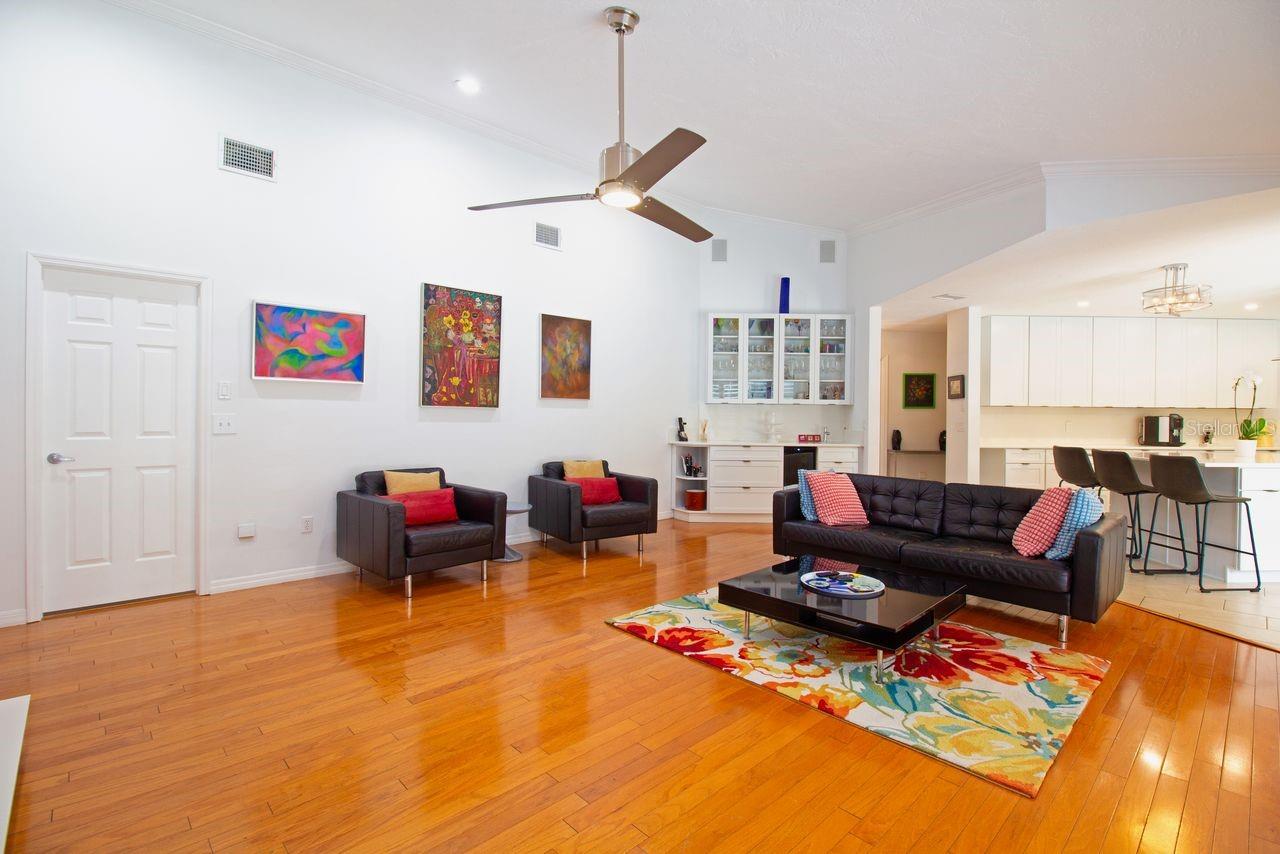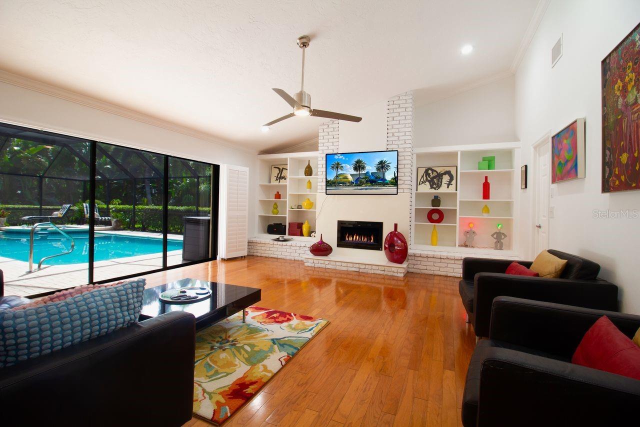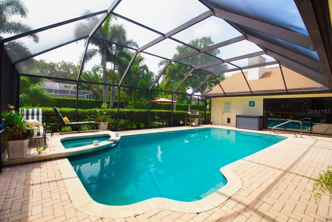Under contract-accepting backup offers. This stunning and updated 4Bedroom, 3Bath, with Pool and spa, residence showcases a highly functional split-style floor plan, situated in the sought-after Elysium Community, outside of flood zone. Upon entering, you are welcomed by an open and luminous formal living room, accompanied by a dining area adorned with vaulted ceilings. The home is enhanced with fresh neutral paint, cohesive flooring, and elegant window shutters throughout, as well as a charming wood and electric fireplace. At the heart of the home lies the kitchen, easily accessible from both the formal areas and the family room, along with the pool and patio space—making it ideal for gatherings of any size. The newly remodeled kitchen features light-hued cabinetry and exquisite light quartz countertops. Adjacent to the family room, you will find a beautifully designed wet bar complete with a wine cooler. The private master retreat is a true sanctuary, boasting vaulted ceilings and graceful French doors that open to a lush and tropical pool area. It offers two generously sized walk-in closets. The opulent primary suite bathroom is designed with a jacuzzi tub, a spacious shower featuring neutral tile, a separate water closet, dual sinks, and an elegant granite countertop. On the side of the house, you will discover two additional bedrooms with an updated bathroom, featuring dual sinks, new cabinetry, a quartz countertop, a large shower, and a remarkable Toto remote-controlled water closet. The family room is a generous and inviting space, equipped with built-in shelves and a dual fireplace—wood-burning with an electric insert for everyday ambiance. The private guest wing includes a fourth bedroom with a separate entrance at the back, leading to a charming, paved pathway that guides you to a secluded green retreat and the pool area. Adjacent to this bedroom is a pool bath with a spacious shower. The pool and spa are equipped with a solar heating system, with gas heating also available. A brand-new spa pump has just been installed. The fully paved and screened pool area is surrounded by lush, mature tropical landscaping, offering an idyllic outdoor oasis. The pool area features a roof, perfect for outdoor seating and relaxation. Located in central Clearwater, this property offers convenient access to Tampa and St. Petersburg, as well as nearby beaches. Enjoy the proximity to an array of popular restaurants and shopping centers. Don’t miss the opportunity to make this luxurious property your home!