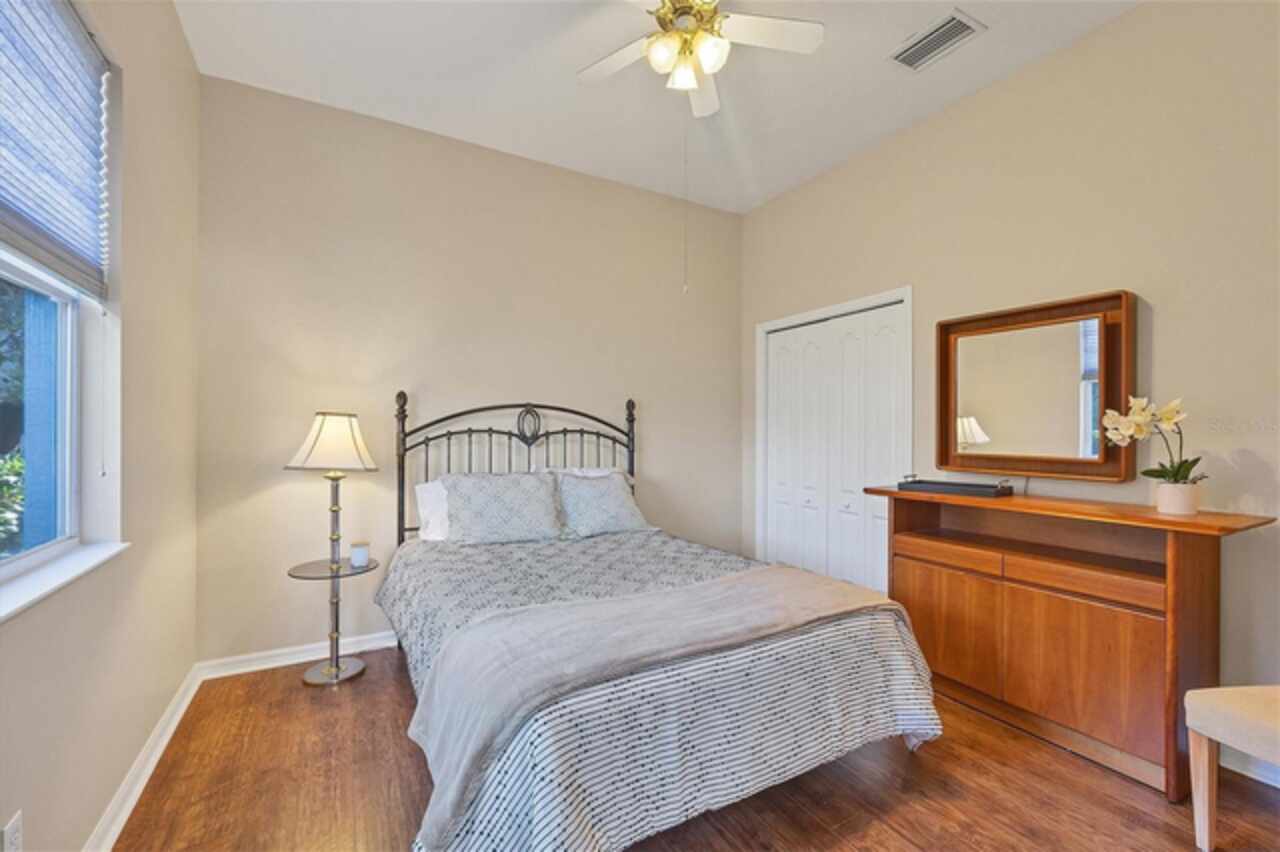 Come live the Florida lifestyle in this split plan, lakefront home with a THREE CAR GARAGE in the desirable gated community of Laurel Lakes. It’s easy living in this ONE LEVEL floor plan with HIGH CEILINGS and MULTIPLE SETS OF 8’ POCKET SLIDERS to the lanai. Tranquil water views visible from all main living areas including the primary bedroom as well as the back guest bedroom. BRAND NEW TILE ROOF INSTALLED NOV. 2024. Pull down attic access in garage for extra storage and a three car garage and paver circular driveway provide ample space for cars. HURRICANE RATED GARAGE DOORS and SHUTTERS for peace of mind and lower insurance costs. An expansive corner lot adds to the privacy and the mature landscaping adds curb appeal. Laurel Lakes is a well-maintained community offering low HOA fees, including a clubhouse with a heated pool, fitness center, pickleball/tennis courts and lots of planned social activities! Located close to everything wonderful Sarasota has to offer. Only 15-20 minutes to Downtown Sarasota, 15 min to University Town Center and Waterside, 5-10 min to hiking in beautiful Celery Fields and Rothenbach park and 25-30 minutes to Lido or Siesta Key beach! Come check it out and make this your new place to call home!