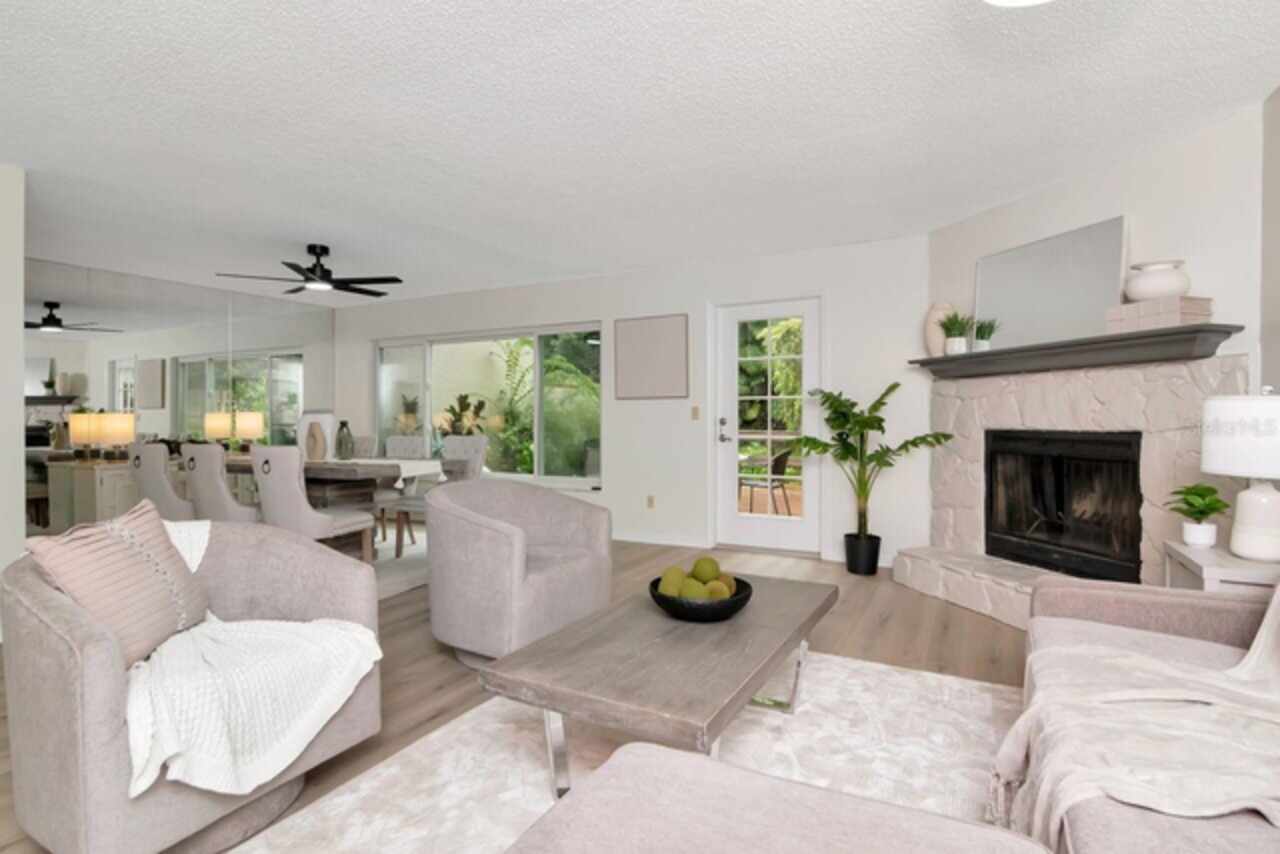 One or more photo(s) has been virtually staged. Luxurious South Tampa Living! Immaculate 3BR/2.5BA condo in Hawthorne Pond offers the feel of a private townhome. Ideally located near Bayshore Blvd, Ballast Point Park, and Tampa Yacht & Country Club. UPGRADES JULY 2025: FRESH INTERIOR PAINT, LUXURY VINYL PLANK FLOORING, NEW UPSTAIRS CARPET, ENERGY-EFFICIENT DOUBLE-PANE WINDOWS, MODERN LIGHTING, UPDATED STAINLESS APPLIANCES INCLUDING NEW MICROWAVE & COOKTOP OVEN. NEW HVAC -2023. Community features a pond with pump system to prevent overflow during heavy rains/hurricanes. Building insurance is included; unit owners only carry “walls-in” coverage plus optional flood insurance. Zero hurricane damage. Open-concept main floor with dining area, fireplace, and sliding doors to a private deck overlooking pond/fountain. Bonus nook off kitchen makes a perfect coffee bar or reading space. Upstairs primary suite with water views & walk-in closet. Full 2-car garage. Zoned for Ballast Point Elementary and Robinson High, and just minutes from Hyde Park, Downtown Tampa, MacDill AFB, parks, dining, and shopping. Move-in ready—schedule your private showing today!