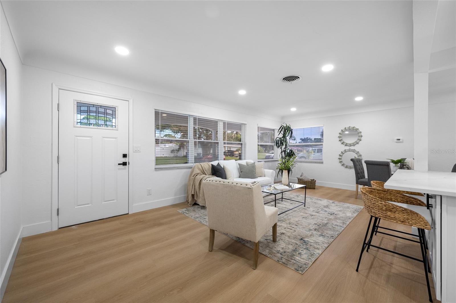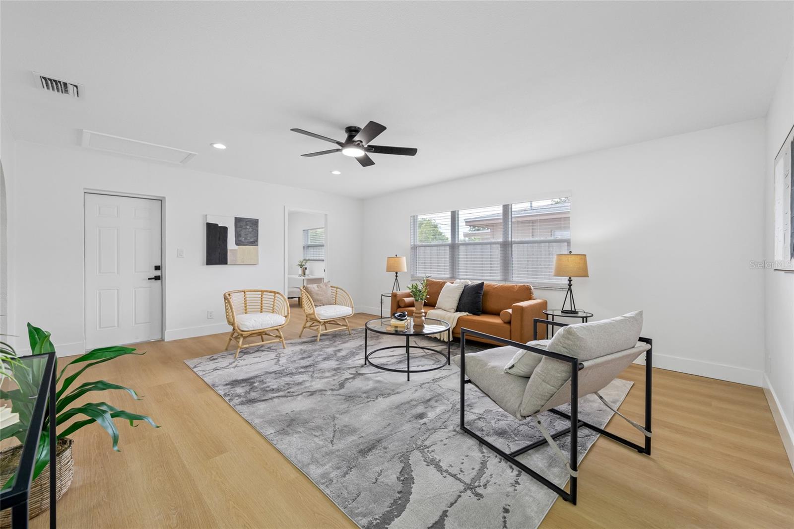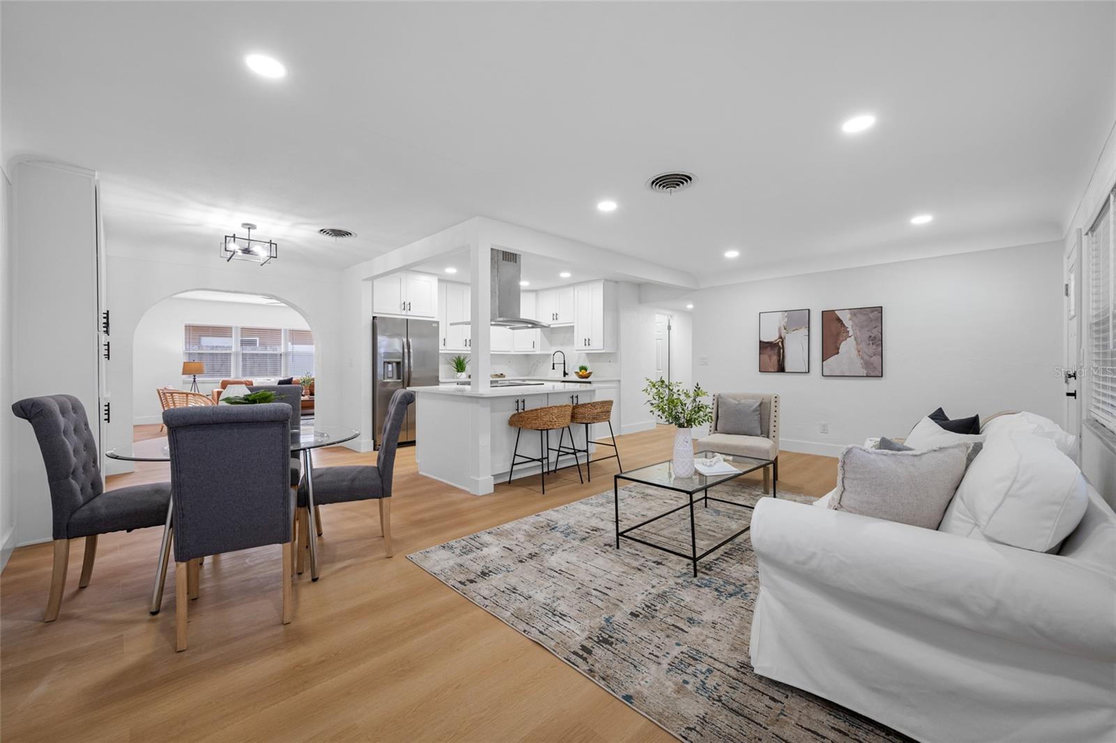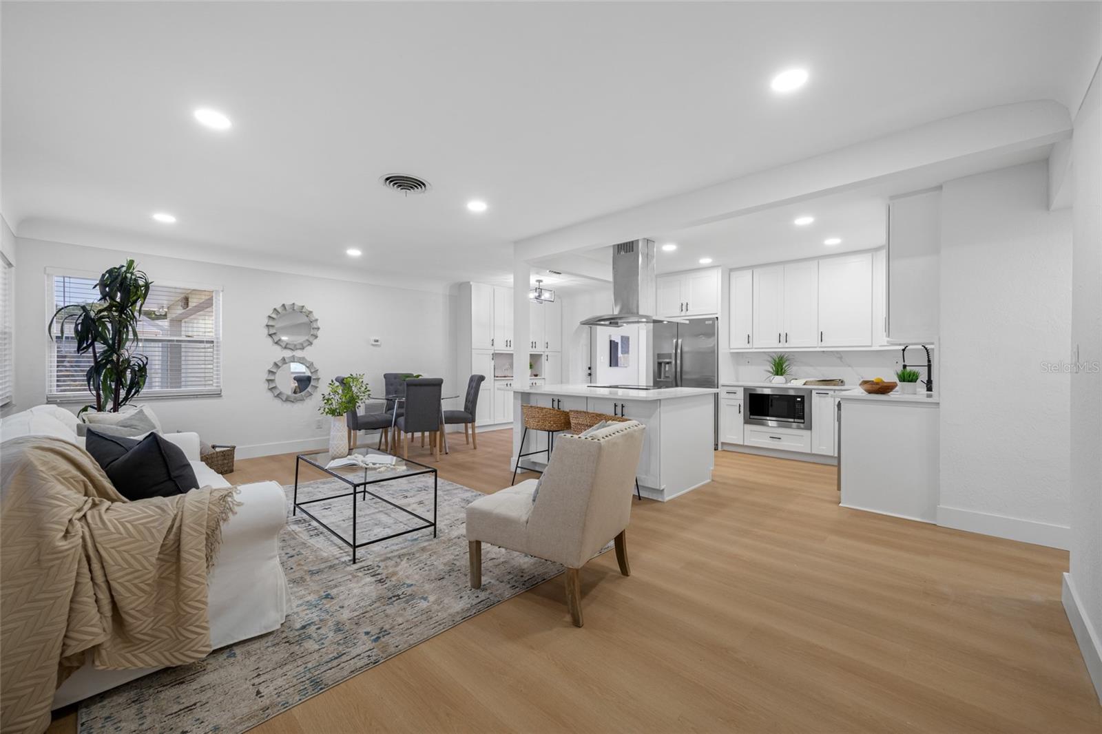 Under contract-accepting backup offers. Welcome to this beautifully updated 4 bedroom, 3 bathroom, 2 car garage home in St. Petersburg, offering modern style and a spacious layout in a prime location. Recent updates include a NEW ROOF, NEW AC, newer windows (2016), fresh interior and exterior paint, new lighting, new LVP flooring, and fully renovated bathrooms and kitchen. The open concept living room, dining area, and kitchen flow seamlessly together, complemented by a separate family room for added flexibility. The updated kitchen features a cooking island, stone countertops, stainless steel appliances, a stunning backsplash, recessed lighting, and abundant cabinet space. With two primary suites boasting en-suite bathrooms, this home is ideal for multi-generational living or hosting guests. Situated on a corner lot with a fenced backyard, you’ll be just minutes from the water while enjoying the peace of a non-flood zone. Centrally located near Maximo Park, beaches, shopping, dining, and entertainment. Don’t miss your chance to own this move-in ready gem—schedule your showing today! This home is available for the next three days to Active-Duty Military, Veterans, Widows of Veterans Educators & First Responders. See the attachment for more information on our Special Give Back Program and how to qualify.