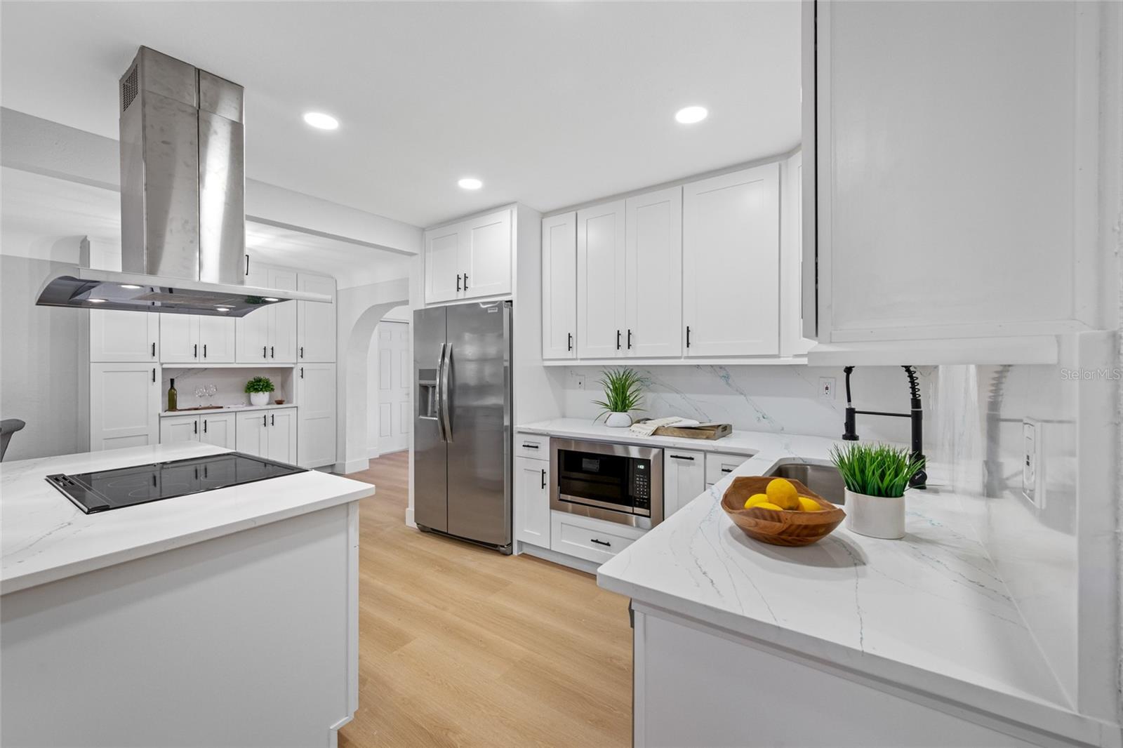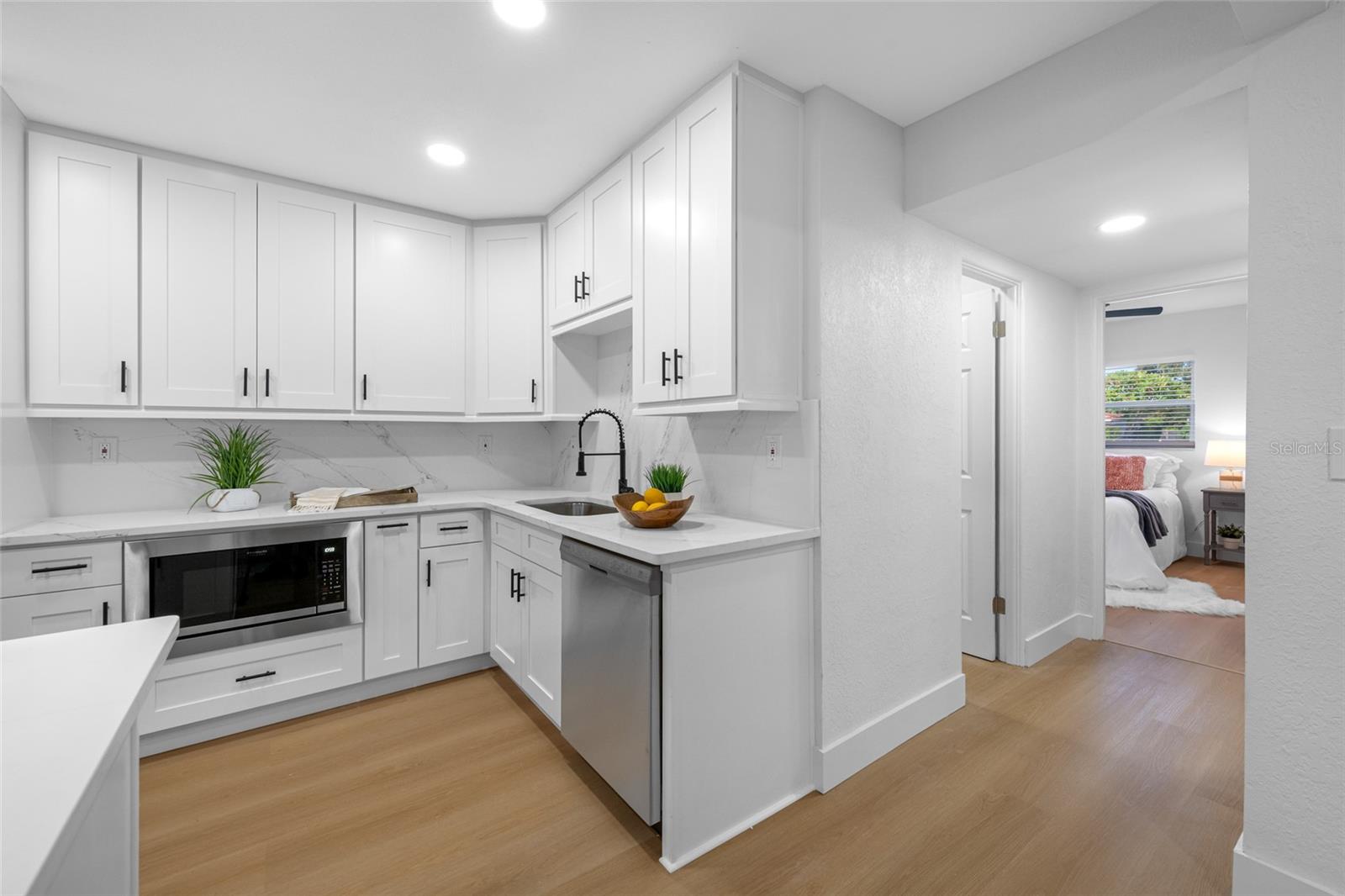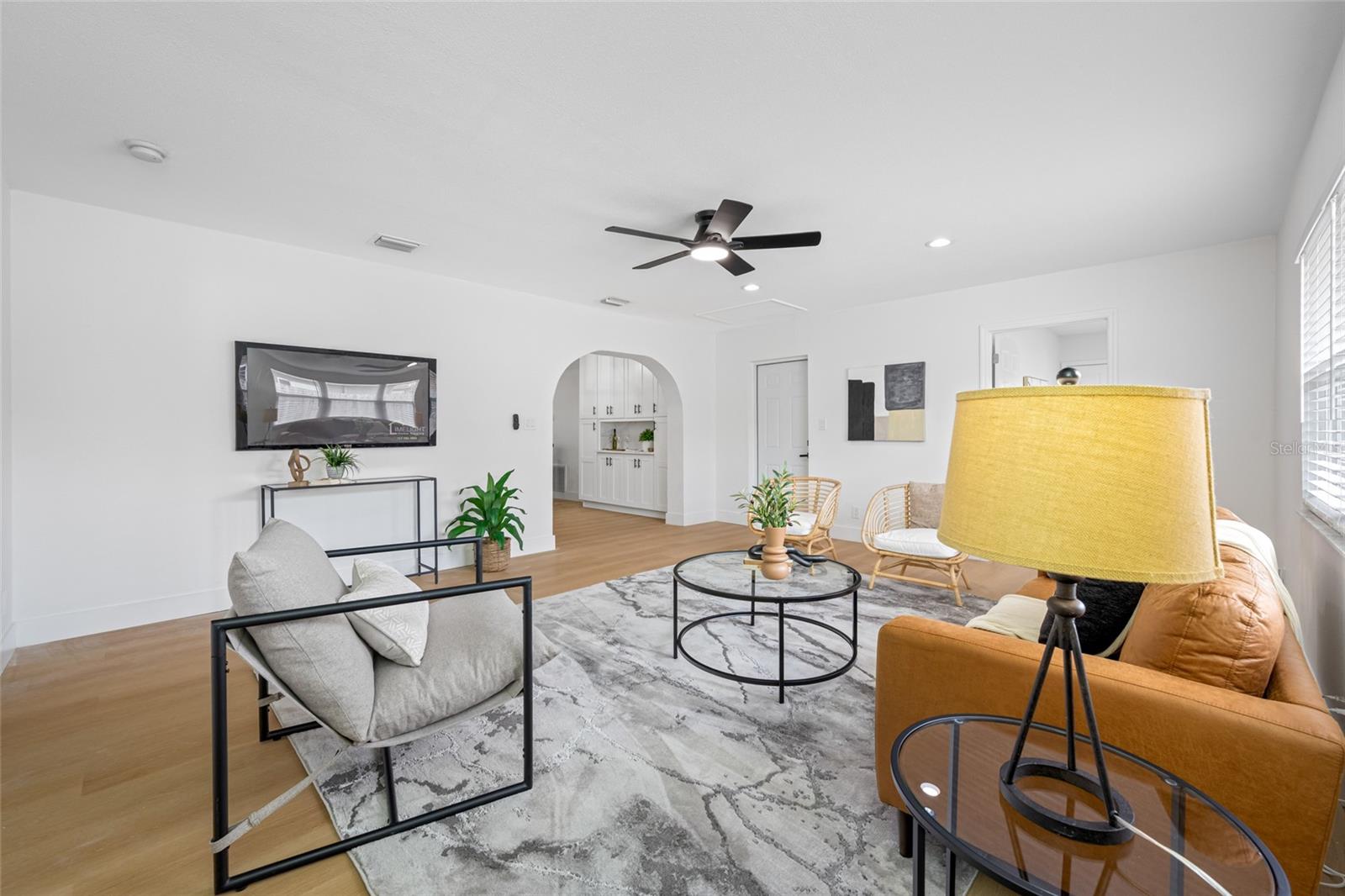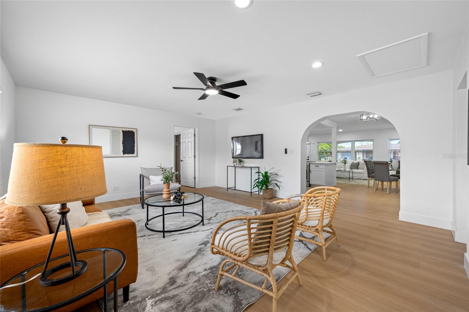 Under contract-accepting backup offers. Welcome to this beautifully updated 4 bedroom, 3 bathroom, 2 car garage home in St. Petersburg, offering modern style and a spacious layout in a prime location. Recent updates include a NEW ROOF, NEW AC, newer windows (2016), fresh interior and exterior paint, new lighting, new LVP flooring, and fully renovated bathrooms and kitchen. The open concept living room, dining area, and kitchen flow seamlessly together, complemented by a separate family room for added flexibility. The updated kitchen features a cooking island, stone countertops, stainless steel appliances, a stunning backsplash, recessed lighting, and abundant cabinet space. With two primary suites boasting en-suite bathrooms, this home is ideal for multi-generational living or hosting guests. Situated on a corner lot with a fenced backyard, you’ll be just minutes from the water while enjoying the peace of a non-flood zone. Centrally located near Maximo Park, beaches, shopping, dining, and entertainment. Don’t miss your chance to own this move-in ready gem—schedule your showing today! This home is available for the next three days to Active-Duty Military, Veterans, Widows of Veterans Educators & First Responders. See the attachment for more information on our Special Give Back Program and how to qualify.