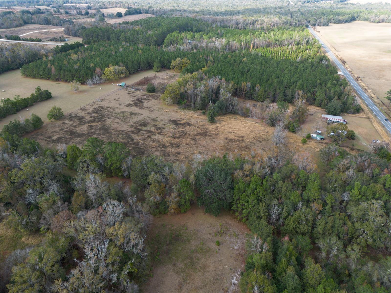 Just under 56 acres in a highly desirable rural area of Alachua County. The property is located in Flood Zone X and is mostly wooded with established hardwoods, offering privacy, abundant wildlife, and long-term timber potential. A few open pasture areas provide usable space for farming, livestock, gardening, food plots, or selective clearing to expand your homestead vision. A small pond adds natural water access for wildlife or animals. A 2BR/1BA single-wide mobile home built in 1971 remains on site, offering possible restoration, weekend use, or a place to stay while building a new home. Included on the property are multiple storage buildings and a barn for equipment, tools, feed, or recreation gear. Located on a corner lot with paved road access from two sides, this property offers both seclusion and convenience being just minutes from High Springs or Alachua. Its proximity to I-75 allows for quick travel to Gainesville or Lake City. A versatile opportunity for homestead buyers, farmers, timber investors, and outdoor recreation enthusiasts seeking acreage with infrastructure already in place and room to grow. ** Boundary lines are approximate, not an actual survey. Information is deemed reliable but not guaranteed; buyers should perform their own due diligence to confirm all property details.** Also listed under Vacant Land GC535919