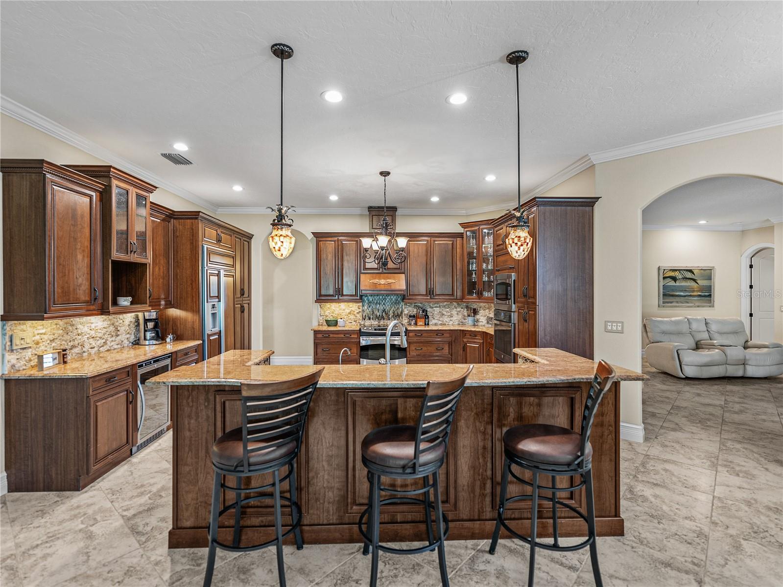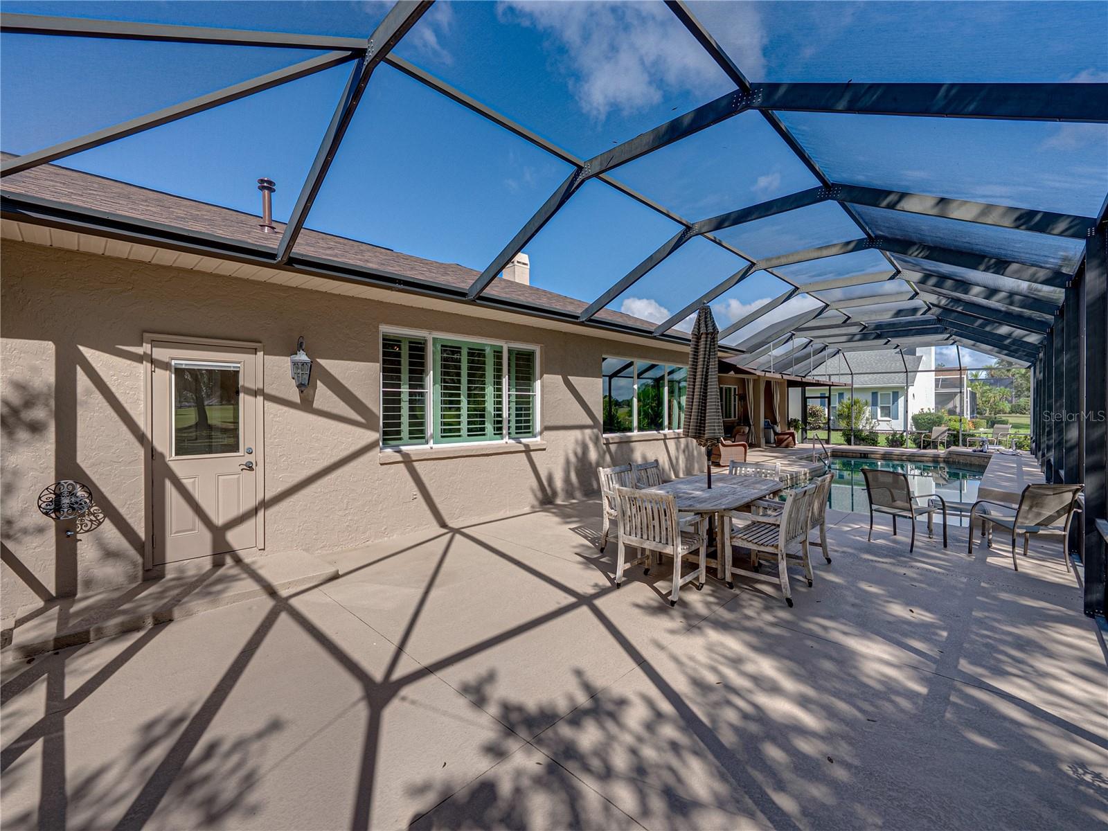 Discover your personal oasis in this stunning 4-bedroom, 3-bathroom home featuring 3, 275 square feet of thoughtfully designed living space. This exceptional property showcases quality craftsmanship throughout, from the gorgeous abundance of cabinetry to the impressive total of 4, 915 square feet under roof. The heart of the home revolves around a large, open kitchen and living area, complete with wall ovens, separate range, and a charming eat-in breakfast nook. The formal dining room provides elegant entertaining space, while a second living room with fireplace offers cozy relaxation with beautiful pool views. Move outside to the crown jewel – a magnificent covered and screened lanai surrounding a heated pool complete with a tranquil waterfall feature and easy access to a full bathroom. This outdoor paradise overlooks the golf course, creating a resort-like atmosphere in your own backyard. The luxurious primary bedroom suite features expansive closets, dual vanities, a garden tub, large shower, towel heater, and private water closet. A second en-suite bedroom adds convenience for guests or family members featuring private access to the garage and back lanai. Additional highlights include a versatile bonus den perfect for office space or billiards (pool table included), and a unique golf cart garage in addition to your oversized attached garage. The washer and dryer convey with the home and can be sold furnished for a true turn key experience! Located in a desirable community with easy access to shopping at Publix, nearby schools, and recreational amenities including Dendrocygna Autumnalis Pond, and boat ramp access to the intercostal!! This home perfectly balances luxury living with practical comfort. This quality-built residence offers an unmatched lifestyle opportunity!