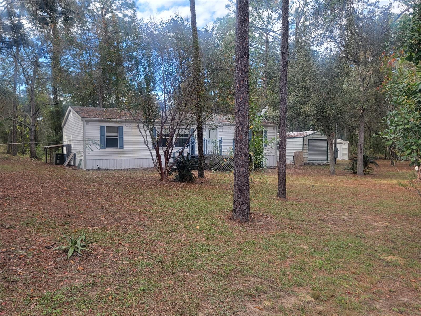 Adorable 3 bedroom, 2 bathroom 1300 sqft home with tons of potential situated on a tranquil, private 0.76-acre lot. The entire property is fully fenced with two double gates in the front, and two large sheds are included—one wired with electricity—perfect for a workshop, hobby use, or storage. The home is on a very quiet street and surrounded by beautiful wooded lots on all sides- no neighbors! Endless opportunity to enjoy the outdoors- the large front porch is an amazing spot to enjoy all the nature this area has to offer, or turn the spacious, covered back porch into the perfect spot for relaxing and entertaining. The back porch is wired for lighting and ceiling fans, so all it needs is your imagination! Inside, you will find a roomy layout with a large kitchen and living area, lots of natural light, and plenty of storage. The master bedroom features a large jack and jill bathroom. This home would be a great starter home, investment property, or opportunity for someone who wants to make it their own. Located in the peaceful community of Lake Tropicana, you will be just 10 minutes away from Rainbow Springs State Park and the Rainbow River, 15 minutes away from the World Equestrian Center, and enjoy a rural feel while still being just minutes away from shopping and amenities. Call or text today to schedule a showing!