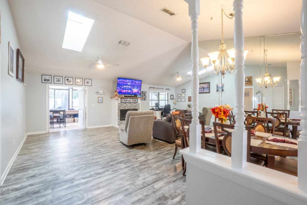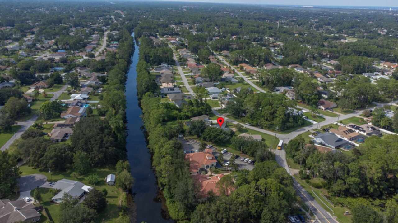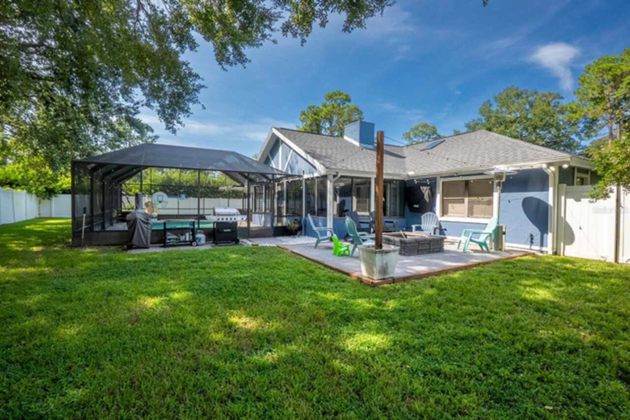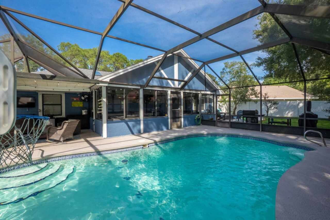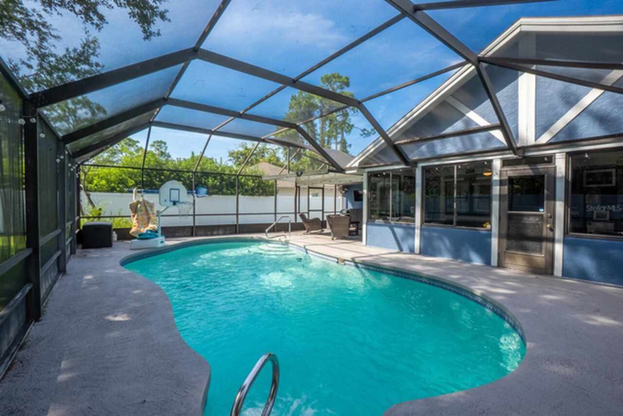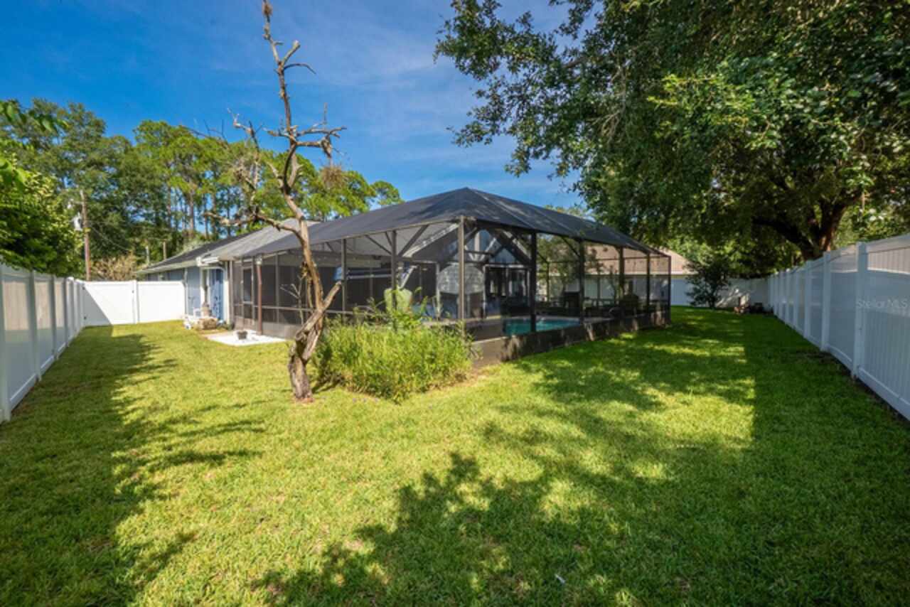 Welcome home to Indian Trails East one of the very few Palm Coast neighborhoods that is walking distance to stores and restaurants! The lovely 3 bedroom 2 bath home on an oversized lot offers a side entry garage volume ceilings, a wood burning fireplace, huge Florida Room. Light and bright with plenty of skylights, LVP flooring through out, formal dining, large living room and cabinet packed kitchen with center island and newer stainless steel appliances. Ample sized guest bedrooms and bath in this split floor plan offer guests privacy, primary bedroom with large walk in closet and en-suite bath. Off off the large Florida room great for entertaining you will find a covered lanai and grilling area, screen inground pool and new outdoor fire pit patio in a fully fenced in yard. Centrally located to schools, shopping and I95 yet tucked away in a lovely neighborhood surrounded by fresh water canals. Roof 2021, Hot Water Heater 2023, HVAC 2024, Firepit patio 2024, Gutters 2024, Exterior Paint 2023