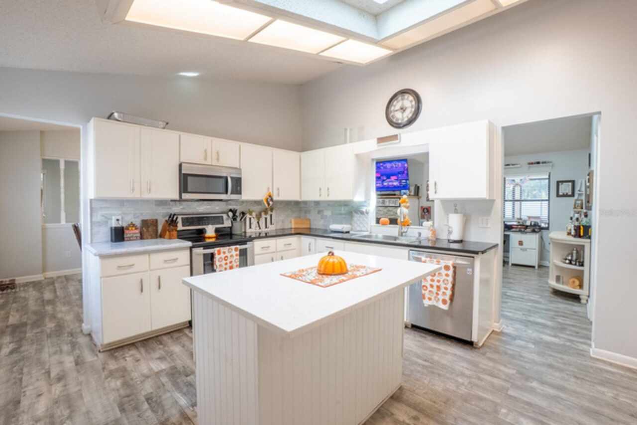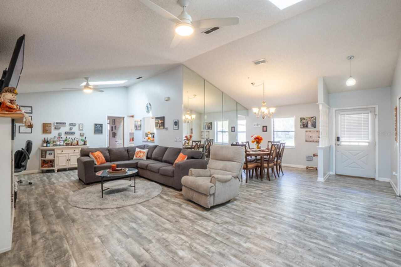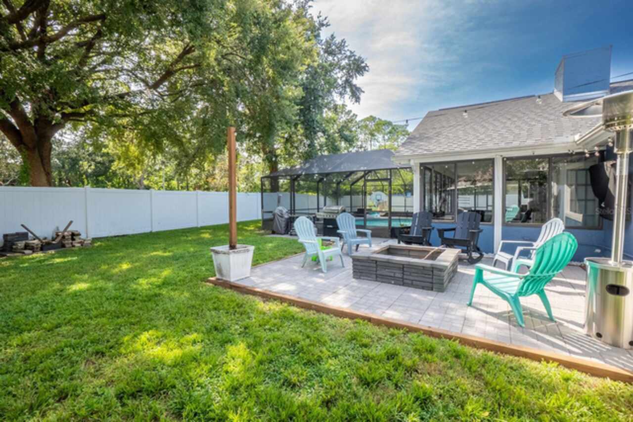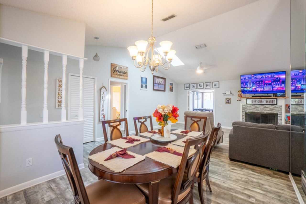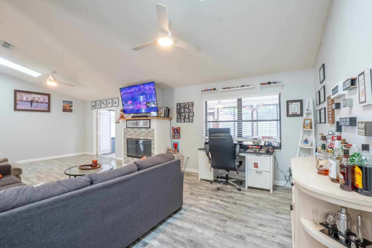 Welcome home to Indian Trails East one of the very few Palm Coast neighborhoods that is walking distance to stores and restaurants! The lovely 3 bedroom 2 bath home on an oversized lot offers a side entry garage volume ceilings, a wood burning fireplace, huge Florida Room. Light and bright with plenty of skylights, LVP flooring through out, formal dining, large living room and cabinet packed kitchen with center island and newer stainless steel appliances. Ample sized guest bedrooms and bath in this split floor plan offer guests privacy, primary bedroom with large walk in closet and en-suite bath. Off off the large Florida room great for entertaining you will find a covered lanai and grilling area, screen inground pool and new outdoor fire pit patio in a fully fenced in yard. Centrally located to schools, shopping and I95 yet tucked away in a lovely neighborhood surrounded by fresh water canals. Roof 2021, Hot Water Heater 2023, HVAC 2024, Firepit patio 2024, Gutters 2024, Exterior Paint 2023