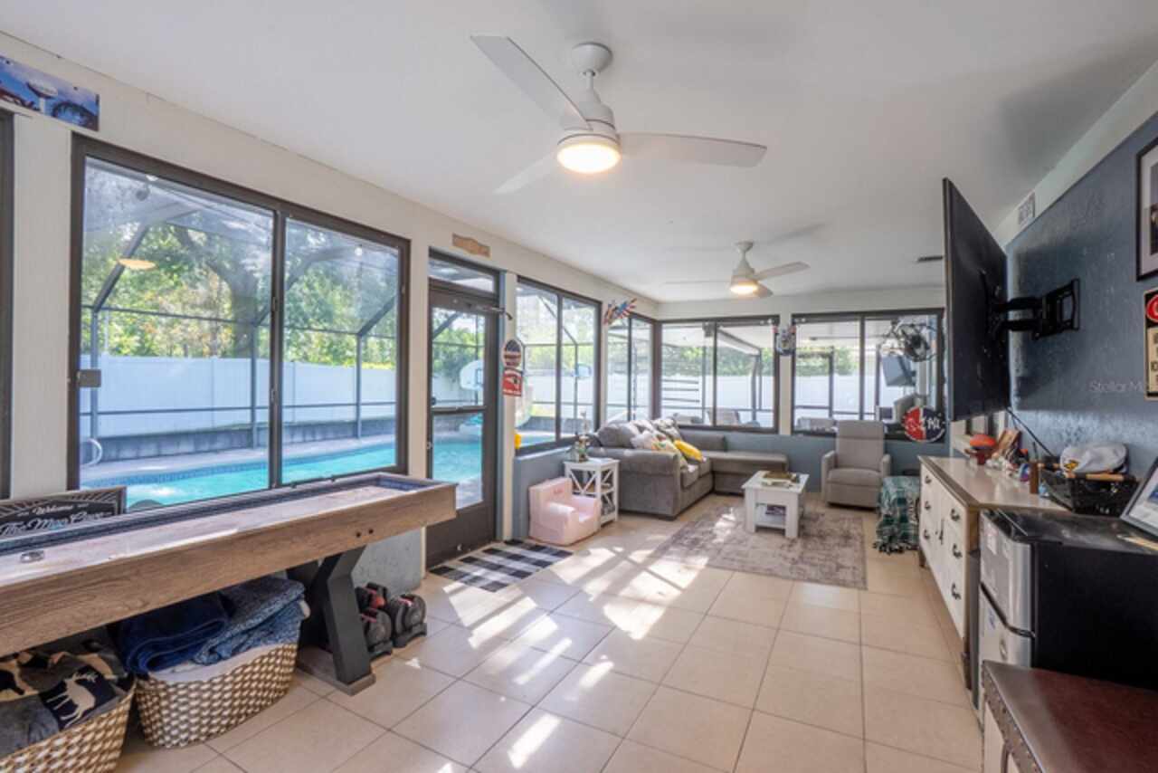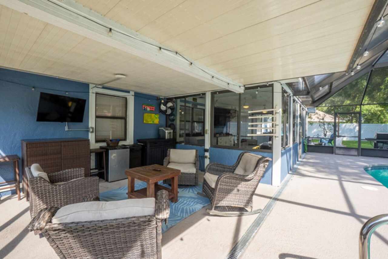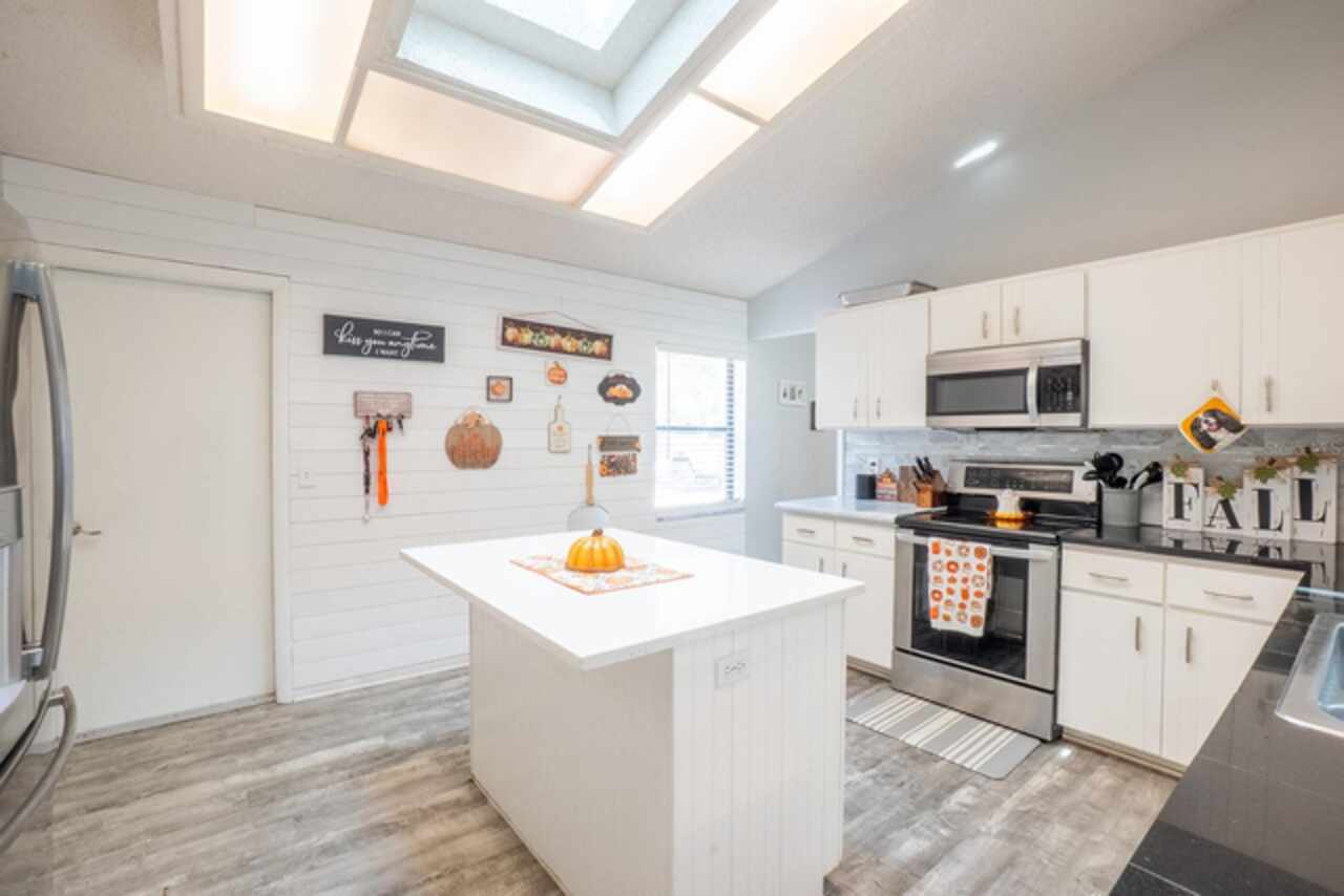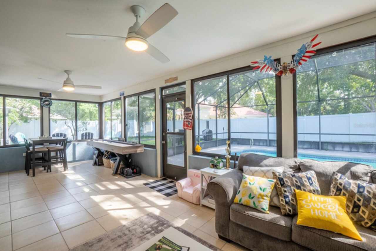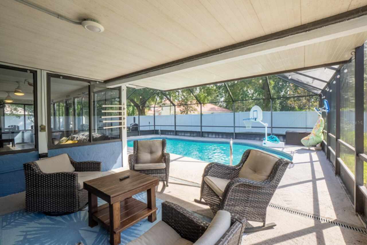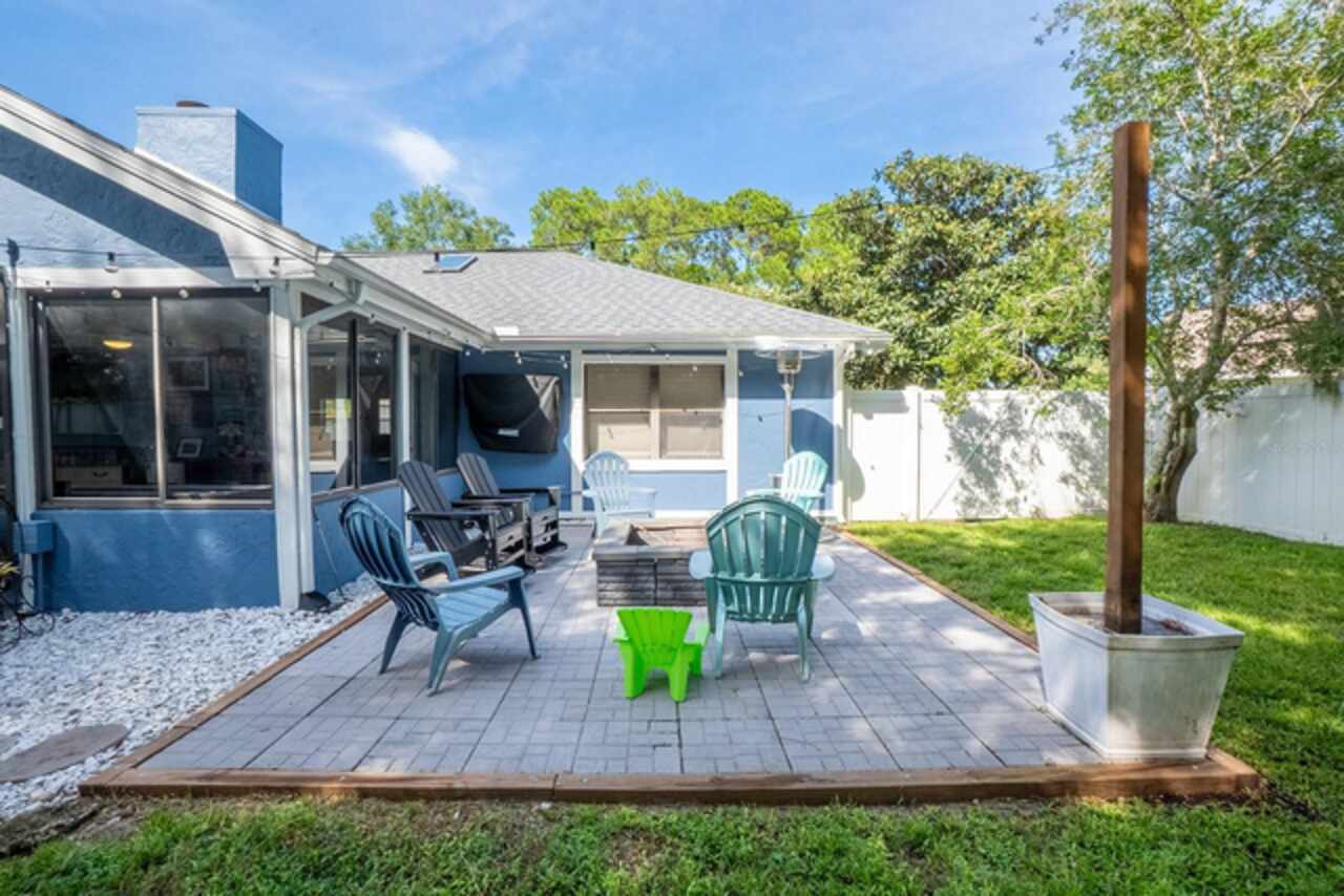 Welcome home to Indian Trails East one of the very few Palm Coast neighborhoods that is walking distance to stores and restaurants! The lovely 3 bedroom 2 bath home on an oversized lot offers a side entry garage volume ceilings, a wood burning fireplace, huge Florida Room. Light and bright with plenty of skylights, LVP flooring through out, formal dining, large living room and cabinet packed kitchen with center island and newer stainless steel appliances. Ample sized guest bedrooms and bath in this split floor plan offer guests privacy, primary bedroom with large walk in closet and en-suite bath. Off off the large Florida room great for entertaining you will find a covered lanai and grilling area, screen inground pool and new outdoor fire pit patio in a fully fenced in yard. Centrally located to schools, shopping and I95 yet tucked away in a lovely neighborhood surrounded by fresh water canals. Roof 2021, Hot Water Heater 2023, HVAC 2024, Firepit patio 2024, Gutters 2024, Exterior Paint 2023