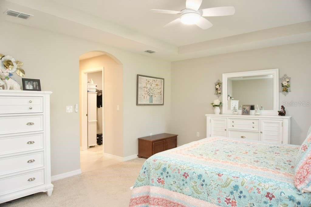 Ceiling Fans(s), Crown Molding, Eat-in Kitchen, High Ceilings, Kitchen/Family Room Combo, Open Floorplan, Primary Bedroom Main Floor, Solid Surface Counters, Solid Wood Cabinets, Split Bedroom, Thermostat, Tray Ceiling(s), Walk-In Closet(s), Window Treatments