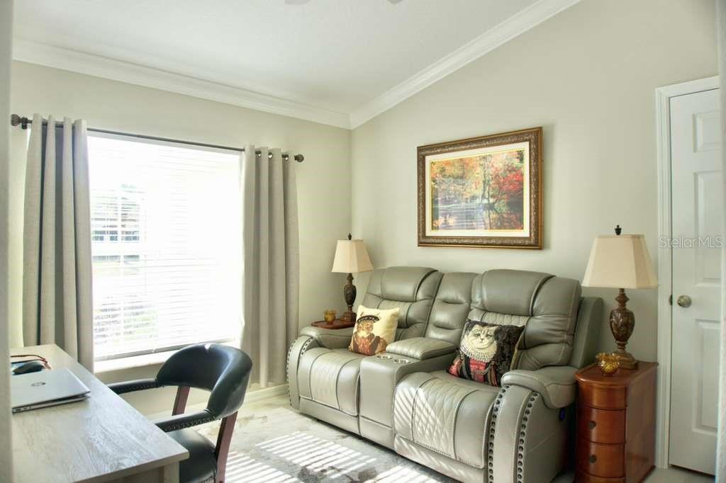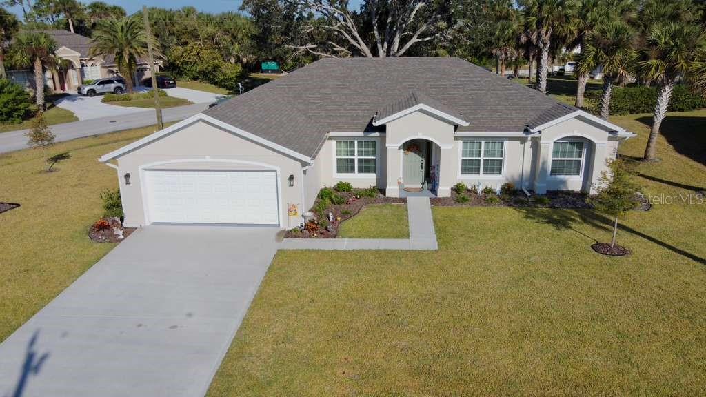 As you step inside this 2024 SeaGate Willow, located in the desirable Palm Harbor area of Palm Coast, you’re greeted by a spacious open floor plan featuring elegant arched entryways, crown molding throughout the main living areas, and seamless ceramic wood-like tile that flows into the versatile den/flex room. For the culinary enthusiast, the kitchen is a true masterpiece—boasting quartz countertops, pendant lighting that casts a soft glow over the island bar, a designer backsplash, and sleek stainless steel Samsung appliances. Stylish hardware accents and 42" cabinets with crown molding extend into the adjacent café, perfectly blending functionality with elegance. The private owner’s suite is a sanctuary of luxury, complete with a recessed ceiling detail, two oversized walk-in closets for ample storage, a dual-sink vanity for added convenience, and a generously sized walk-in shower featuring a pebble-textured floor for a soothing, spa-like experience. Step outside through the expanded sliding glass doors onto the lanai, where a motorized retractable screen offers the perfect balance of comfort and openness—keeping bugs out while blocking UV rays. The backyard pool creates your own private paradise, making this home feel like a resort-worthy retreat. This home has so many upgrades enhancing both comfort and value: Quartz countertops throughout the kitchen and baths Designer backsplash and pendant lighting 42" cabinets with crown molding Crown molding in main living areas Arched entryways and upgraded ceramic wood-like tile Stainless steel Samsung appliances Expanded sliding glass doors to the lanai Motorized retractable screen on the lanai Pool was just added in August with a pool heated system that will warm water in no time . Experience the perfect blend of modern luxury, thoughtful design, and standout upgrades. Schedule your private viewing today and see why this home is the one you’ve been waiting for.