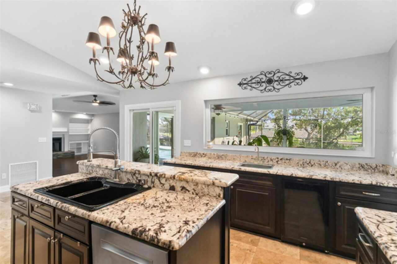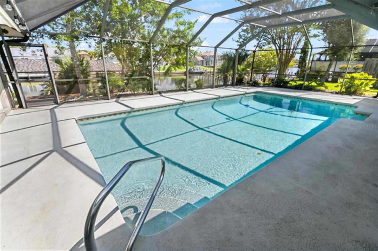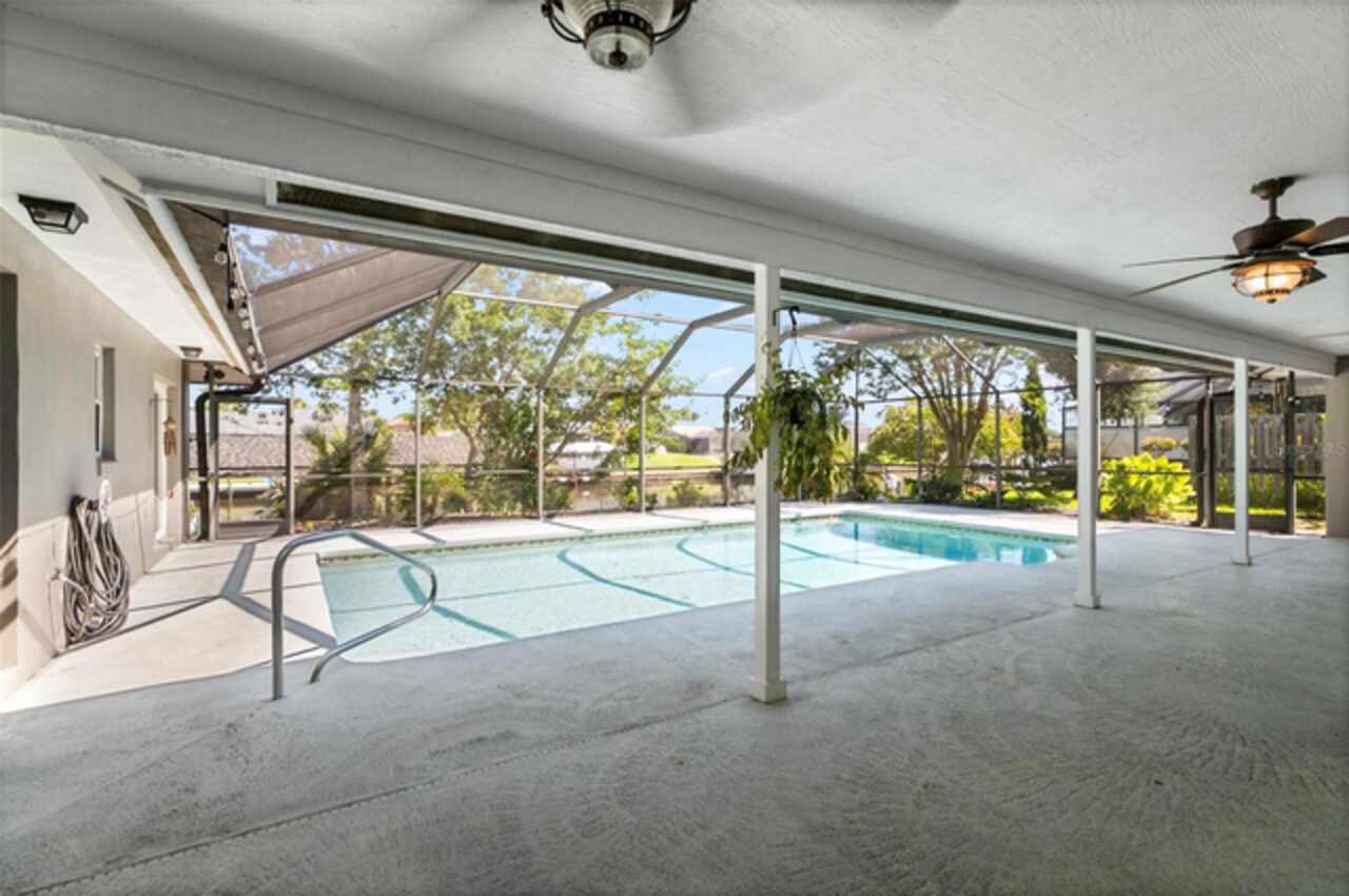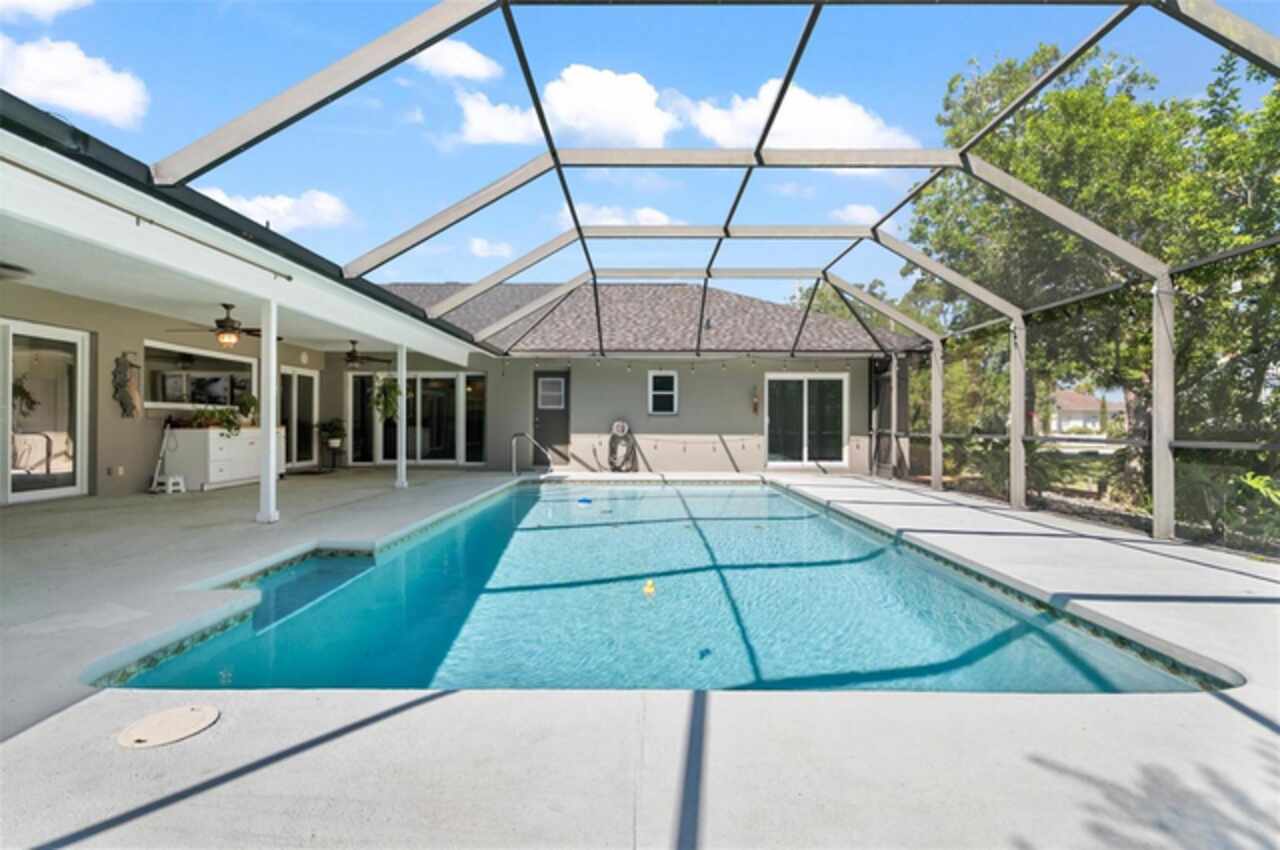 One or more photo(s) has been virtually staged. Located in Sailboat Country! This beautifully maintained home offers a spacious lanai with a large pool, plenty of room for lounging and dining, and tranquil views of the wide canal and private dock and boat lift. Inside, double doors open up to a formal living and dining room with an office. The gourmet kitchen features granite countertops, stainless steel appliances with double island, wine cooler, center island and a picture window overlooking the pool. The cozy family room includes a wood-burning fireplace with stone accents and custom built-ins. The private primary suite is thoughtfully set apart from the three guest bedrooms—one of which features its own en-suite bath. The master bath offers double sinks, a walk-in shower, and access to a serene private courtyard with an outdoor shower. Enjoy peace of mind with recent updates including a newer HVAC system, brand new roof, windows, and driveway. Perfect home for entertaining—Inside & Out! This home features a covered dock with boat lift and offers direct, no-turn access to the Intracoastal Waterway. This incredible home truly speaks for itself—come see it in person!