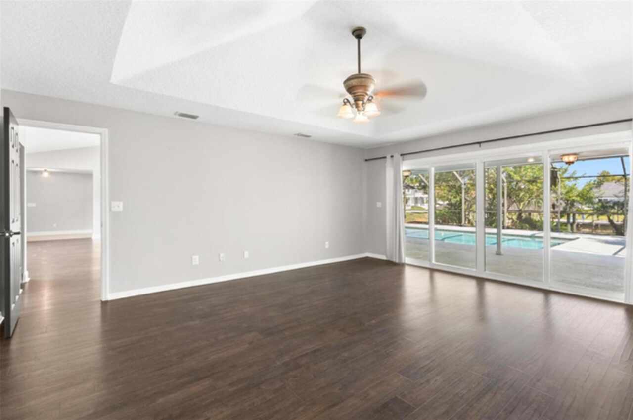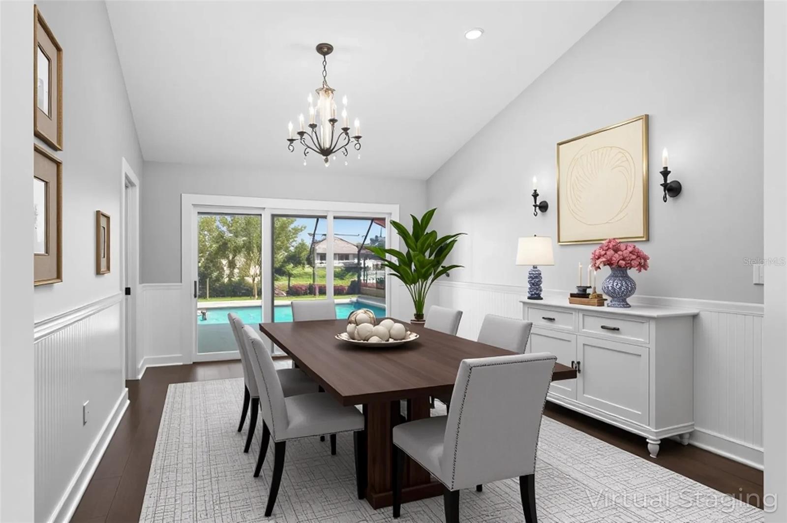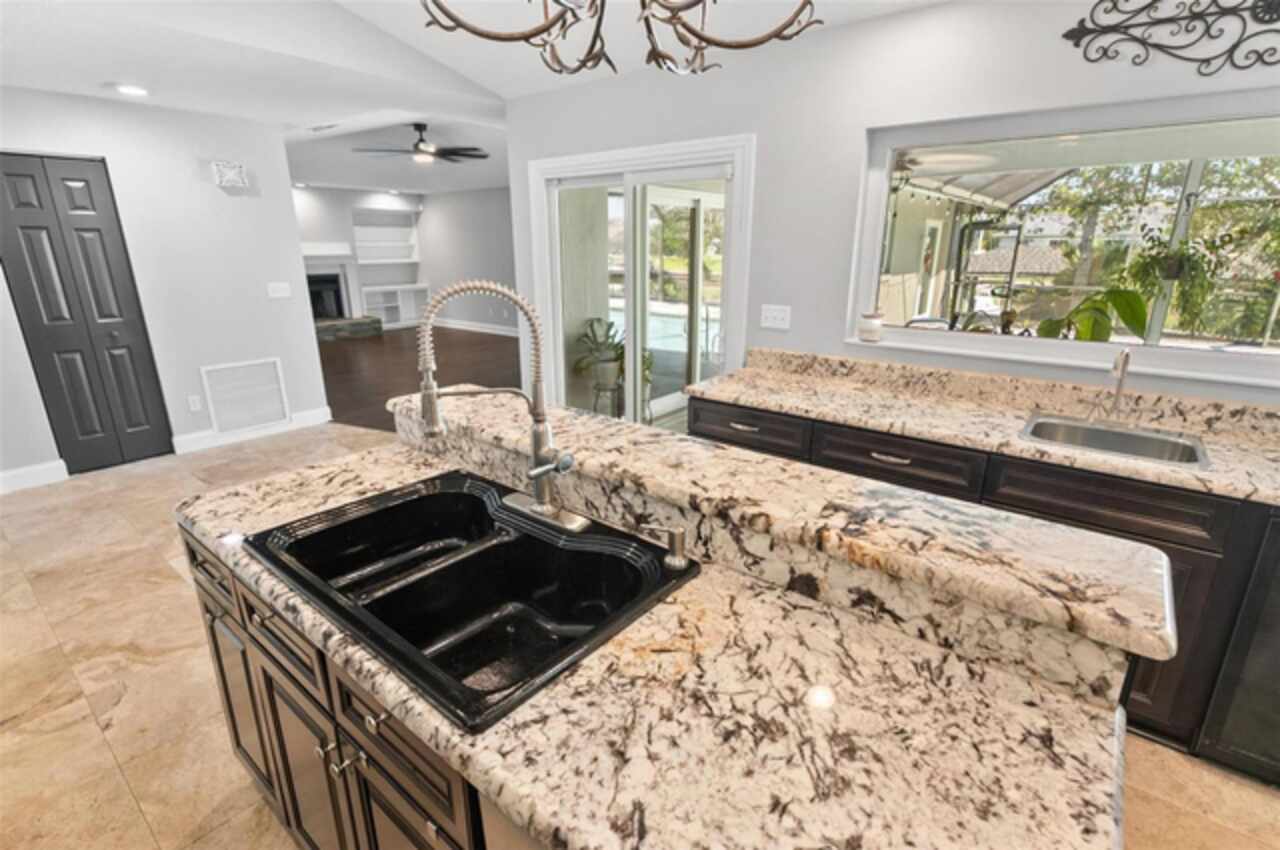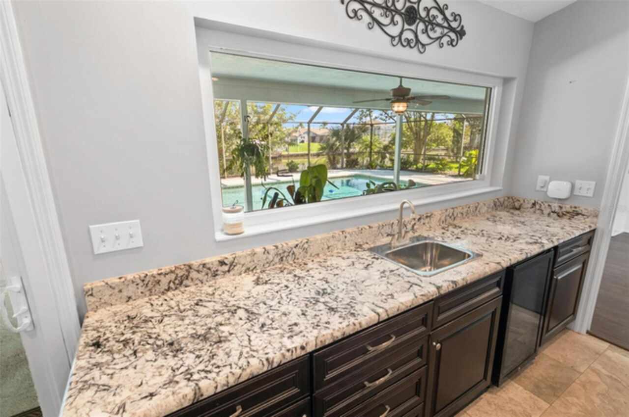 One or more photo(s) has been virtually staged. Located in Sailboat Country! This beautifully maintained home offers a spacious lanai with a large pool, plenty of room for lounging and dining, and tranquil views of the wide canal and private dock and boat lift. Inside, double doors open up to a formal living and dining room with an office. The gourmet kitchen features granite countertops, stainless steel appliances with double island, wine cooler, center island and a picture window overlooking the pool. The cozy family room includes a wood-burning fireplace with stone accents and custom built-ins. The private primary suite is thoughtfully set apart from the three guest bedrooms—one of which features its own en-suite bath. The master bath offers double sinks, a walk-in shower, and access to a serene private courtyard with an outdoor shower. Enjoy peace of mind with recent updates including a newer HVAC system, brand new roof, windows, and driveway. Perfect home for entertaining—Inside & Out! This home features a covered dock with boat lift and offers direct, no-turn access to the Intracoastal Waterway. This incredible home truly speaks for itself—come see it in person!