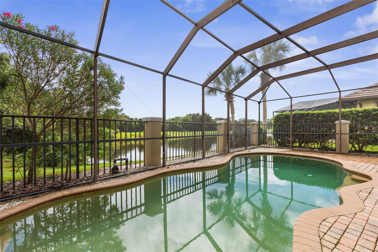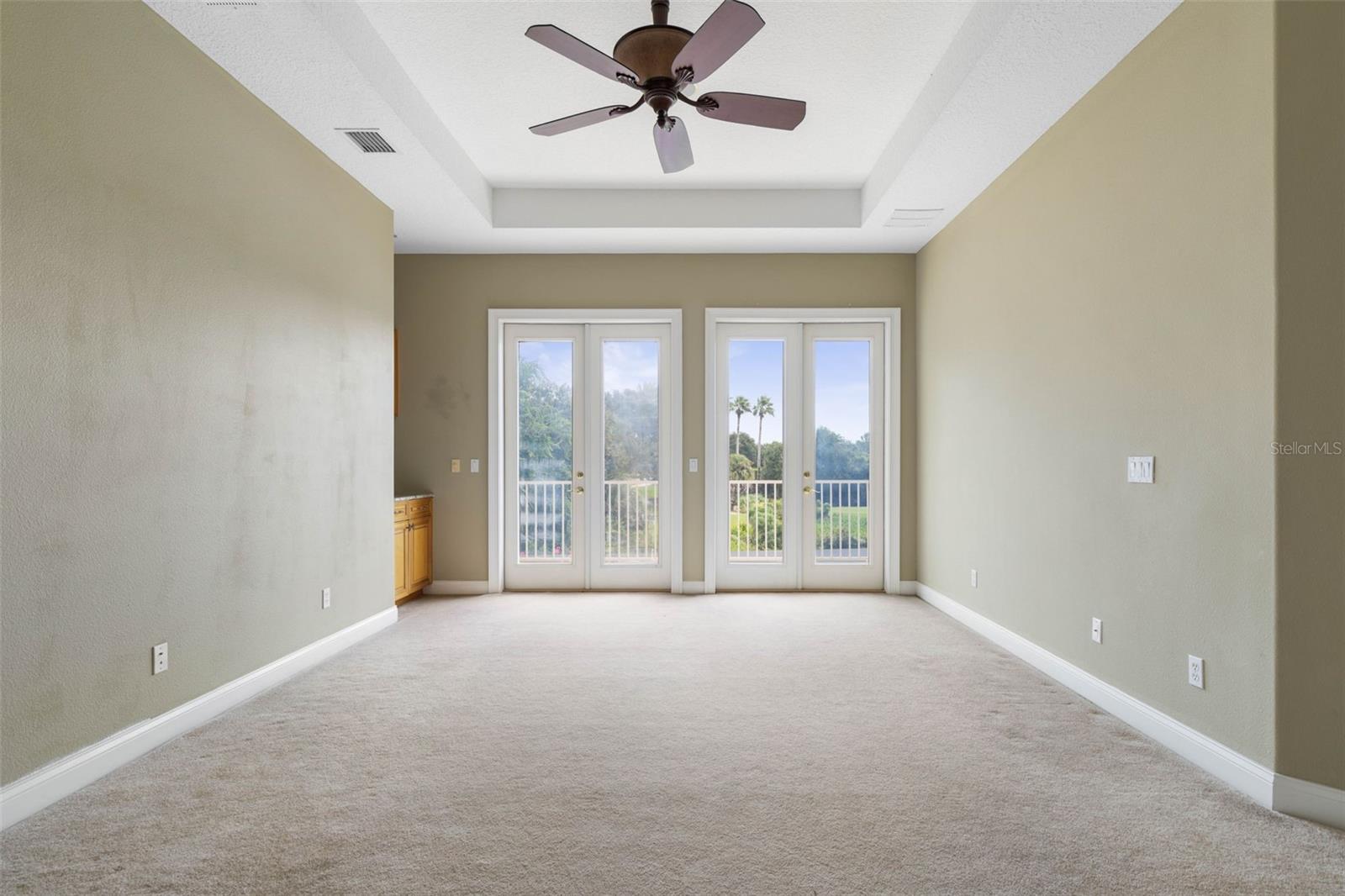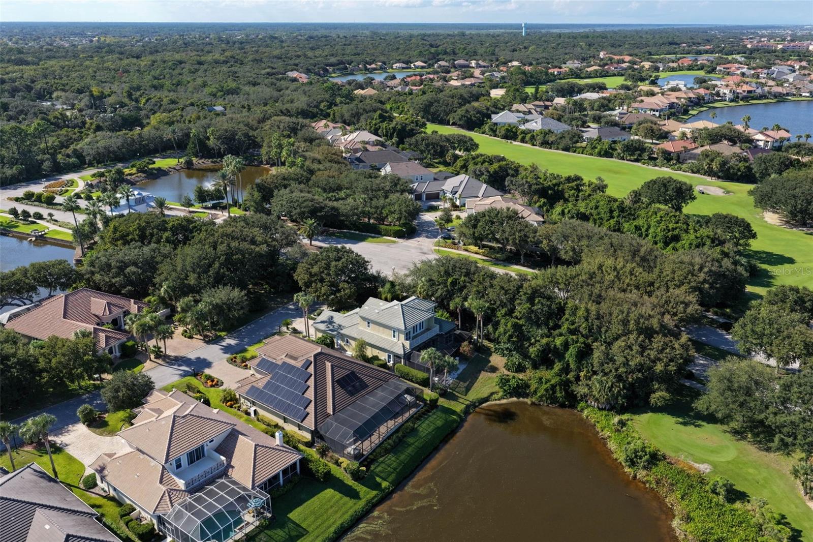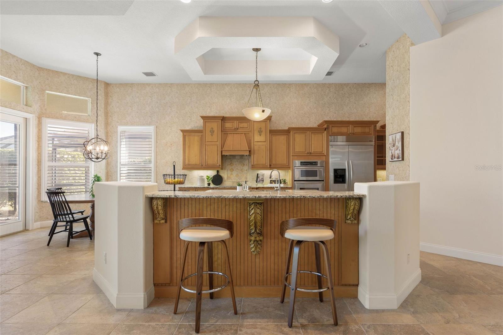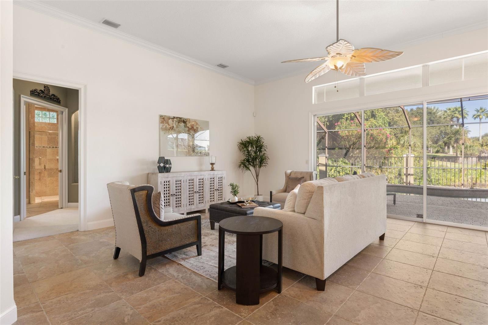 Experience the ultimate in golf, lakefront, and coastal living at 3 Flagship Drive. Perfectly positioned on the 4th fairway and lake of the Jack Nicklaus Signature Ocean Course, this exceptional residence offers over 3, 600 sq. ft. of luxurious living space with 3 bedrooms, 2.5 bathrooms, a versatile office (or potential 4th bedroom), and timeless architectural detail. As you arrive, you’ll be greeted by a classic tile roof, paver driveway, and elegant French doors leading into a foyer with inlay tile accents. The private study with hardwood floors sits just off the entry, while the open-concept living area unfolds in front of you — bathed in natural light from expansive windows and sliding glass doors. Soaring tray ceilings with crown molding and a seamless flow to the gourmet kitchen set the tone for refined living. The kitchen is a chef’s delight, featuring a large island, granite countertops, tile backsplash, stainless steel appliances, wine refrigerator, built-in oven, and custom cabinetry. A breakfast nook with plantation shutters and a separate workspace add both charm and functionality. The main-floor primary suite is a serene retreat, complete with plush carpet, patio access, and a spa-like bath offering a soaking tub, floor-to-ceiling tiled walk-in shower, dual vanities, and a spacious walk-in closet. Upstairs, hardwood stairs lead to a bright loft-style living area with a dry bar, two additional exceptionally large bedrooms, a full bath with dual vanities, and a private balcony with sweeping views of the lake, fairway, and ocean breezes. Outdoor living shines with a screened-in pool and spa, surrounded by ample patio space for entertaining or relaxation, all set against a backdrop of lush golf course greens and tranquil water views. This home also features a 2025 pool heater, a buried propane tank, and a whole-house generator, ensuring year-round comfort, efficiency, and peace of mind. Located within Ocean Hammock, a popular gated community just moments from the pristine coastline, this property offers the perfect balance of comfort, privacy, and resort-style living. Whether you’re an avid golfer, a beach lover, or simply seeking a peaceful retreat, this home delivers it all.