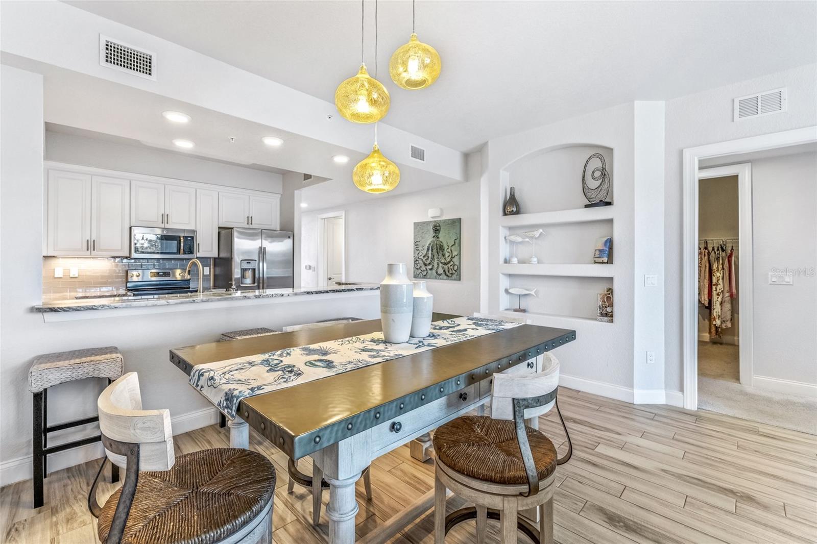 Built-in Features, Ceiling Fans(s), Living Room/Dining Room Combo, Open Floorplan, Primary Bedroom Main Floor, Solid Wood Cabinets, Stone Counters, Thermostat, Walk-In Closet(s), Window Treatments
