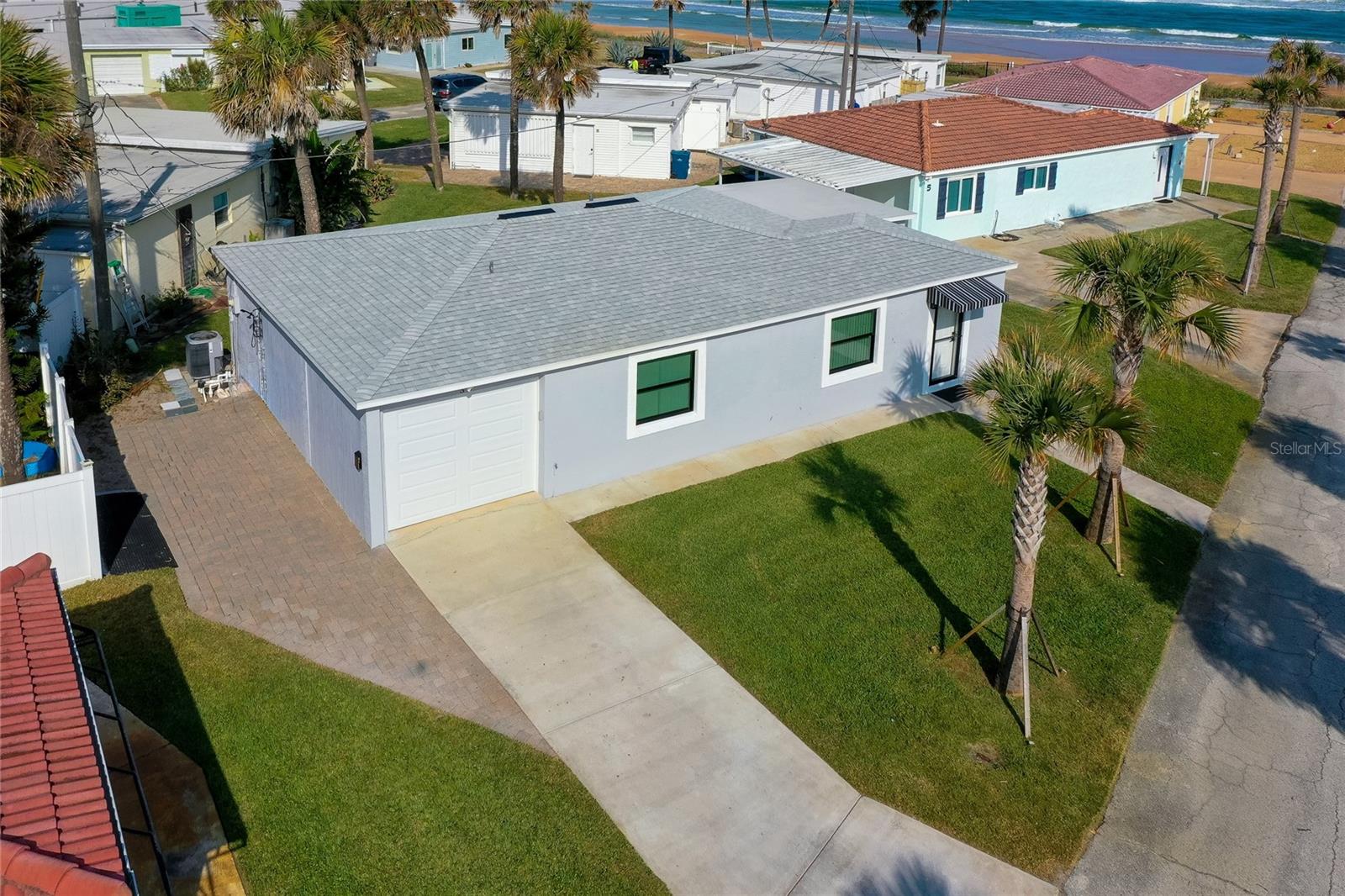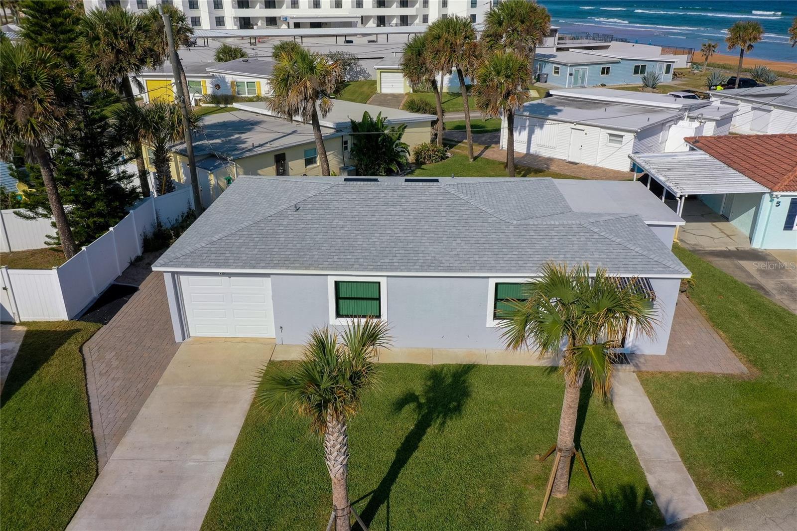 Extensively remodeled Beach side bungalow just steps to the Atlantic Ocean and with unobstructed direct ocean views from the family room and the primary bath room. These views are normally only found in multi million dollar homes or Condo's but here is a chance to have those same views and unobstructed ocean access for way less and with no HOA fees. This turn key home has a brand new Kitchen and appliances, Luxury Vinyl plank flooring, freshly painted inside and out, ceiling fans, LED lighting, new tankless water heater, new TV's in every bedroom and the family room and a whole home Over the air Antenna for watching multiple channels of TV all for free. All the new furniture is also included. A new sectional and rug in the family room, new bar stools for the Kitchen Island, and new adjustable beds for the bedrooms. Also included is a new Hurricane rated garage door, remote door opener, and an Outdoor Shower for washing off those beach toys when coning off the beach. If all this wasn't enough the Roof and A/C is less than 3 years old and ALL NEW WINDOWS were just installed this summer. For those that would like to use this as an investment rental, this area is in the short term rental zone which allows for daily rentals of this home. Come take a look at this beautifully remodeled home that truly is move in ready!