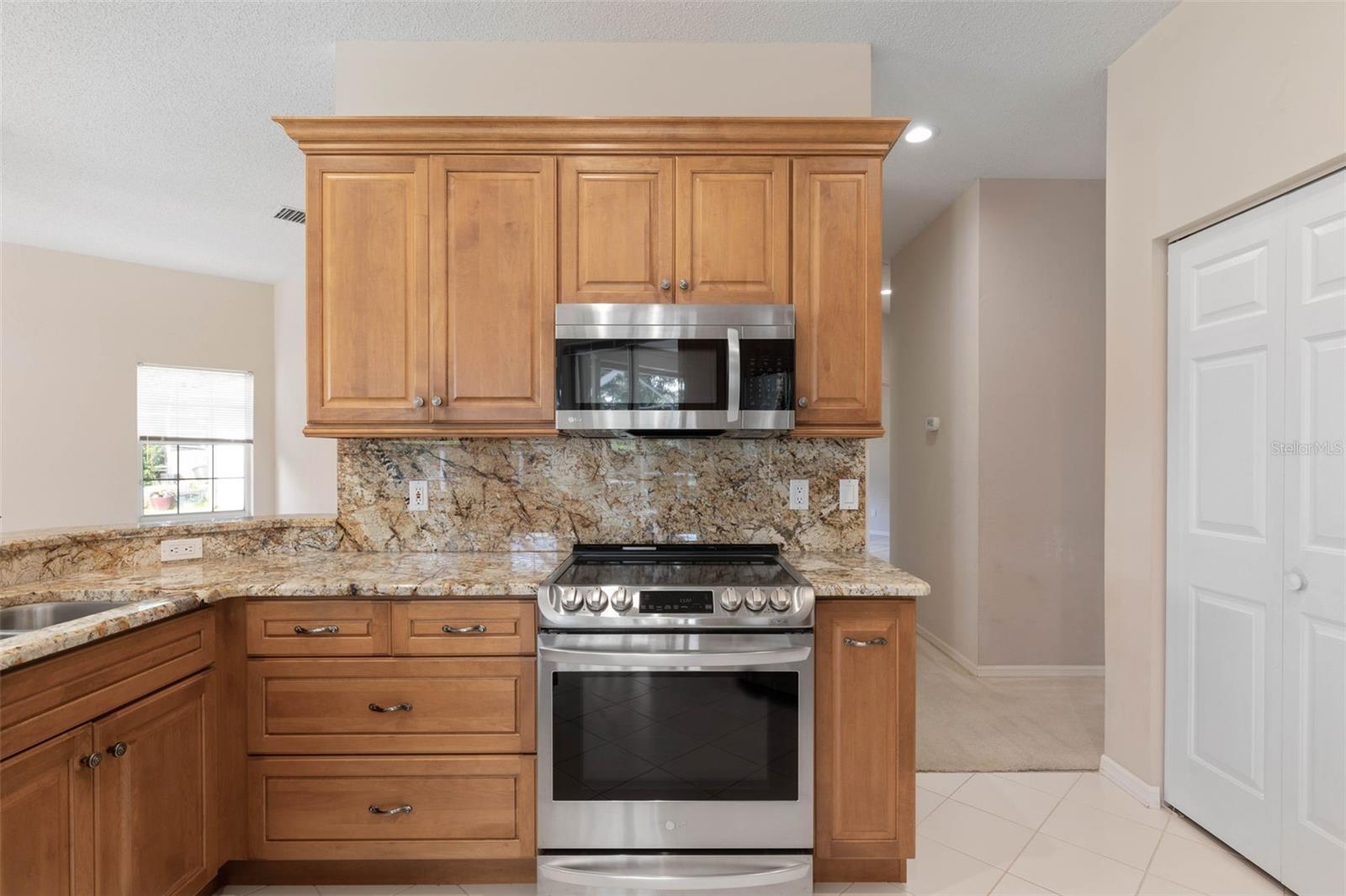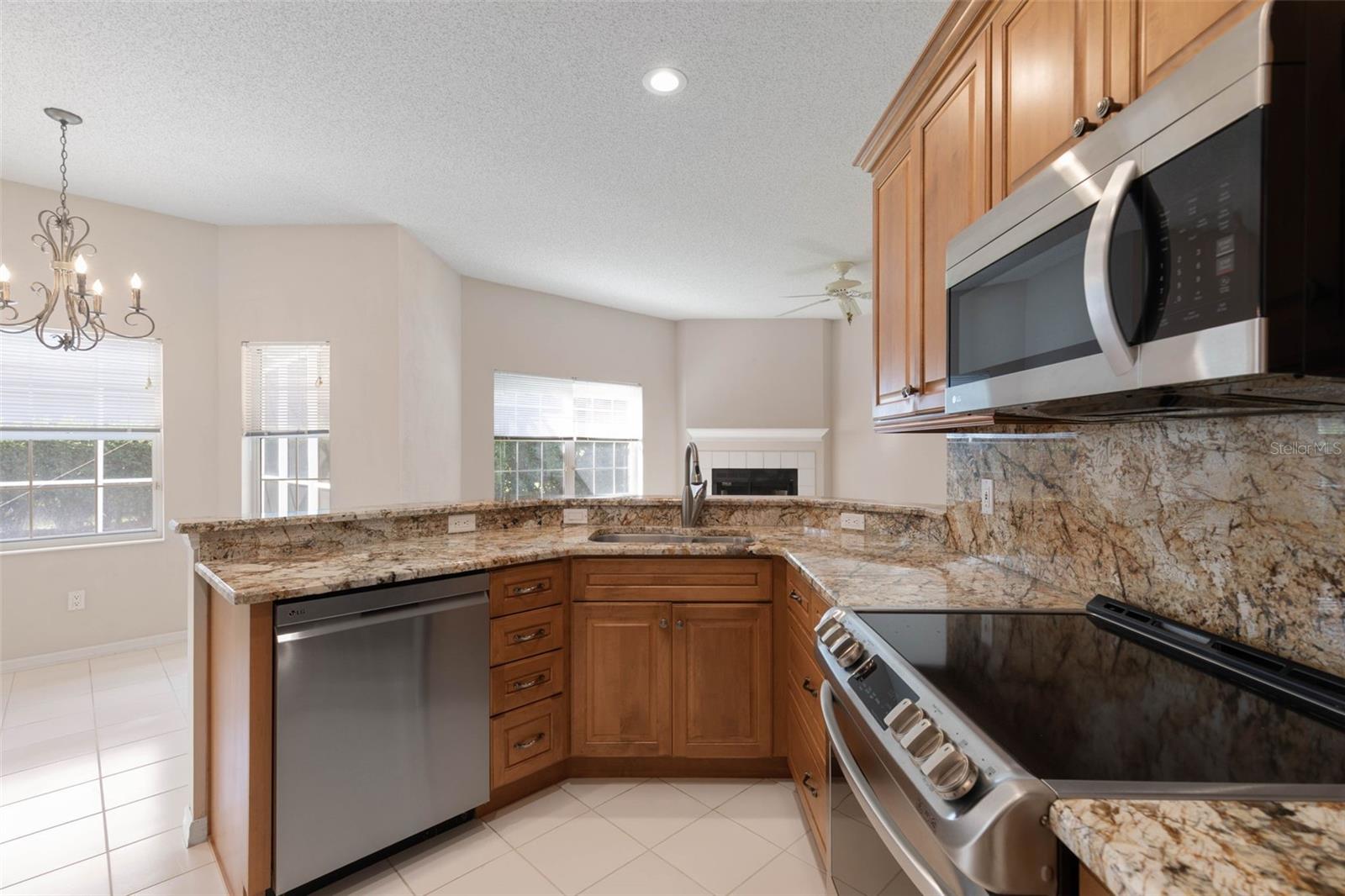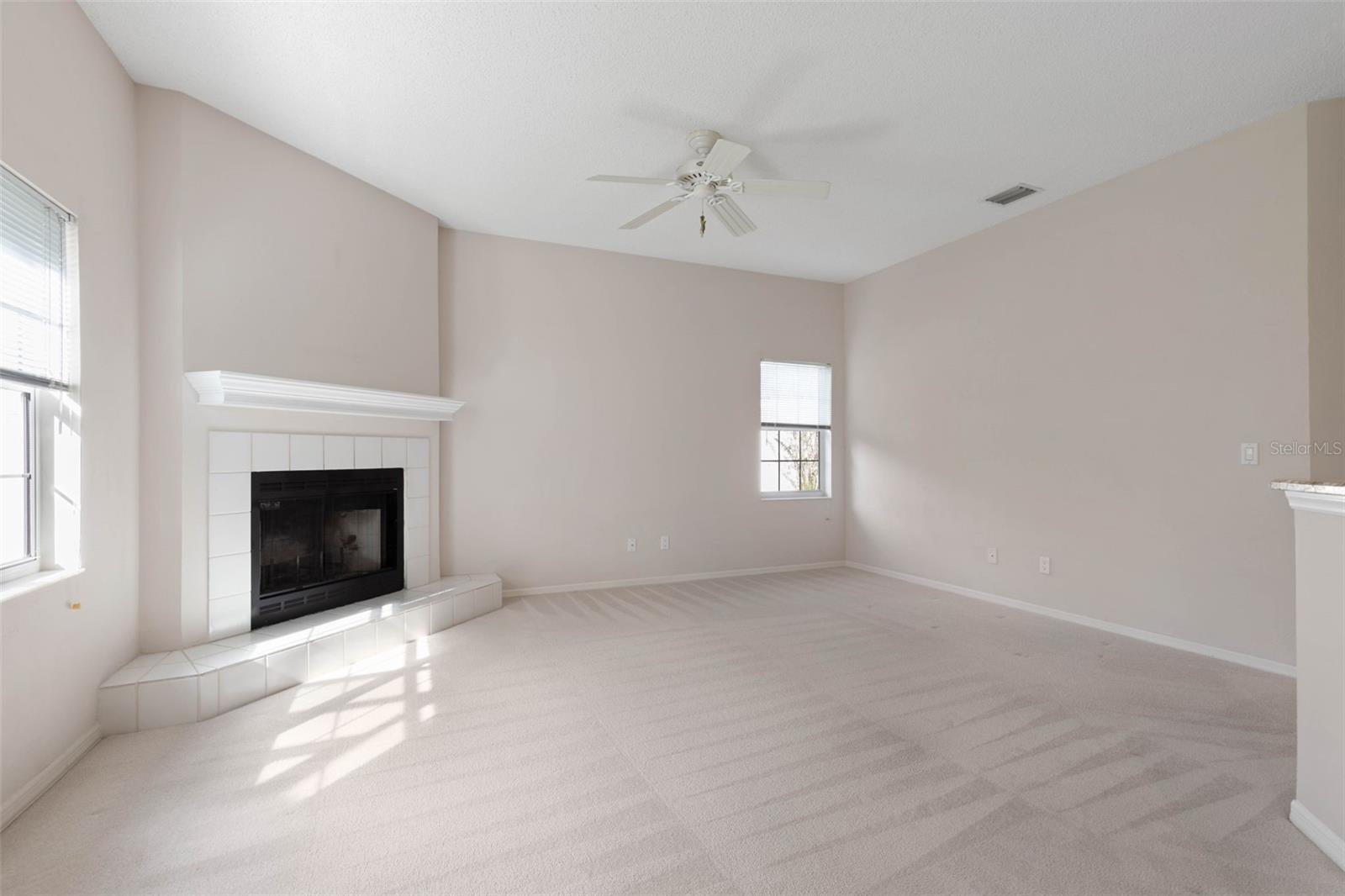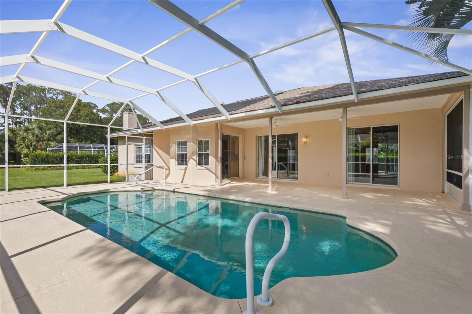 Under contract-accepting backup offers. One or more photo(s) has been virtually staged. This home lives larger than its square footage suggests, welcoming you with an open-concept living and dining area, a well-appointed kitchen with a casual dining nook, and a large family room with fireplace—ideal for relaxed, everyday living and entertaining. Kitchen features high-end cabinets, granite countertop and back splash, and stainless-steel appliances. This split floor plan offers privacy and convenience, with the primary suite located on one side of the home and two additional bedrooms positioned on the opposite end. The living areas, kitchen, and primary bedroom all offer beautiful views and direct access to the covered lanai and screened-in pool through sliding glass doors. The primary suite features a spacious walk-in closet and a convenient linen closet. The oversized primary bath includes a whirlpool tub and a separate shower for added comfort and convenience. The two guest bedrooms, located on the opposite side of the home, share a full bathroom with a convenient shower/tub combination. Situated on a spacious 14, 460-square-foot corner lot, this home is nestled in the sought-after Hamptons neighborhood which is surrounded by a lush living wall that offers natural privacy. The community boasts tree-lined streets, well-lit sidewalks, underground utilities, and well-maintained homes and lawns—creating a serene and welcoming environment. The neighborhood is convenient to schools, shopping, dining, medical facilities including a newly opened hospital and major highways. New HVAC-Dec 2023 – remaining 10-year warranty conveys to new owners. Schedule your private showing of 3 Tucahoe Way today!