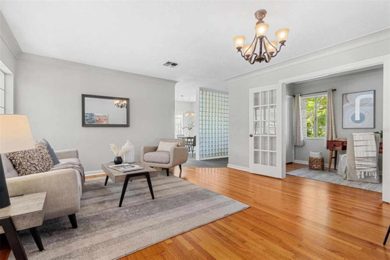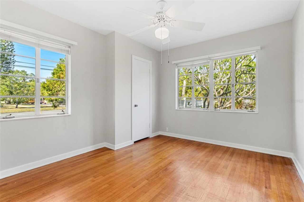 “Built like a fortress” and does not require flood insurance, yet only a 2.5 block walk from the waterfront! Enjoy peace of mind in this solid block home in Old SE which sustained no issues from previous storms! This is such a charming home on a really large lot (13, 900 sf) with the ability to add a garage with ADU above, if desired. There is already a large circular driveway with space for parking several cars. There are two storage sheds in the back yard as well which provide plenty of storage space for all your tools, mowers etc. The shed has a workbench & electricity. Within this 2, 544 sf home, there's plenty of room to spread out making it perfect for families, or anyone seeking a unique living experience in an exceptional neighborhood. There are 3 generously-sized bedrooms PLUS an OFFICE (or 4th bedroom) however, this property also allows for ADU construction, adding additional value and growth potential. There is also a versatile loft space in the 3rd bedroom that can serve as a place for play, sleep or storage. In addition to the spacious living room, there is a huge great room with a distinctive curved wall of windows on one side and a grand fireplace on the other. A cleverly designed hidden door along the mantle leads to the third bedroom, adding an element of surprise and intrigue! The inside space flows seamlessly to the outside backyard oasis, enclosed by a sturdy vinyl fence for added privacy. The south fence is actually 11 feet inside the property line, so the fenced backyard could easily be expanded even more if desired. The house has been freshly painted inside and out. The circular driveway enhances the curb appeal and provides convenient access and parking. Walk to Chattaways for a quick bite or the Old SE market is a few blocks away. Bike to Downtown St Petersburg, USF St Pete or Central District. I275, and numerous area hospitals are just minutes away. Opportunity knocks for your dream home today AND a reward of future equity potential tomorrow!