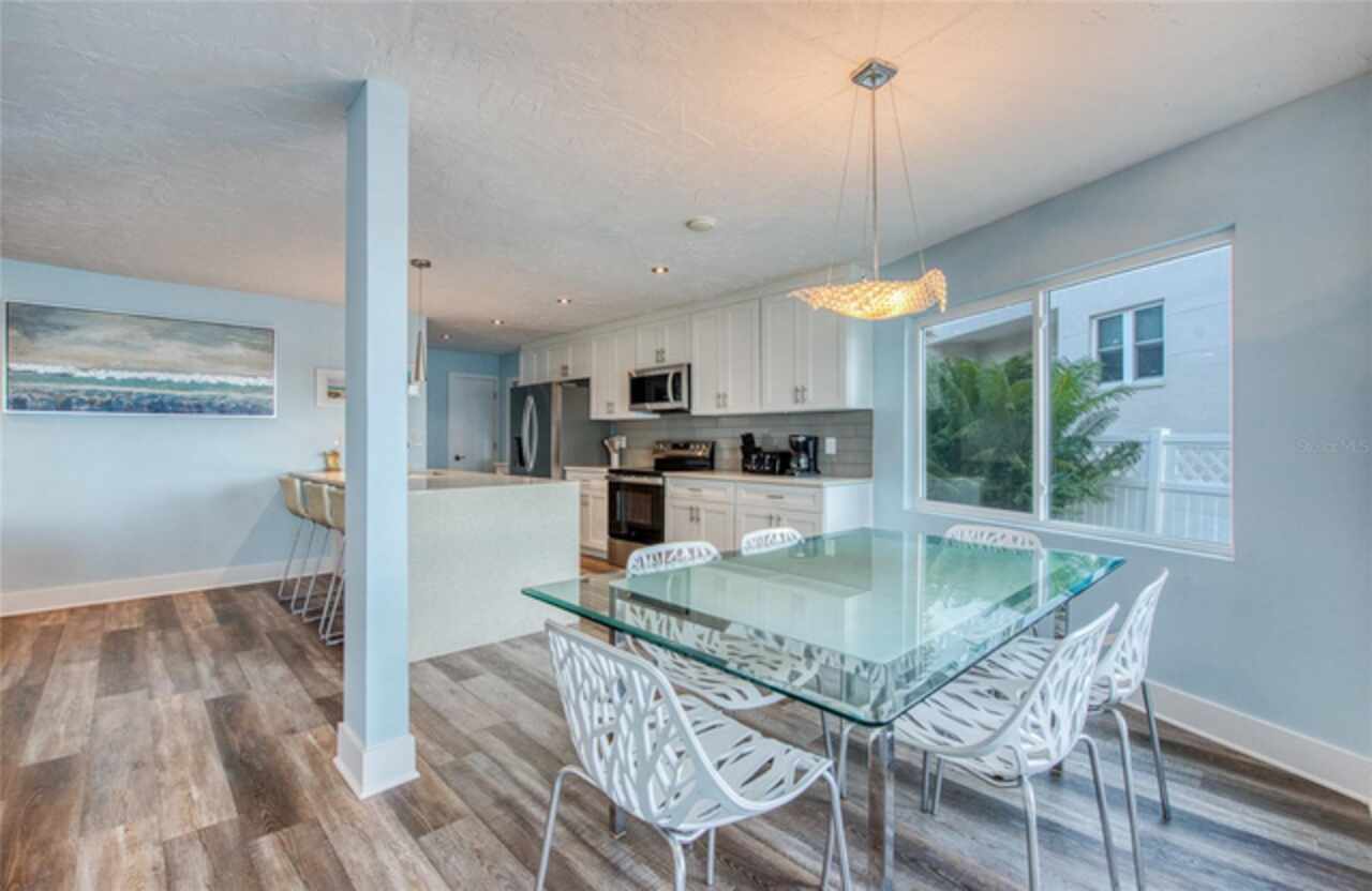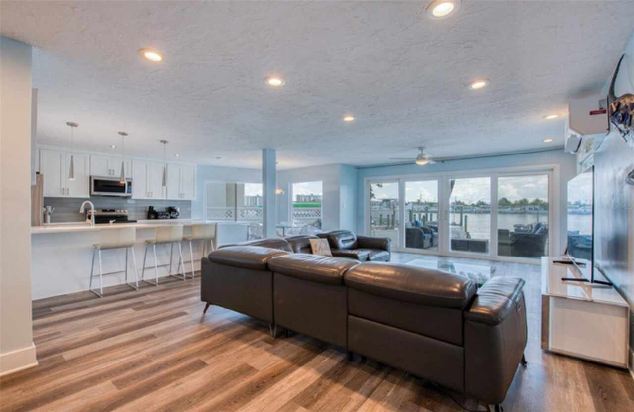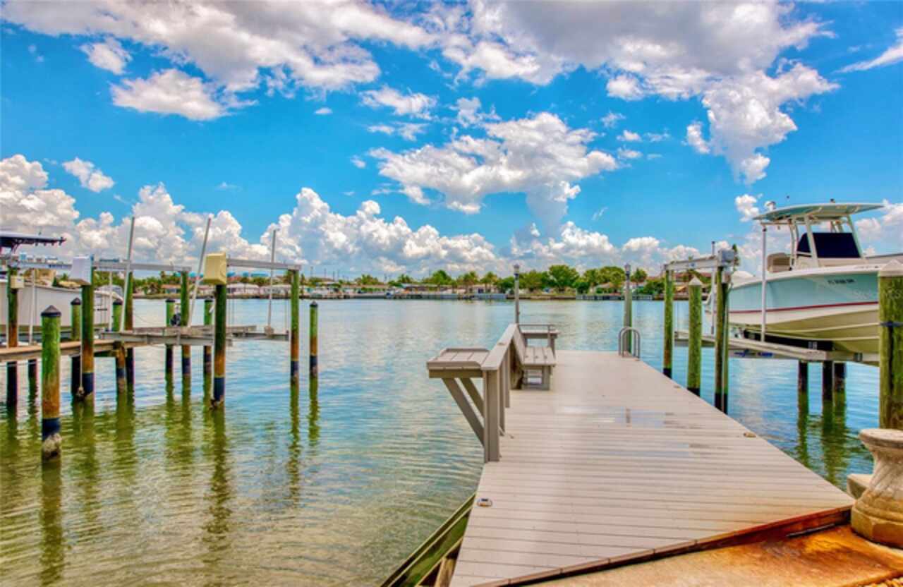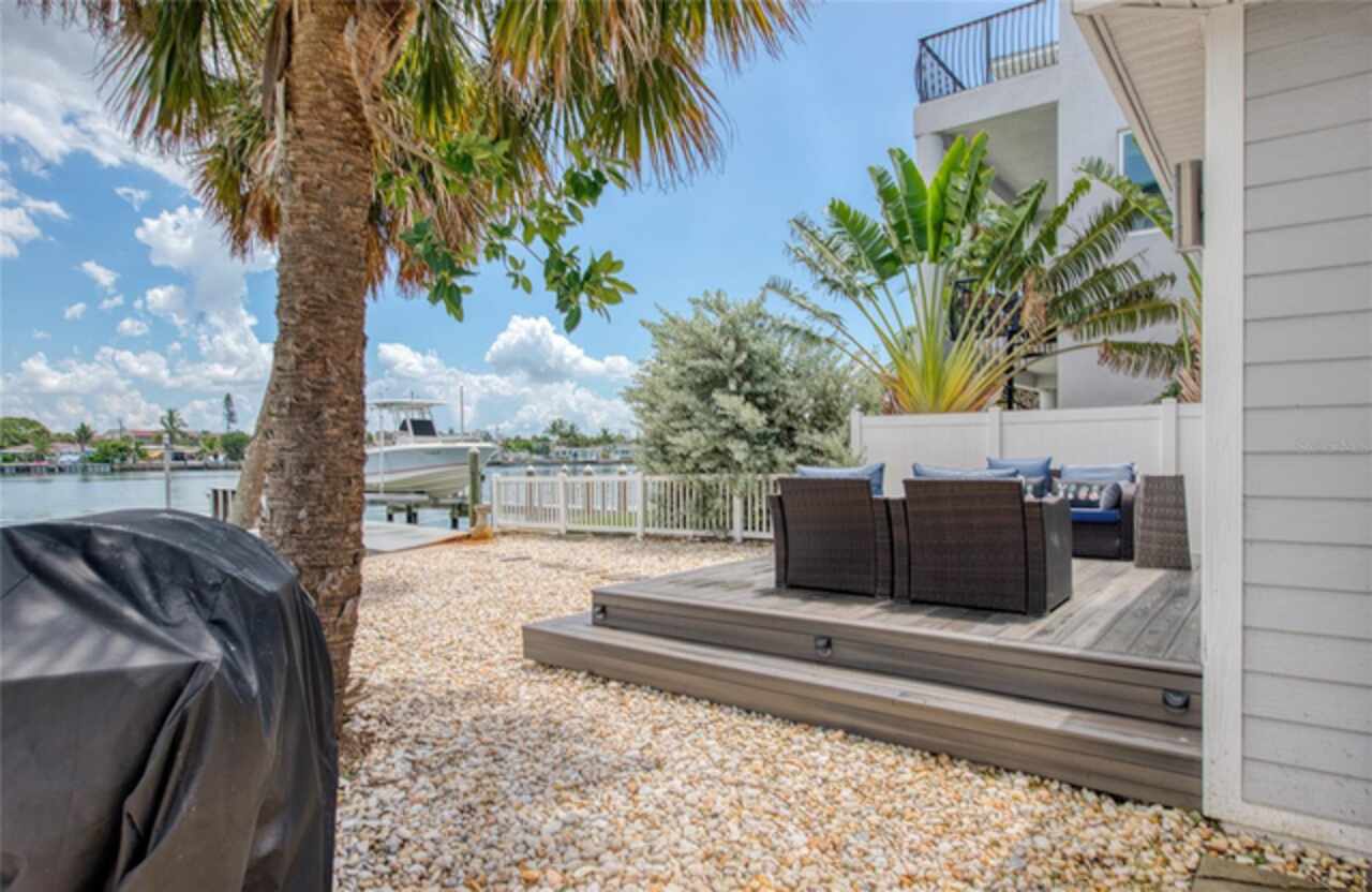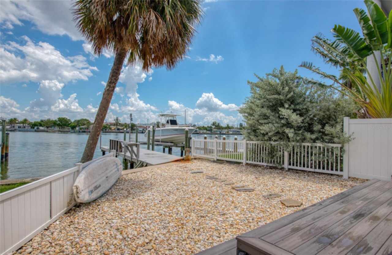 CALLING ALL BEACH LOVERS!!! Have you ever wanted to live so close to the beach that you can open the front door and walk under 5 minutes to place your toes in the sand?? Then, this home is for you! Located in the southern tip of Treasure Island, enjoy the backyard gorgeous intracoastal views along with a close proximity to Sunset Beach right on the Gulf of America, only steps away from the home! Get your piece of beach paradise in this two-story waterfront home with 3 bedrooms with 3 en-suite full bathrooms and an additional half bathroom on the main level. The downstairs level includes an open concept FULLY REMODELED KITCHEN with STAINLESS STEEL APPLIANCES, QUARTZ COUNTERTOPS, BREAKFAST BAR, and a WATERFRONT VIEW also shared with the living and dining room areas. Entertainment is easy and fun by opening the sliding glass doors in the living room which lead to the fenced outdoor living area with a wooden deck and PRIVATE DOCK for fishing. A guest bedroom with an en-suite bathroom is on the main level along with the half bathroom. Upstairs are two additional bedrooms with en-suite bathrooms. The primary bedroom has a perfect view of the intracoastal waters with it’s own private balcony, the perfect spot to soak in the sunrises, or enjoy a book in the seating nook by the windows. Across from the primary bedroom is the other upstairs bedroom which includes a walk-in closet for plenty of storage. Laundry day is made easy with an upstairs laundry room for convenience. Downstairs off of the kitchen is a bonus room for extra storage, exercise, or your own creative area. The AC UNIT AND MINI SPLITS WERE NEWLY INSTALLED in July 2025 and the roof is approximately 7 years old. Use this home as a primary residence, vacation spot, or investment with both short and long term rentals. All furnishings and decor can be included, so it’s turn-key for the new owner all with a convenient location near dining, entertainment, St. Pete Beach, Clearwater, John’s Pass, Blind Pass, and other Pinellas County beaches.