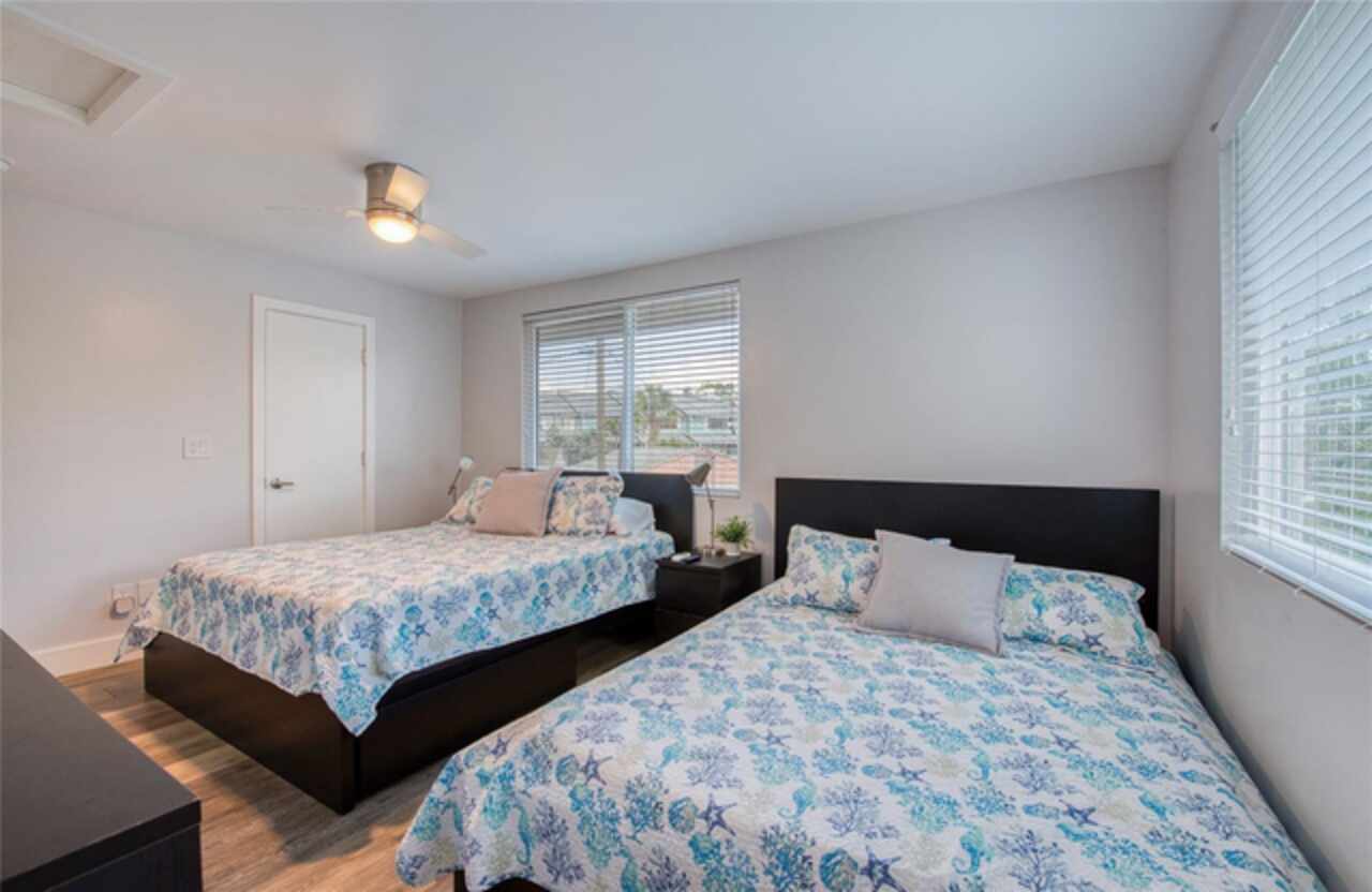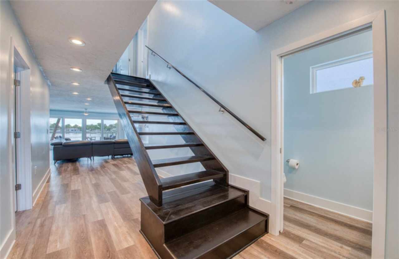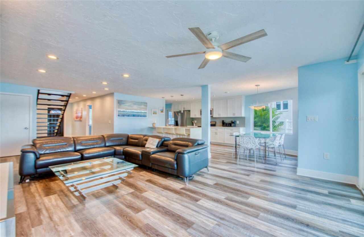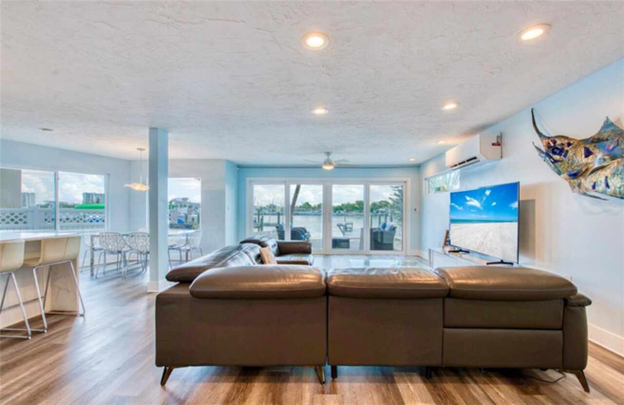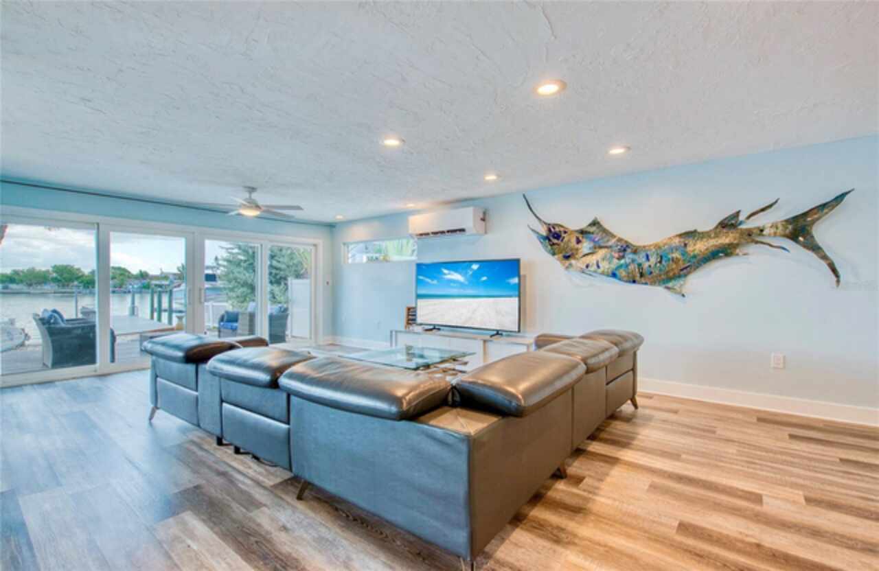 CALLING ALL BEACH LOVERS!!! Have you ever wanted to live so close to the beach that you can open the front door and walk under 5 minutes to place your toes in the sand?? Then, this home is for you! Located in the southern tip of Treasure Island, enjoy the backyard gorgeous intracoastal views along with a close proximity to Sunset Beach right on the Gulf of America, only steps away from the home! Get your piece of beach paradise in this two-story waterfront home with 3 bedrooms with 3 en-suite full bathrooms and an additional half bathroom on the main level. The downstairs level includes an open concept FULLY REMODELED KITCHEN with STAINLESS STEEL APPLIANCES, QUARTZ COUNTERTOPS, BREAKFAST BAR, and a WATERFRONT VIEW also shared with the living and dining room areas. Entertainment is easy and fun by opening the sliding glass doors in the living room which lead to the fenced outdoor living area with a wooden deck and PRIVATE DOCK for fishing. A guest bedroom with an en-suite bathroom is on the main level along with the half bathroom. Upstairs are two additional bedrooms with en-suite bathrooms. The primary bedroom has a perfect view of the intracoastal waters with it’s own private balcony, the perfect spot to soak in the sunrises, or enjoy a book in the seating nook by the windows. Across from the primary bedroom is the other upstairs bedroom which includes a walk-in closet for plenty of storage. Laundry day is made easy with an upstairs laundry room for convenience. Downstairs off of the kitchen is a bonus room for extra storage, exercise, or your own creative area. The AC UNIT AND MINI SPLITS WERE NEWLY INSTALLED in July 2025 and the roof is approximately 7 years old. Use this home as a primary residence, vacation spot, or investment with both short and long term rentals. All furnishings and decor can be included, so it’s turn-key for the new owner all with a convenient location near dining, entertainment, St. Pete Beach, Clearwater, John’s Pass, Blind Pass, and other Pinellas County beaches.