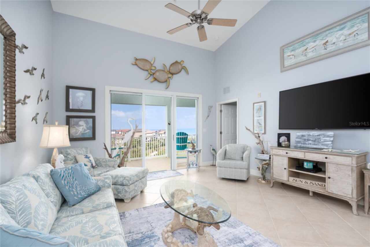 Spectacular Ocean views from this Penthouse condo in the lovely Cinnamon Beach community with short term rental opportunity! Boasting vaulted ceilings that amplify the sense of space and natural light, this 3-bedroom, 2-bathroom retreat offers a harmonious blend of comfort and elegance. The private balcony provides sweeping views of the meticulously maintained golf course, with the serene ocean shimmering in sight—perfect for enjoying your morning coffee and ocean breezes. Inside, the open-concept layout seamlessly connects the living, dining, and kitchen areas, creating an inviting space for relaxation and entertainment. The primary suite showcases a picturesque window and private bathroom with soaking tub and separate shower. On the other end of the condo, you will find the 2 other bedrooms and additional bathroom for guests. Not only are you steps for the beach, just a short stroll and you will be enjoying the Cinnamon Beach amenities including: the show-stopping oceanfront pool, spa, lakeside family-friendly pool with a kid’s splash pad, Clubhouse with game room & lounge, fitness room, business room, seasonal grille, and more! Whether you're seeking a tranquil getaway, investment property (short term rentals allowed) or luxurious full-time residence, this condo promises an unparalleled lifestyle amidst Florida's breathtaking coastal scenery.
