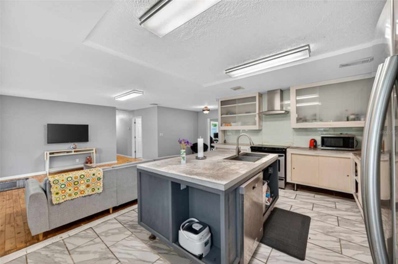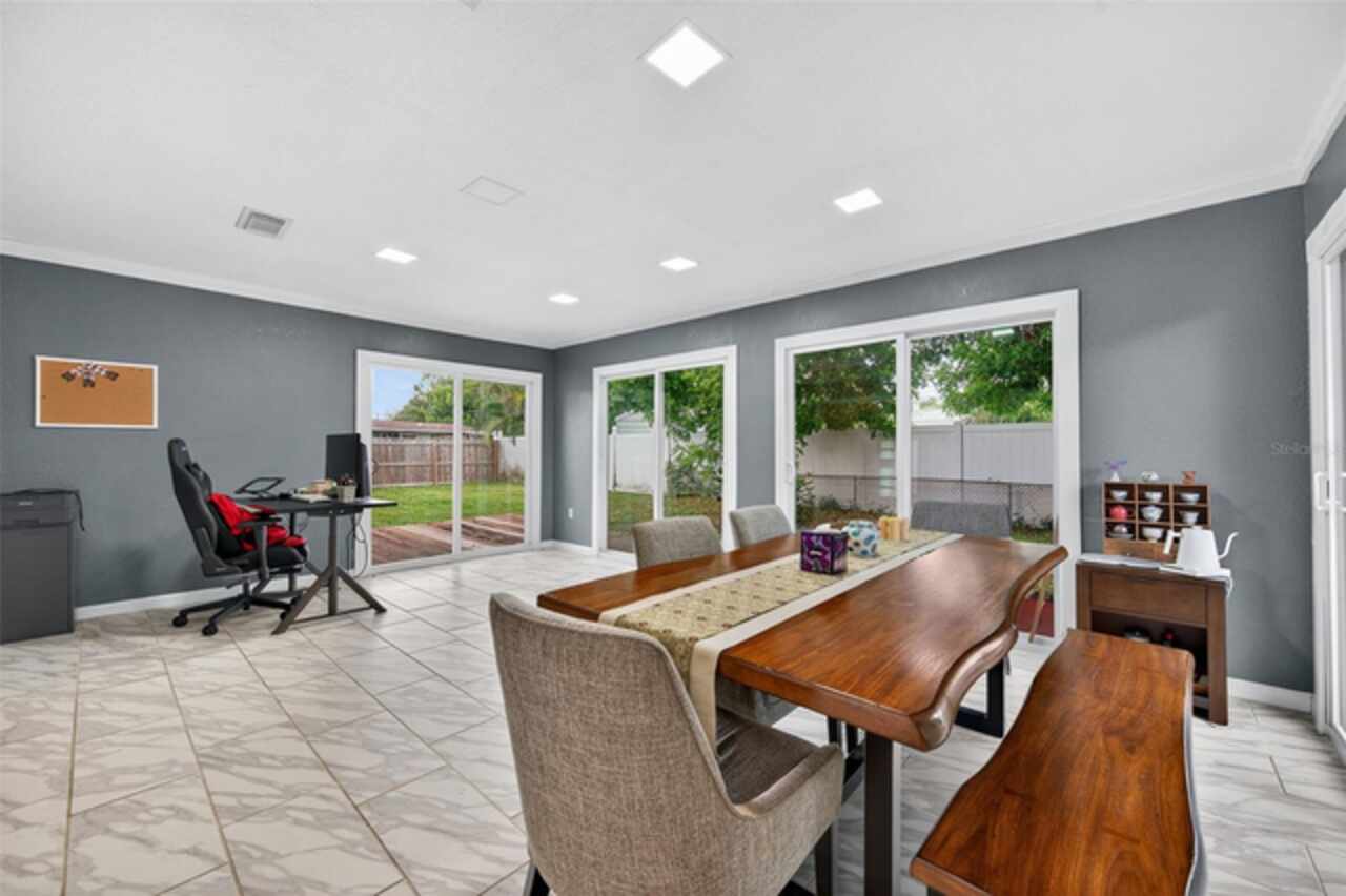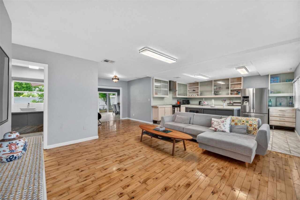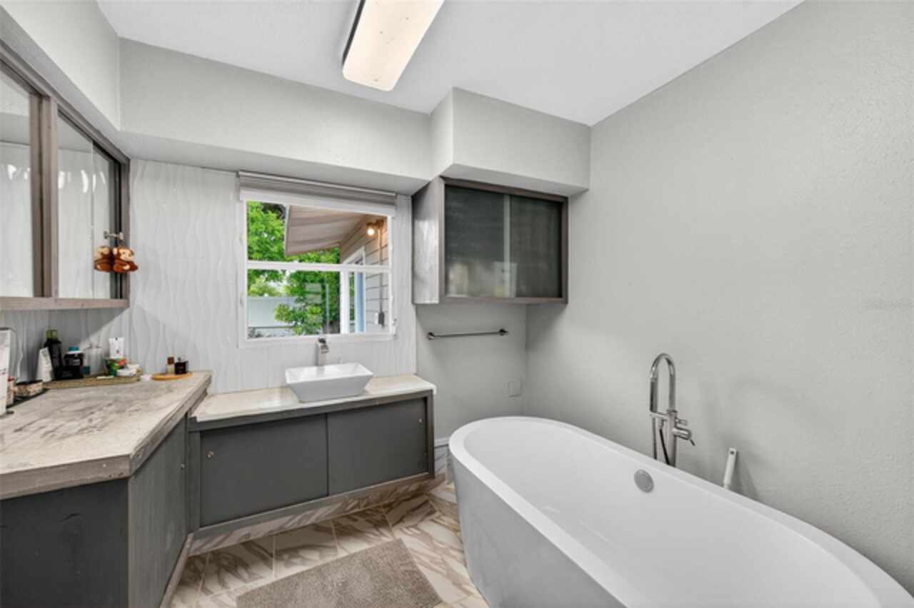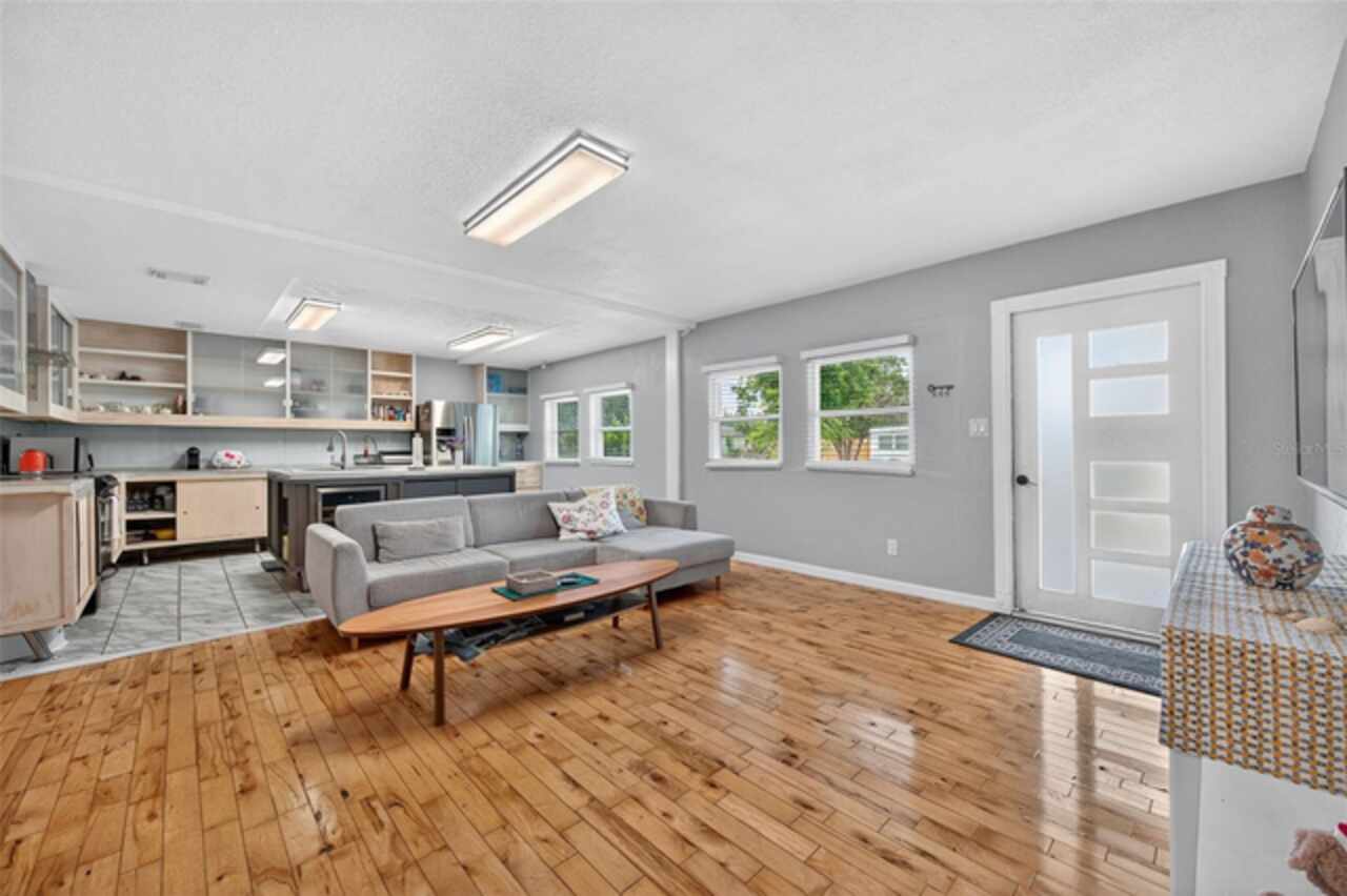 Perfectly positioned in the peaceful Edgemoor Estates neighborhood, this beautiful St. Pete ranch blends charm, comfort, and convenience. A half-circle driveway offers plenty of parking and leads you inside to a unique open floor plan with warm wood and tile flooring throughout. The bright kitchen is ideal for entertaining featuring stainless steel appliances, a center island for extra prep space, concrete countertops, and a wine fridge. Just off the main living area, a sun-filled Florida room with multiple sliding glass doors offers the perfect spot to relax or host gatherings. The home offers three spacious bedrooms, including a private primary suite with a large walk-in shower. The second bath features a soaking tub for the ultimate retreat. Step outside to a fully fenced backyard with a deck for al fresco dining and plenty of room to enjoy Florida’s year-round sunshine. Additional highlights include an inside laundry room and a one-car garage. On top of all of the wonderful features this home offers... it didn't experience any water intrusion during last year's storms. Just minutes from downtown St. Pete, you’ll have easy access to waterfront parks, golf courses, shopping, dining, breweries, and events. Quick drives take you to Tropicana Field, two major airports, and beaches less than 15 miles away. This move-in ready home is the perfect blend of city convenience and neighborhood tranquility. Don’t miss your chance to make it yours!