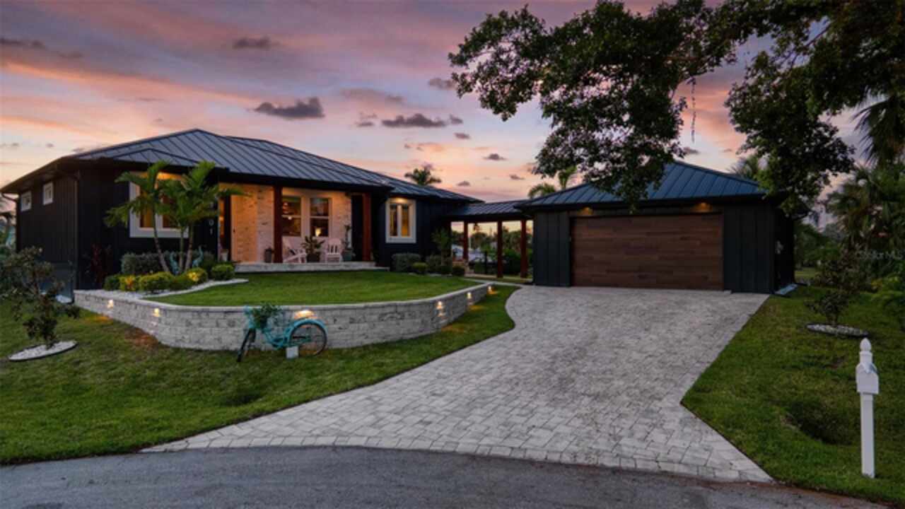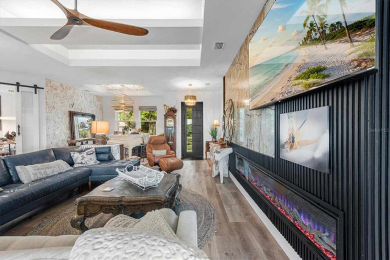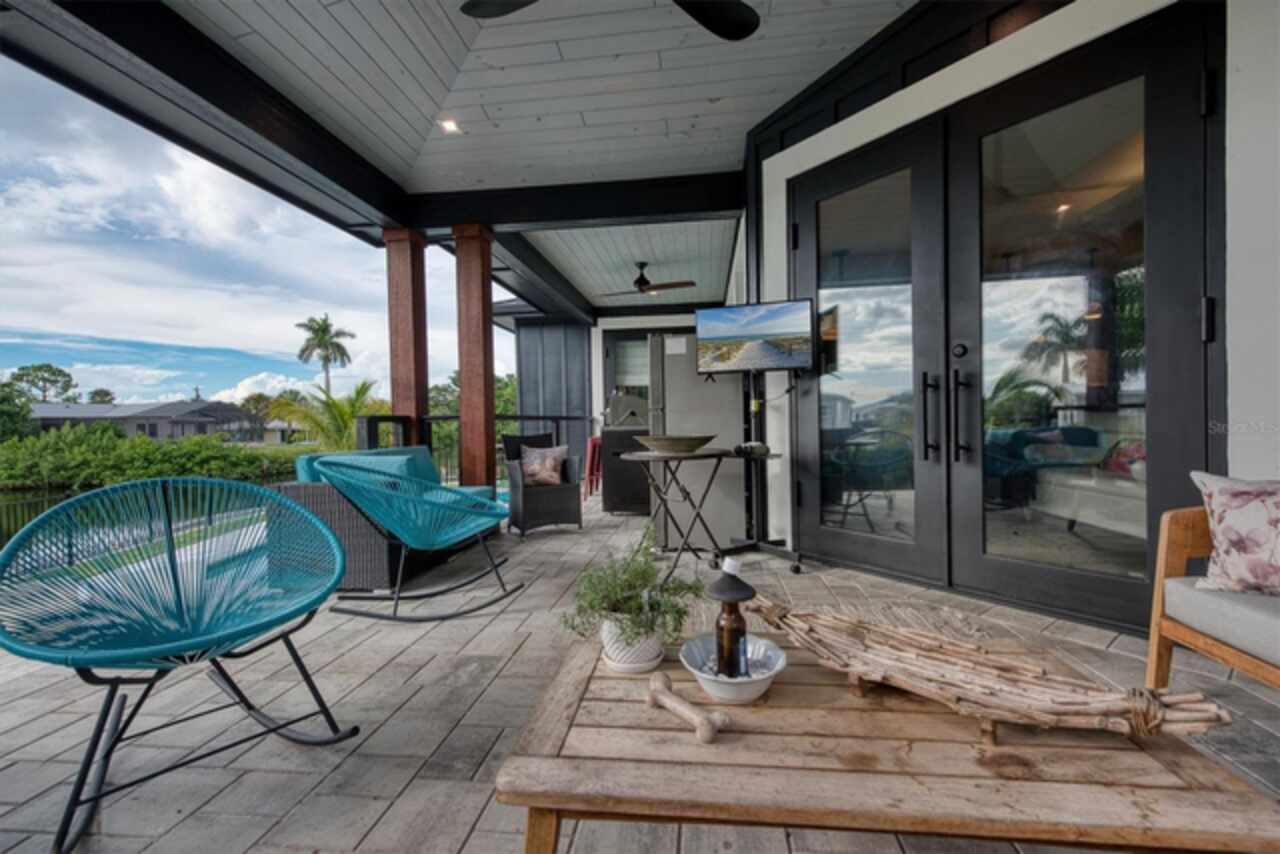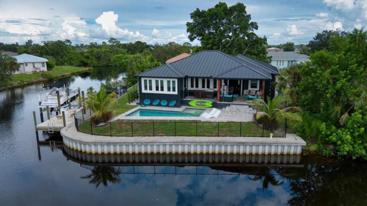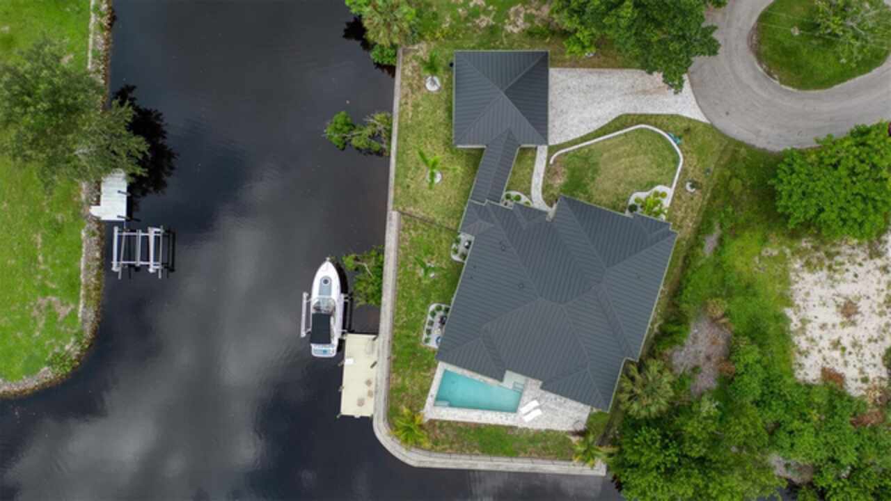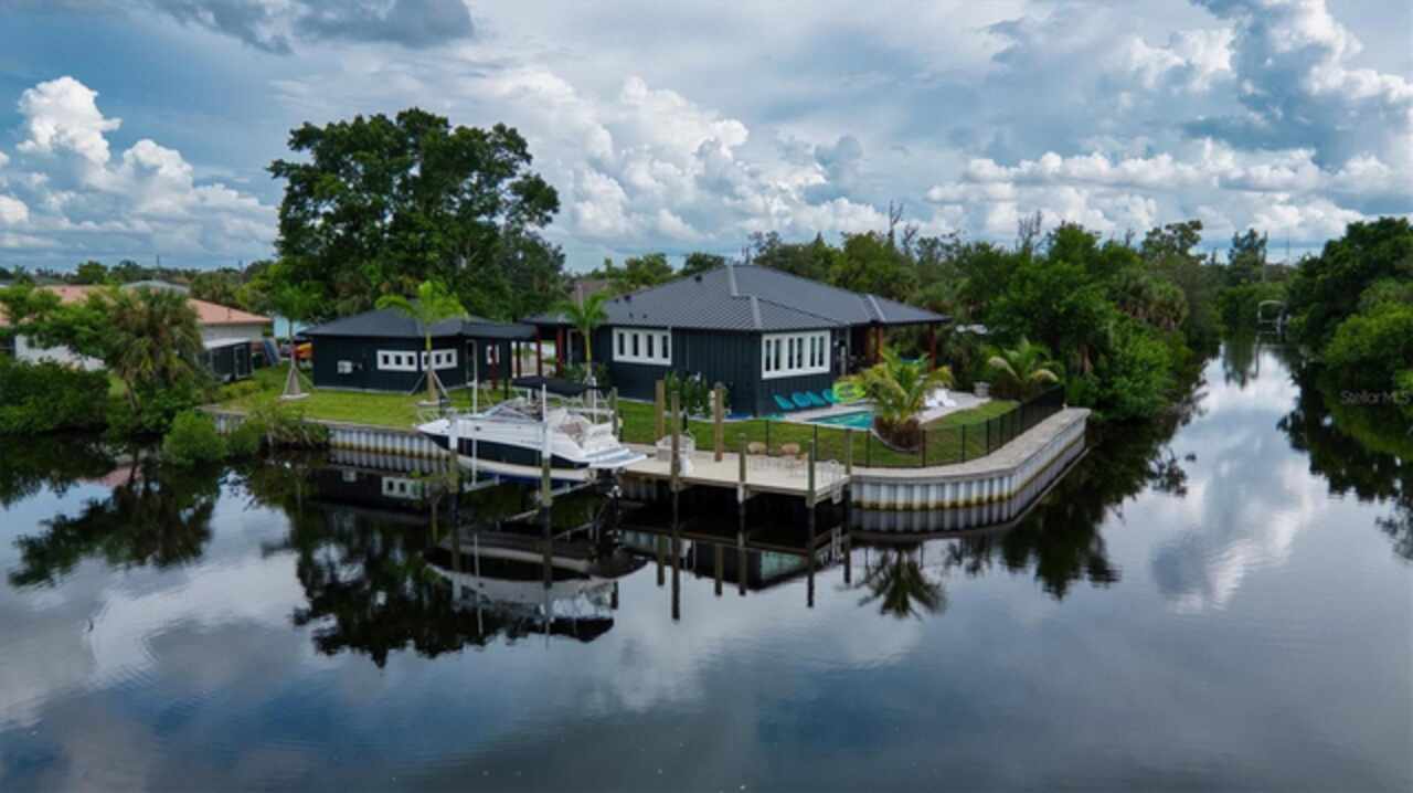 A One-of-a-Kind Masterpiece on the Water! Welcome to 3001 Banyan Way, Punta Gorda, completed in 2024, where architectural artistry meets uncompromising luxury. Set on a prime waterfront lot with intersecting canal views, 211 feet of seawall, and remarkable sunsets, this bespoke residence was crafted with every imaginable upgrade to create a true designer dream home. Simply stunning! From the moment you arrive, the curb appeal is undeniable— ultra modern and powerful exterior colors inspire the senses. A visual delight are the many exterior accents including Hardi Trim Board and Batten cement siding, an expansive lighted retaining wall, offset garage and connecting breezeway with smart wood beam pillars. Professional landscaping with designer lighting, an interlocking three-piece paver driveway and an iron fence with three locking gates frame the back of the property all the way to the seawall. Step onto the Chicago replica brick front porch, beneath a tongue-and-groove ceiling with recessed lighting, and through an impressive iron entry door. Inside, every room tells a story of craftsmanship and indulgence. The living room stuns with Venetian plaster tray ceilings, dramatic beams, a 100-inch linear fireplace, and a full quartzite feature wall. The gourmet kitchen is a showpiece: Dolomite Blue quartzite countertops throughout, GE Café matte white appliances including a six-burner propane range, two under-counter refrigerators, and full-height subway tile with a quartzite shelf. A walk-in pantry and adjoining laundry doubles as a bar and prep space, featuring cobalt blue GE smart appliances, built-in storage, a liquor drawer, and a chandelier-lit window seat. The master suite is a sanctuary with Venetian plaster finishes, custom ceiling design, and a spa-like bath offering a freestanding tub under chandelier light, a walk-through shower with body jets, double marble sinks, and artistic feature walls. Additional rooms showcase true individuality, including a music room adorned with gold-leaf stucco, a bespoke feature wall, and a dramatic chandelier. Outdoor living reaches resort level. A saltwater, heated PebbleTec pool with LED lighting is surrounded by an expansive paved entertainment deck. The covered rear porch features tongue-and-groove ceilings, an outdoor kitchen with grill and sink, recessed lighting, ceiling fans, and dual French iron doors that invite seamless indoor/outdoor living. At the water’s edge, the composite dock is built for the serious boater, with shore power, a 12, 000-lb lift, and oversized pilings ready for a roof structure. Enjoy a 15 minute boat ride along the Venice Waterway to Alligator Creek, then to Charlotte Harbor and the Gulf beyond. Every detail is deliberate: spray foam insulation throughout, tankless water heater, hurricane-impact doors and windows, remote custom blinds, lighting integrated into the eaves and landscaping, the highest grade luxury vinyl plank and soap stone tile flooring, and a full-home generator with hook-up. The oversized 24’x24’ insulated garage is a marvel in itself, with epoxy floors, mini-split A/C, EV plug, storage system, and large windows framing canal views. This residence is more than a home—it’s a statement of taste, design, and lifestyle. Perfectly blending Old World materials with cutting-edge systems, 3001 Banyan Way is truly one of a kind Gem. Minutes from all that Punta Gorda has to offer, Fisherman’s Village, Harbor Walk, the Punta Gorda Yacht Club, and so much more!