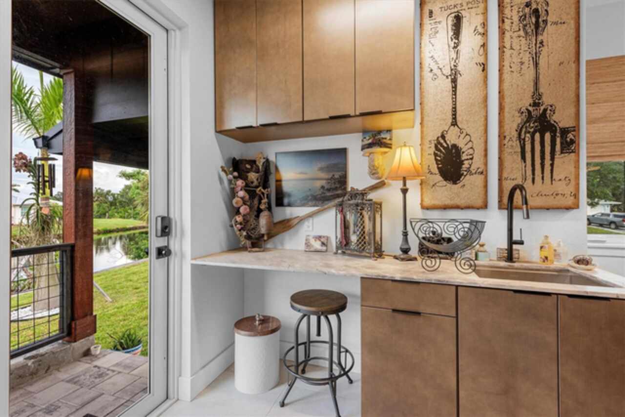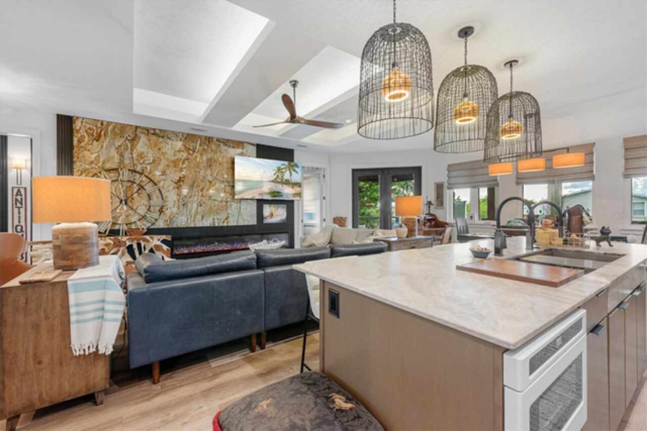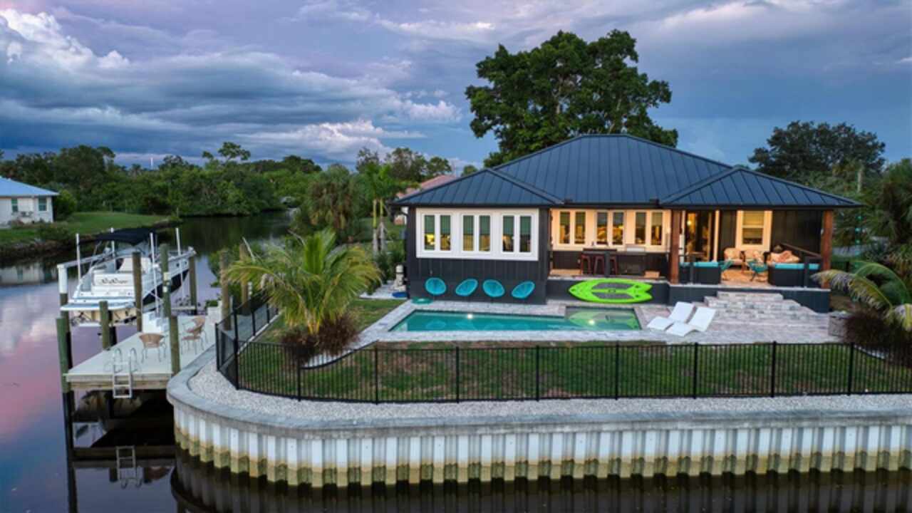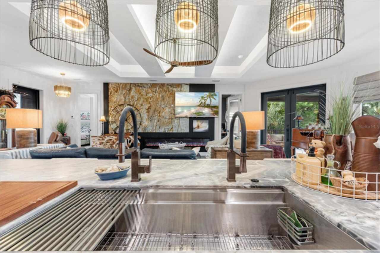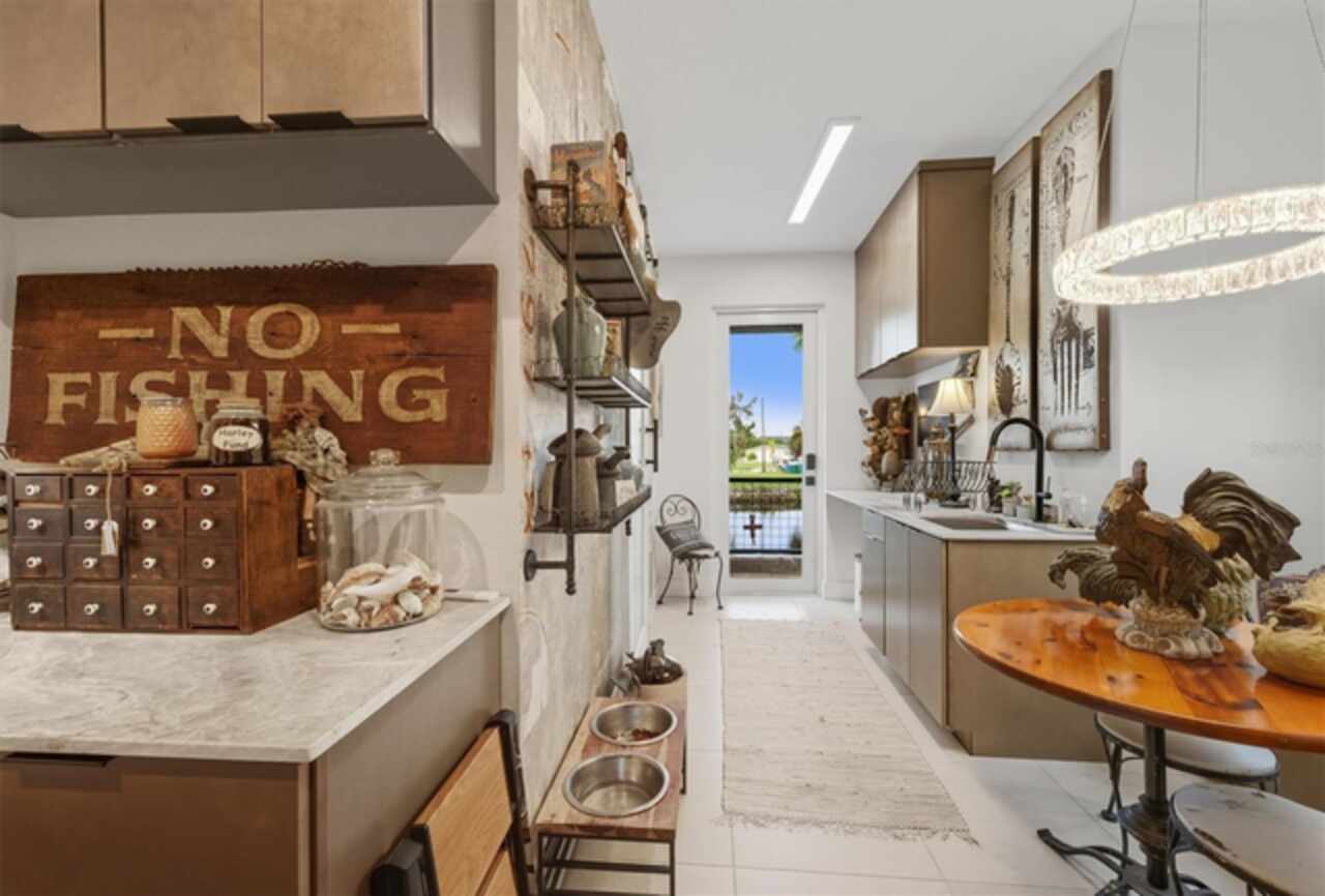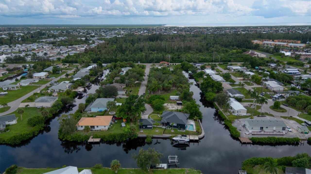 A One-of-a-Kind Masterpiece on the Water! Welcome to 3001 Banyan Way, Punta Gorda, completed in 2024, where architectural artistry meets uncompromising luxury. Set on a prime waterfront lot with intersecting canal views, 211 feet of seawall, and remarkable sunsets, this bespoke residence was crafted with every imaginable upgrade to create a true designer dream home. Simply stunning! From the moment you arrive, the curb appeal is undeniable— ultra modern and powerful exterior colors inspire the senses. A visual delight are the many exterior accents including Hardi Trim Board and Batten cement siding, an expansive lighted retaining wall, offset garage and connecting breezeway with smart wood beam pillars. Professional landscaping with designer lighting, an interlocking three-piece paver driveway and an iron fence with three locking gates frame the back of the property all the way to the seawall. Step onto the Chicago replica brick front porch, beneath a tongue-and-groove ceiling with recessed lighting, and through an impressive iron entry door. Inside, every room tells a story of craftsmanship and indulgence. The living room stuns with Venetian plaster tray ceilings, dramatic beams, a 100-inch linear fireplace, and a full quartzite feature wall. The gourmet kitchen is a showpiece: Dolomite Blue quartzite countertops throughout, GE Café matte white appliances including a six-burner propane range, two under-counter refrigerators, and full-height subway tile with a quartzite shelf. A walk-in pantry and adjoining laundry doubles as a bar and prep space, featuring cobalt blue GE smart appliances, built-in storage, a liquor drawer, and a chandelier-lit window seat. The master suite is a sanctuary with Venetian plaster finishes, custom ceiling design, and a spa-like bath offering a freestanding tub under chandelier light, a walk-through shower with body jets, double marble sinks, and artistic feature walls. Additional rooms showcase true individuality, including a music room adorned with gold-leaf stucco, a bespoke feature wall, and a dramatic chandelier. Outdoor living reaches resort level. A saltwater, heated PebbleTec pool with LED lighting is surrounded by an expansive paved entertainment deck. The covered rear porch features tongue-and-groove ceilings, an outdoor kitchen with grill and sink, recessed lighting, ceiling fans, and dual French iron doors that invite seamless indoor/outdoor living. At the water’s edge, the composite dock is built for the serious boater, with shore power, a 12, 000-lb lift, and oversized pilings ready for a roof structure. Enjoy a 15 minute boat ride along the Venice Waterway to Alligator Creek, then to Charlotte Harbor and the Gulf beyond. Every detail is deliberate: spray foam insulation throughout, tankless water heater, hurricane-impact doors and windows, remote custom blinds, lighting integrated into the eaves and landscaping, the highest grade luxury vinyl plank and soap stone tile flooring, and a full-home generator with hook-up. The oversized 24’x24’ insulated garage is a marvel in itself, with epoxy floors, mini-split A/C, EV plug, storage system, and large windows framing canal views. This residence is more than a home—it’s a statement of taste, design, and lifestyle. Perfectly blending Old World materials with cutting-edge systems, 3001 Banyan Way is truly one of a kind Gem. Minutes from all that Punta Gorda has to offer, Fisherman’s Village, Harbor Walk, the Punta Gorda Yacht Club, and so much more!