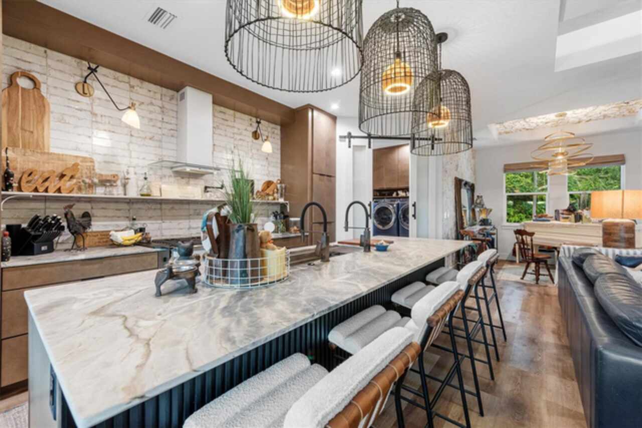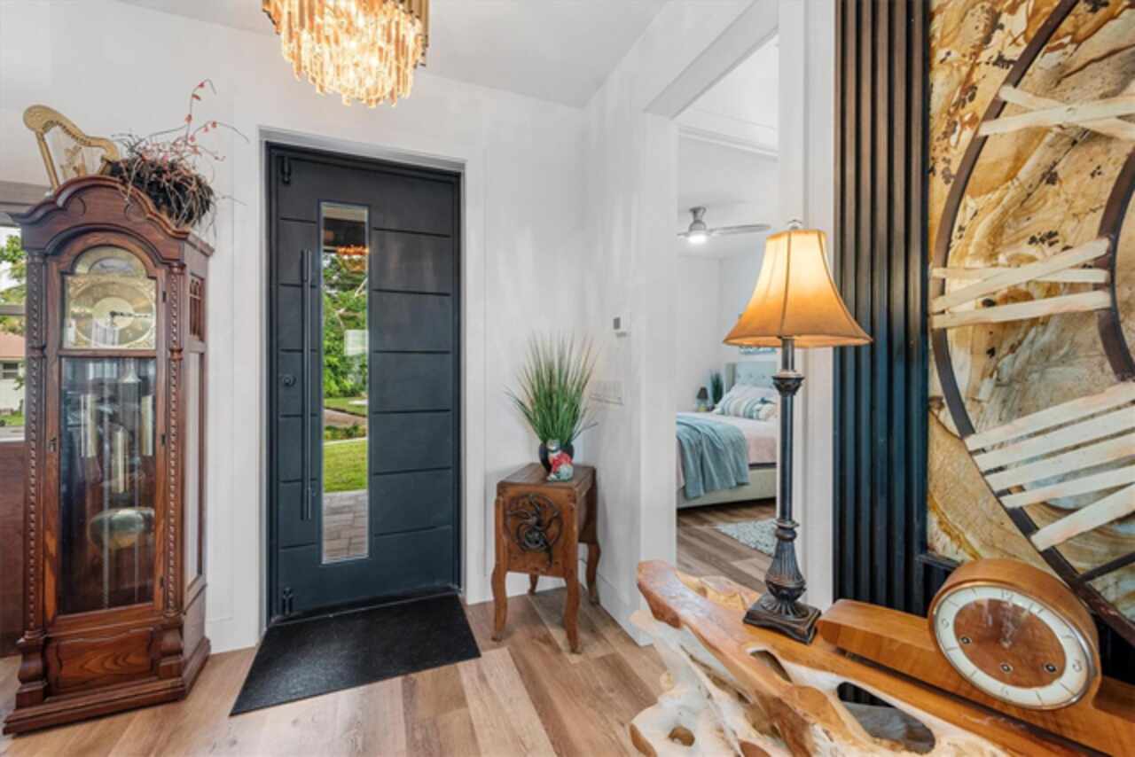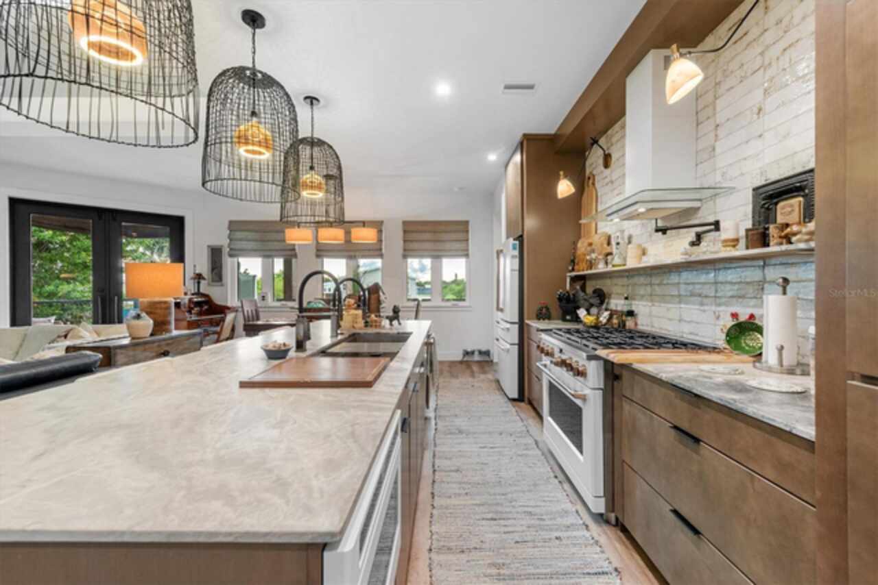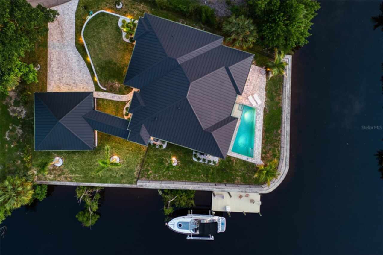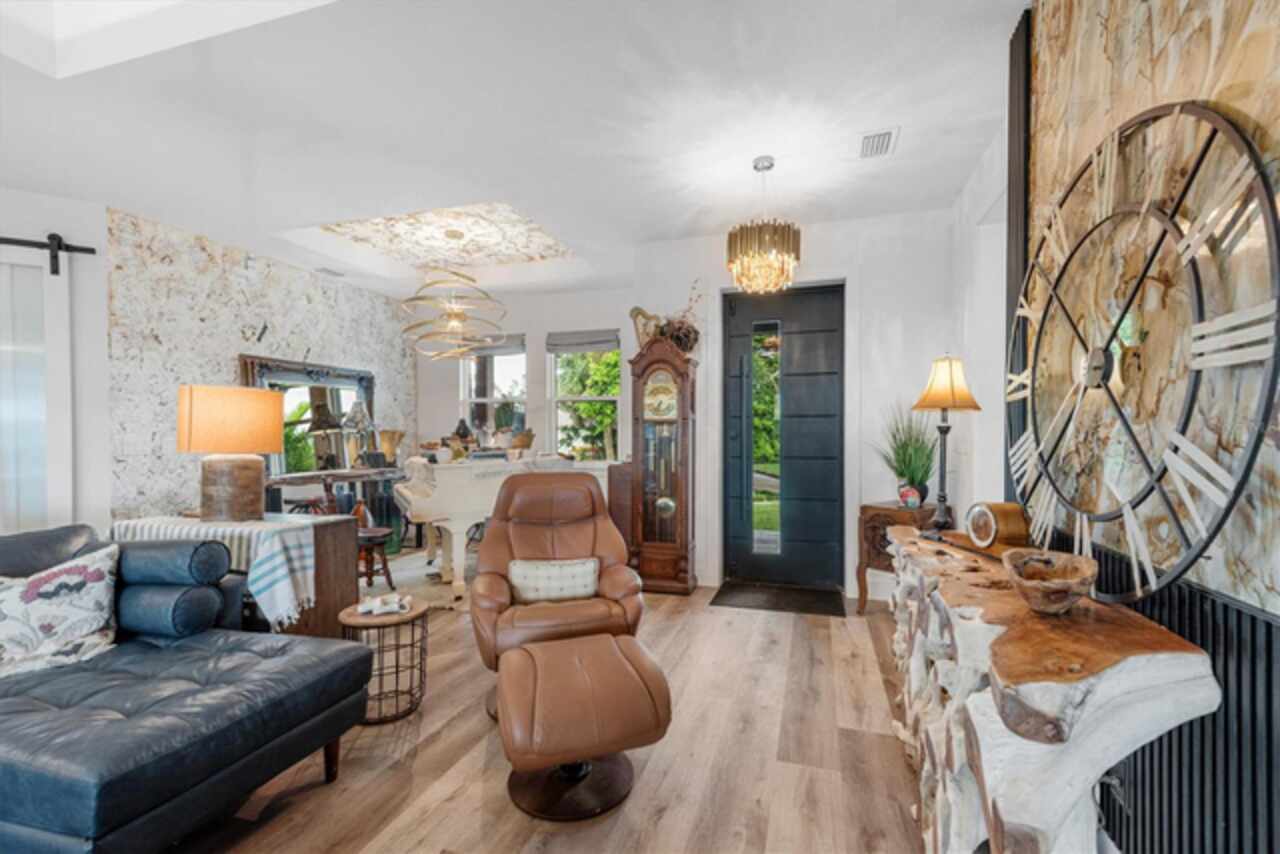 A One-of-a-Kind Masterpiece on the Water! Welcome to 3001 Banyan Way, Punta Gorda, completed in 2024, where architectural artistry meets uncompromising luxury. Set on a prime waterfront lot with intersecting canal views, 211 feet of seawall, and remarkable sunsets, this bespoke residence was crafted with every imaginable upgrade to create a true designer dream home. Simply stunning! From the moment you arrive, the curb appeal is undeniable— ultra modern and powerful exterior colors inspire the senses. A visual delight are the many exterior accents including Hardi Trim Board and Batten cement siding, an expansive lighted retaining wall, offset garage and connecting breezeway with smart wood beam pillars. Professional landscaping with designer lighting, an interlocking three-piece paver driveway and an iron fence with three locking gates frame the back of the property all the way to the seawall. Step onto the Chicago replica brick front porch, beneath a tongue-and-groove ceiling with recessed lighting, and through an impressive iron entry door. Inside, every room tells a story of craftsmanship and indulgence. The living room stuns with Venetian plaster tray ceilings, dramatic beams, a 100-inch linear fireplace, and a full quartzite feature wall. The gourmet kitchen is a showpiece: Dolomite Blue quartzite countertops throughout, GE Café matte white appliances including a six-burner propane range, two under-counter refrigerators, and full-height subway tile with a quartzite shelf. A walk-in pantry and adjoining laundry doubles as a bar and prep space, featuring cobalt blue GE smart appliances, built-in storage, a liquor drawer, and a chandelier-lit window seat. The master suite is a sanctuary with Venetian plaster finishes, custom ceiling design, and a spa-like bath offering a freestanding tub under chandelier light, a walk-through shower with body jets, double marble sinks, and artistic feature walls. Additional rooms showcase true individuality, including a music room adorned with gold-leaf stucco, a bespoke feature wall, and a dramatic chandelier. Outdoor living reaches resort level. A saltwater, heated PebbleTec pool with LED lighting is surrounded by an expansive paved entertainment deck. The covered rear porch features tongue-and-groove ceilings, an outdoor kitchen with grill and sink, recessed lighting, ceiling fans, and dual French iron doors that invite seamless indoor/outdoor living. At the water’s edge, the composite dock is built for the serious boater, with shore power, a 12, 000-lb lift, and oversized pilings ready for a roof structure. Enjoy a 15 minute boat ride along the Venice Waterway to Alligator Creek, then to Charlotte Harbor and the Gulf beyond. Every detail is deliberate: spray foam insulation throughout, tankless water heater, hurricane-impact doors and windows, remote custom blinds, lighting integrated into the eaves and landscaping, the highest grade luxury vinyl plank and soap stone tile flooring, and a full-home generator with hook-up. The oversized 24’x24’ insulated garage is a marvel in itself, with epoxy floors, mini-split A/C, EV plug, storage system, and large windows framing canal views. This residence is more than a home—it’s a statement of taste, design, and lifestyle. Perfectly blending Old World materials with cutting-edge systems, 3001 Banyan Way is truly one of a kind Gem. Minutes from all that Punta Gorda has to offer, Fisherman’s Village, Harbor Walk, the Punta Gorda Yacht Club, and so much more!
