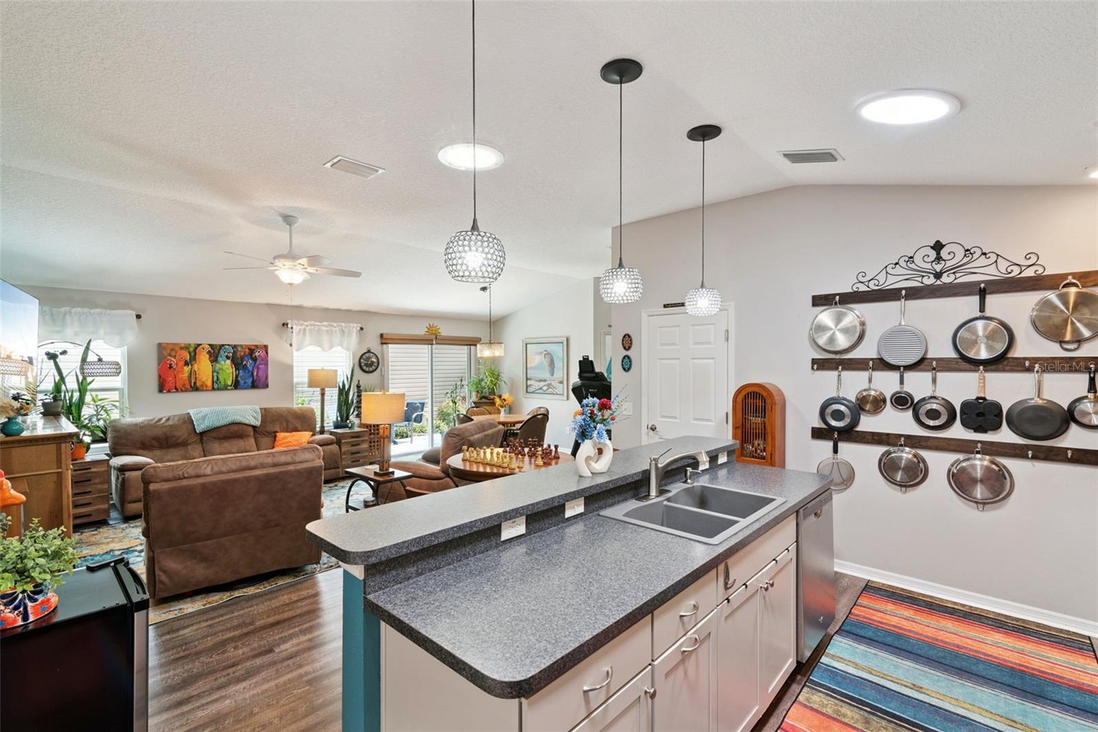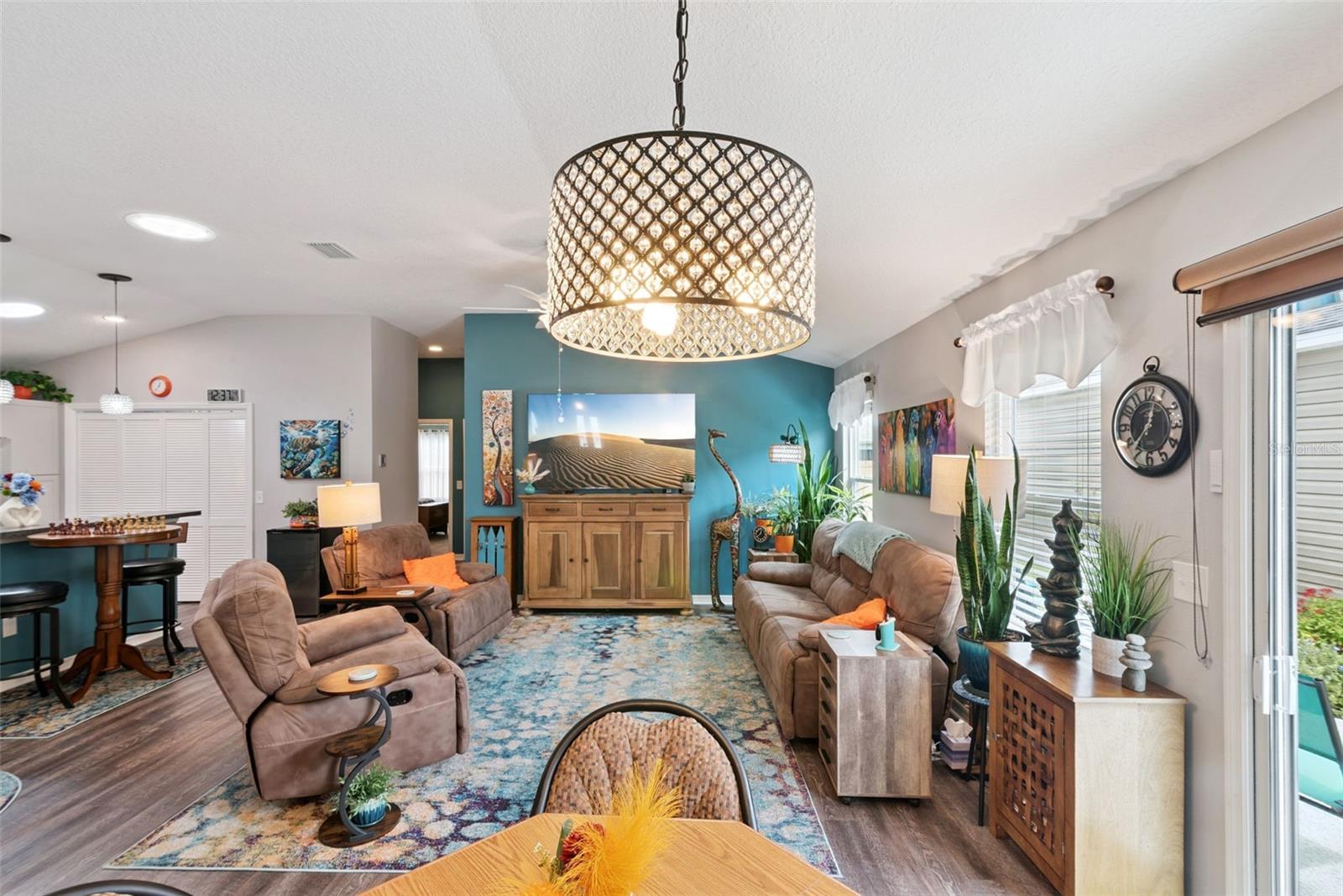 Cathedral Ceiling(s), Eat-in Kitchen, L Dining, Living Room/Dining Room Combo, Open Floorplan, Primary Bedroom Main Floor, Walk-In Closet(s)