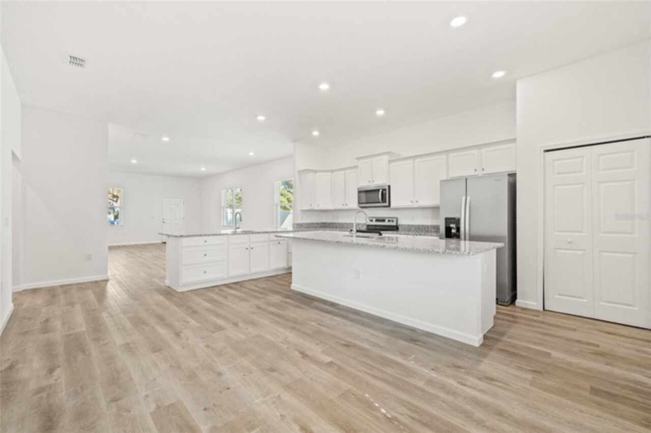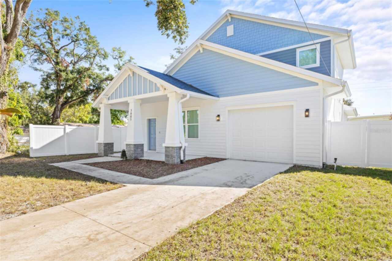 NOT IN A FLOOD ZONE! This contemporary home offers a perfect blend of modern design, exquisite details, and impeccable finishes, both inside and out. Spanning over 2, 000 square feet of thoughtfully crafted living space, this 3-bedroom, 3.5-bathroom residence is designed to impress. From the moment you step inside, you’ll be welcomed by an open-concept layout bathed in natural light. Luxury vinyl flooring and premium finishes create a seamless atmosphere throughout. The heart of the home is an entertainer’s dream, featuring a spacious living room that flows effortlessly into a large dining area and a gourmet kitchen. Custom-designed with the chef in mind, the kitchen boasts luxe granite countertops, custom cabinetry, and state-of-the-art stainless-steel appliances. The entertaining continues outdoors with a generously sized patio, perfect for enjoying the Florida sunshine or dining al fresco while overlooking the beautifully landscaped backyard. The private spaces of the home are equally impressive. On the main floor, you’ll find a well-appointed bedroom suite complete with a walk-in closet and a luxurious ensuite bath, ideal for in-laws or visiting guests. Upstairs, two additional bedrooms each feature their own ensuite bathrooms, offering both comfort and privacy. Located in the highly sought-after Ybor neighborhood, this home is just five minutes from Downtown Tampa, offering easy access to the city’s best shopping, dining, and entertainment.