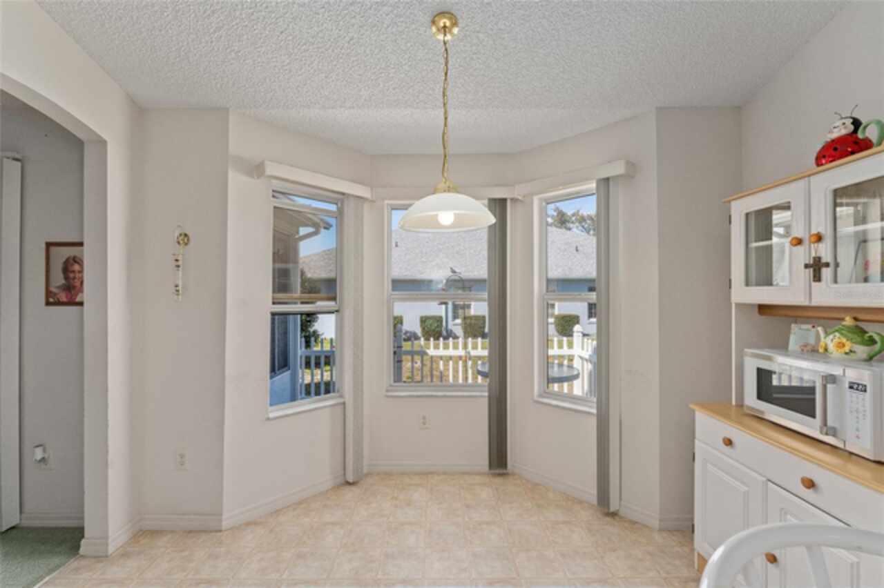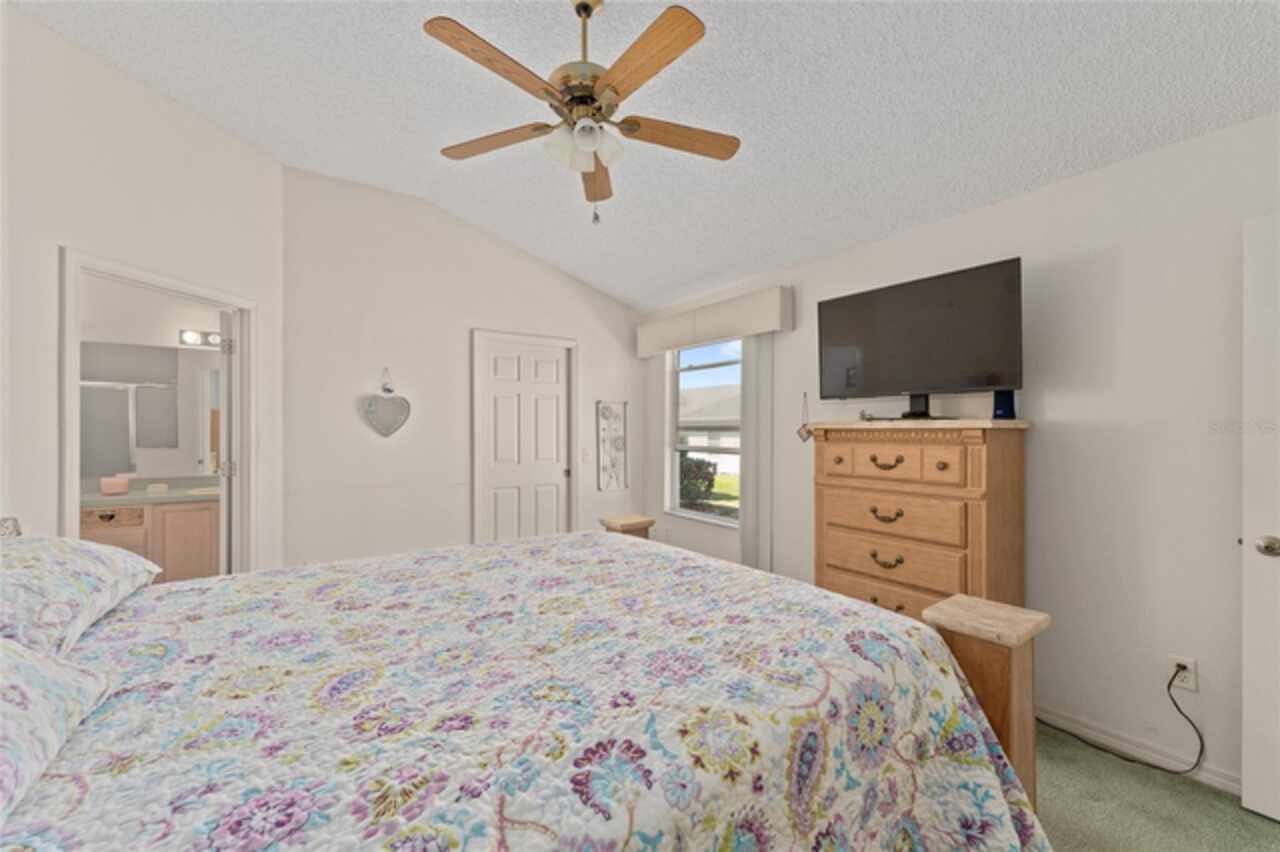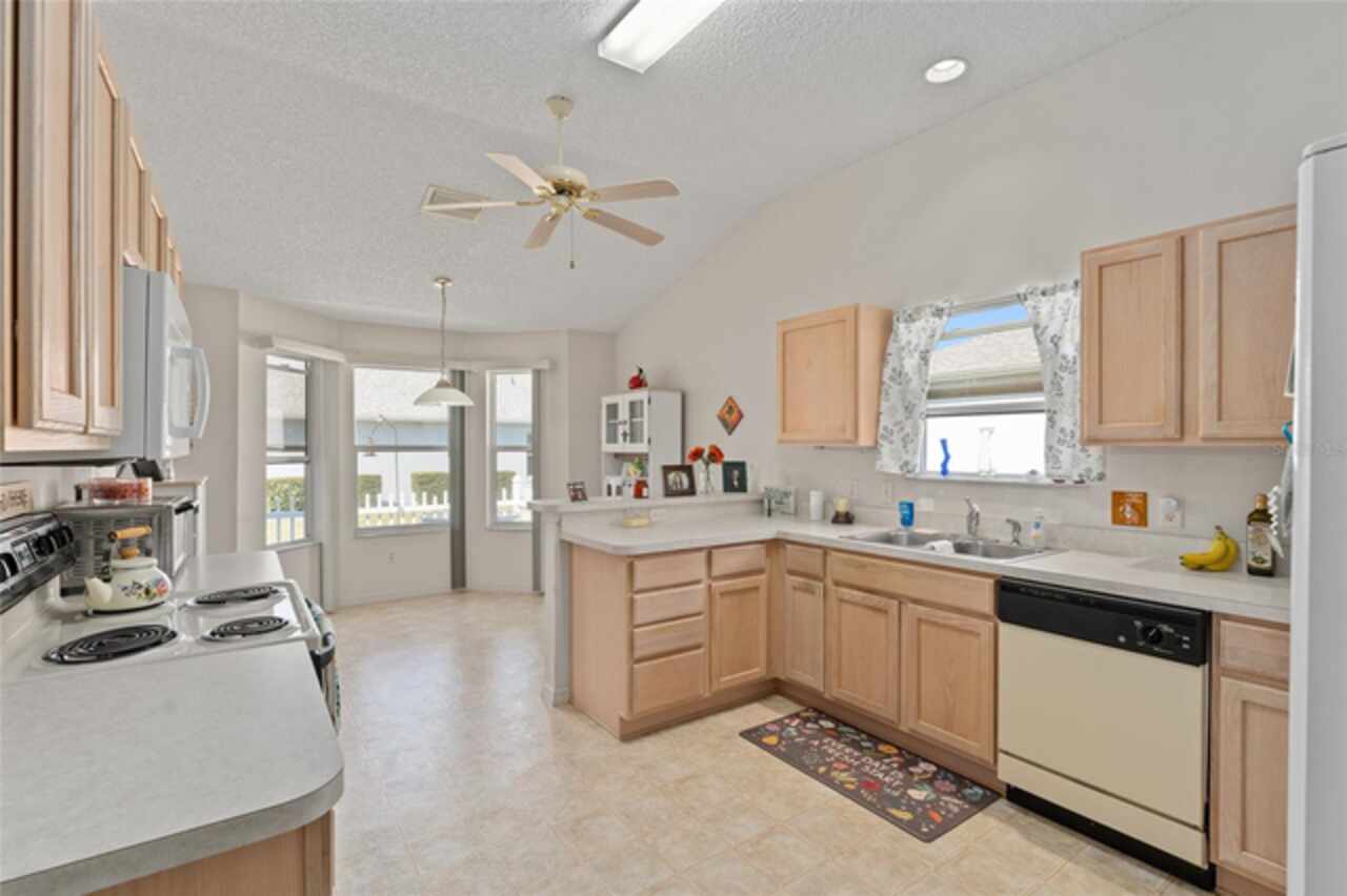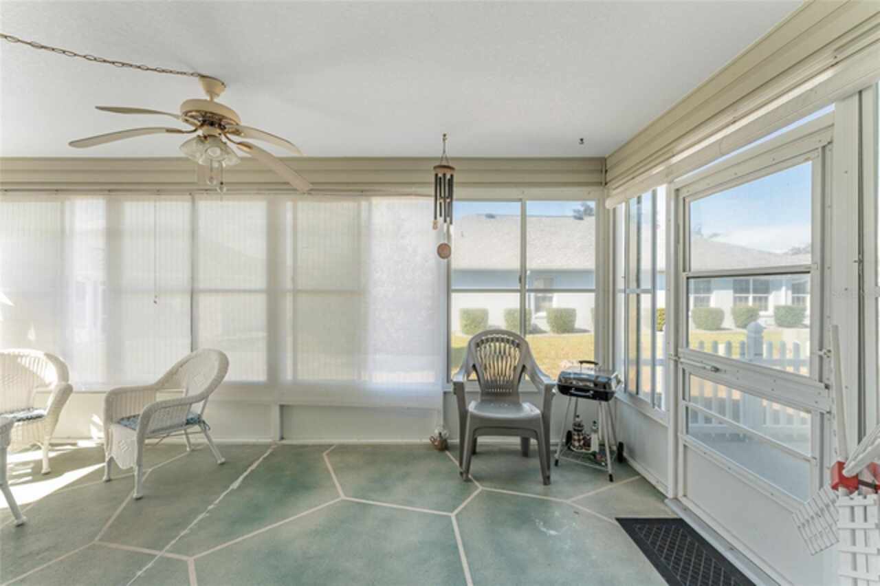 ~NO BOND~ ~ROOF 2022~ ~HVAC 2019~ Discover this delightful 3/2 WHISPERING PINE floorplan located in the beautiful VILLAGE OF GLENBROOK. The spacious kitchen features roll-out cabinets, an eat-in area highlighted by a bay window, perfect for casual dining or entertaining. The primary bedroom retreat features a ceiling fan and walk-in closet. Ceramic tile floor and tile shower with bench seat complement the ensuite bath. Guests will be comfortable in the second bedroom with ceiling fan and large closet. Adjacent is the guest bath boasting ceramic tile floor and tile/tub combo. The third bedroom has no closet. Enjoy the added bonus of an enclosed lanai, ideal for relaxation or gatherings with family and friends. The adjoining patio will accommodate your grill. The 2-car garage houses the washer and dryer. Situated in a lovely neighborhood, this home has optimal access to golf courses, restaurants, shopping, Spanish Springs Square and Lake Sumter Landing. This is an exciting opportunity to add your personal touch and updated style to a classic Villages design. Don’t miss out on making this wonderful house your home.