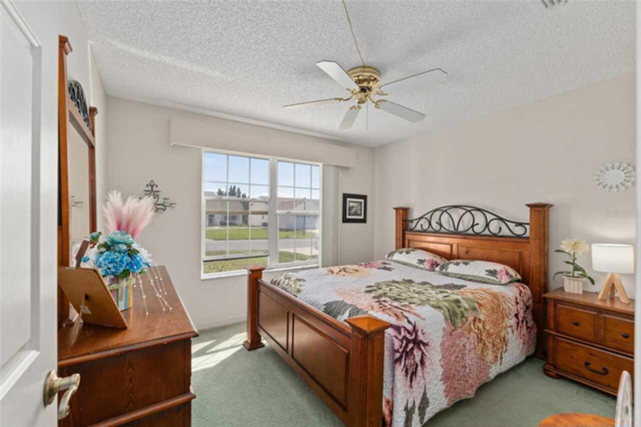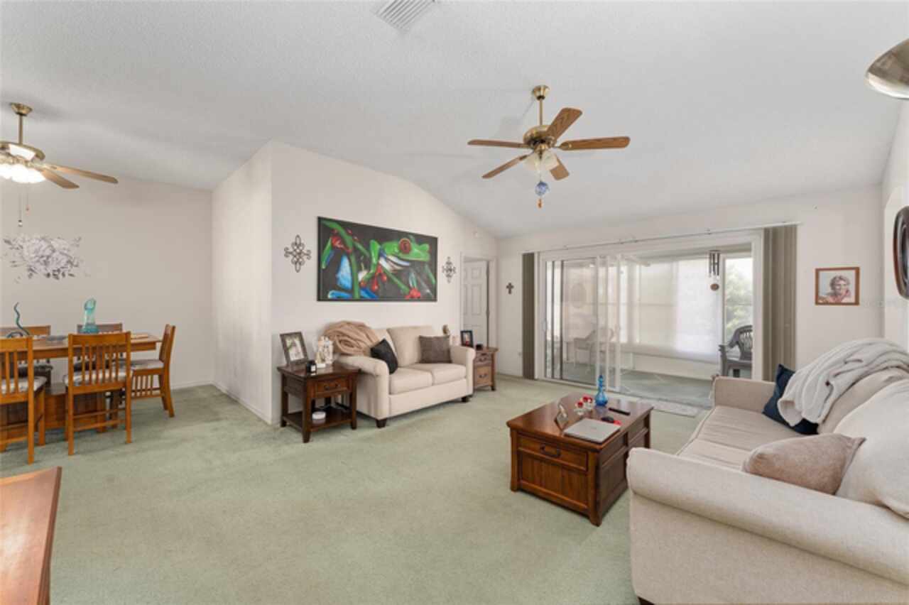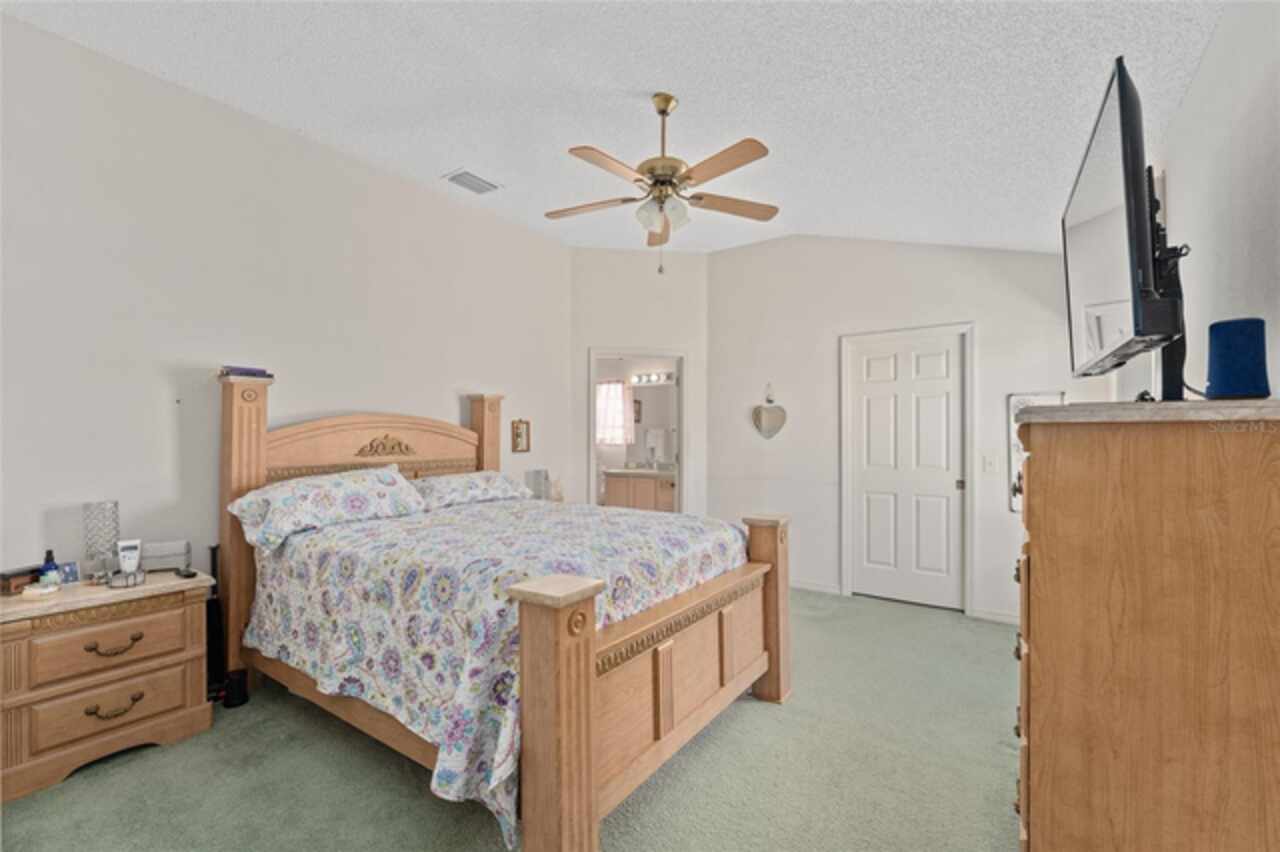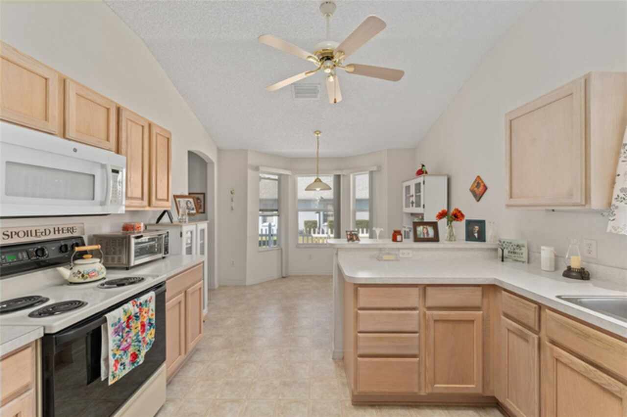 ~NO BOND~ ~ROOF 2022~ ~HVAC 2019~ Discover this delightful 3/2 WHISPERING PINE floorplan located in the beautiful VILLAGE OF GLENBROOK. The spacious kitchen features roll-out cabinets, an eat-in area highlighted by a bay window, perfect for casual dining or entertaining. The primary bedroom retreat features a ceiling fan and walk-in closet. Ceramic tile floor and tile shower with bench seat complement the ensuite bath. Guests will be comfortable in the second bedroom with ceiling fan and large closet. Adjacent is the guest bath boasting ceramic tile floor and tile/tub combo. The third bedroom has no closet. Enjoy the added bonus of an enclosed lanai, ideal for relaxation or gatherings with family and friends. The adjoining patio will accommodate your grill. The 2-car garage houses the washer and dryer. Situated in a lovely neighborhood, this home has optimal access to golf courses, restaurants, shopping, Spanish Springs Square and Lake Sumter Landing. This is an exciting opportunity to add your personal touch and updated style to a classic Villages design. Don’t miss out on making this wonderful house your home.