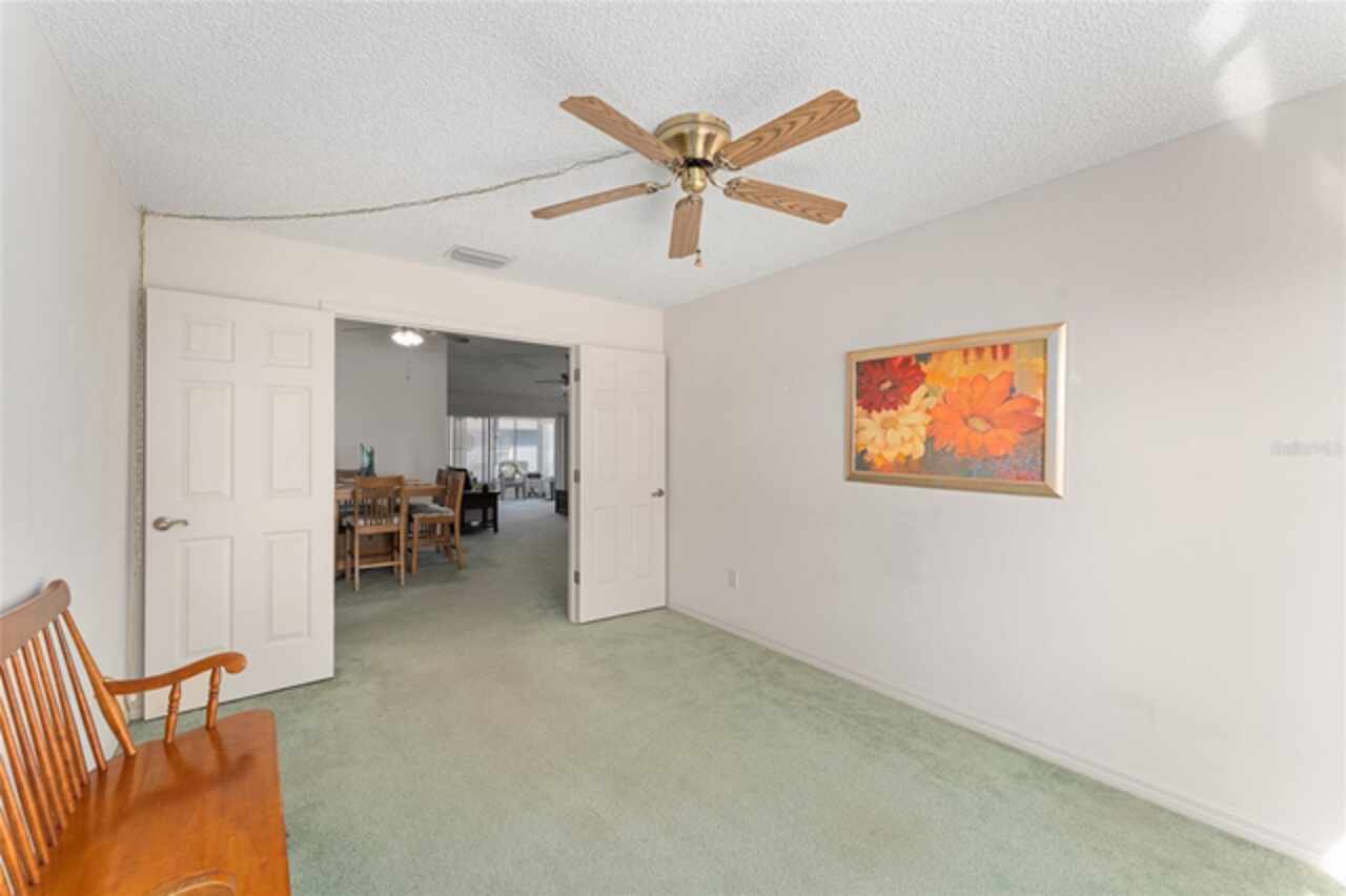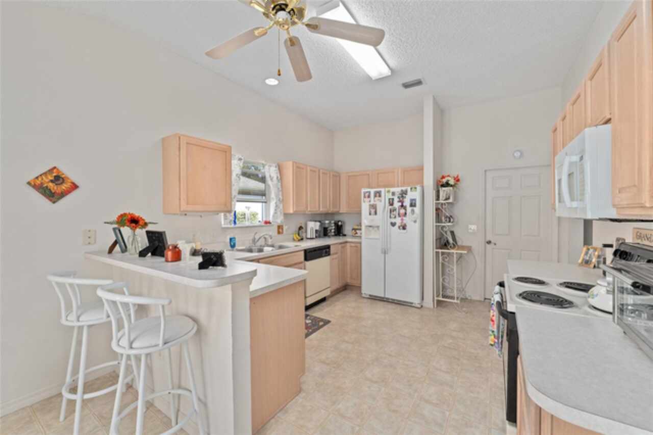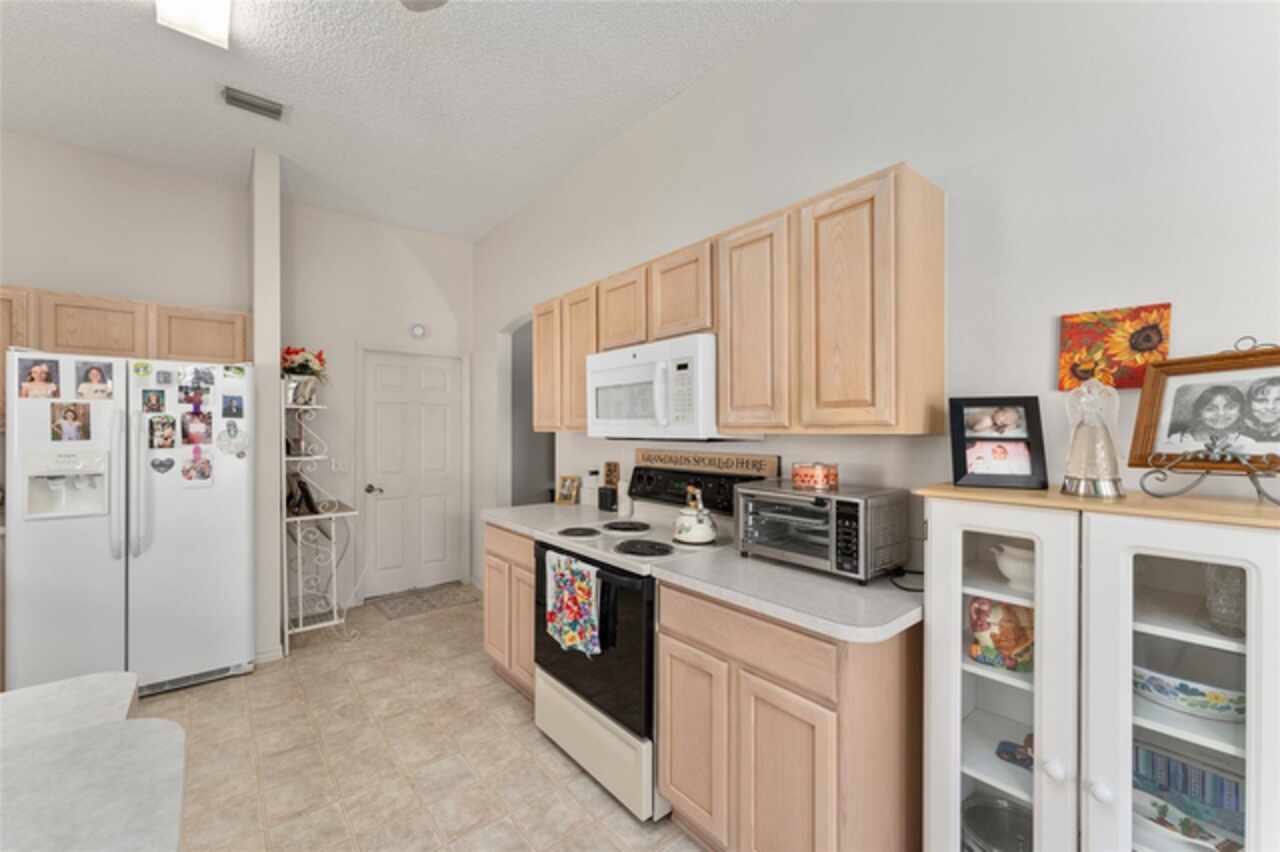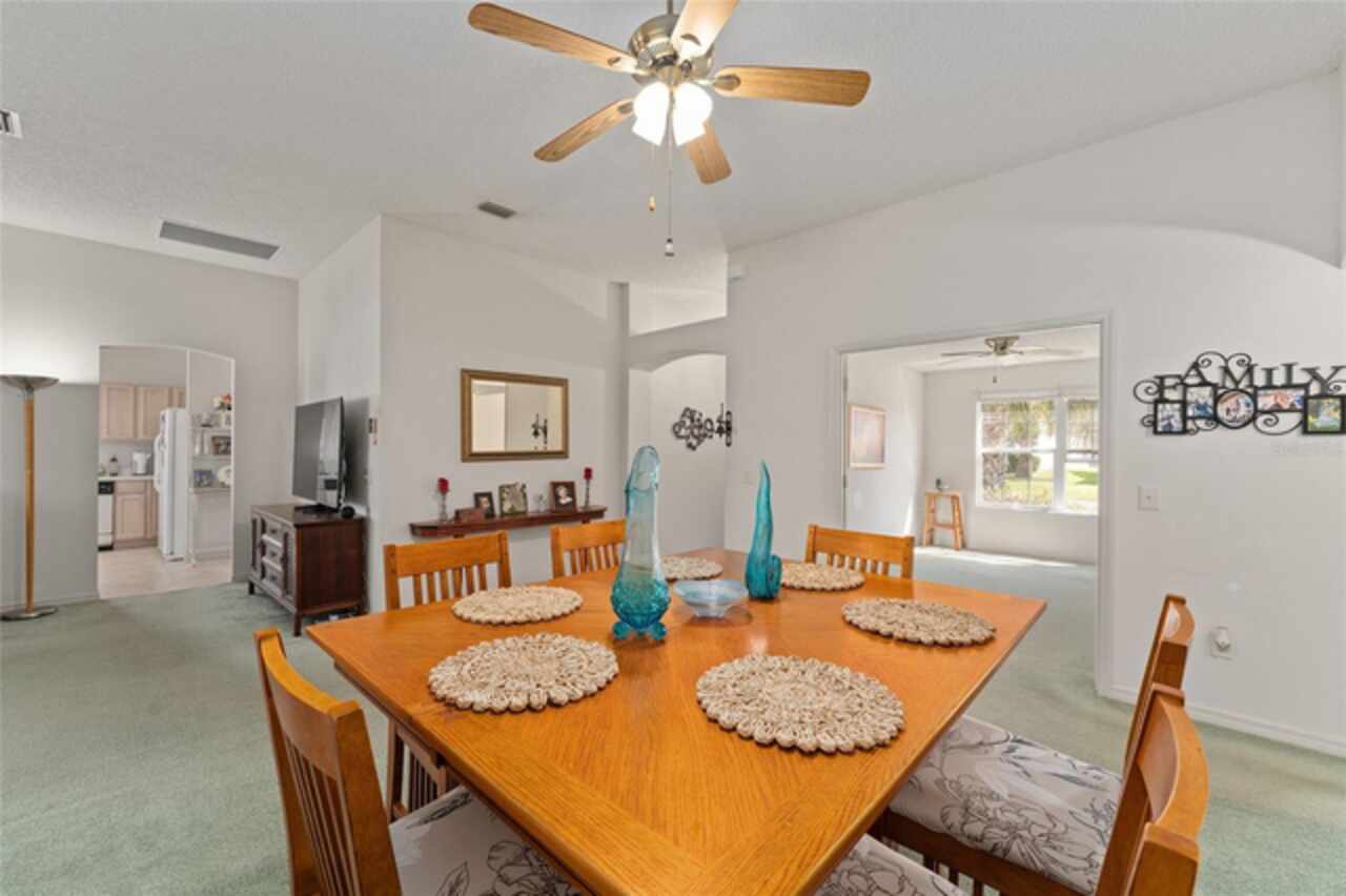 ~NO BOND~ ~ROOF 2022~ ~HVAC 2019~ Discover this delightful 3/2 WHISPERING PINE floorplan located in the beautiful VILLAGE OF GLENBROOK. The spacious kitchen features roll-out cabinets, an eat-in area highlighted by a bay window, perfect for casual dining or entertaining. The primary bedroom retreat features a ceiling fan and walk-in closet. Ceramic tile floor and tile shower with bench seat complement the ensuite bath. Guests will be comfortable in the second bedroom with ceiling fan and large closet. Adjacent is the guest bath boasting ceramic tile floor and tile/tub combo. The third bedroom has no closet. Enjoy the added bonus of an enclosed lanai, ideal for relaxation or gatherings with family and friends. The adjoining patio will accommodate your grill. The 2-car garage houses the washer and dryer. Situated in a lovely neighborhood, this home has optimal access to golf courses, restaurants, shopping, Spanish Springs Square and Lake Sumter Landing. This is an exciting opportunity to add your personal touch and updated style to a classic Villages design. Don’t miss out on making this wonderful house your home.