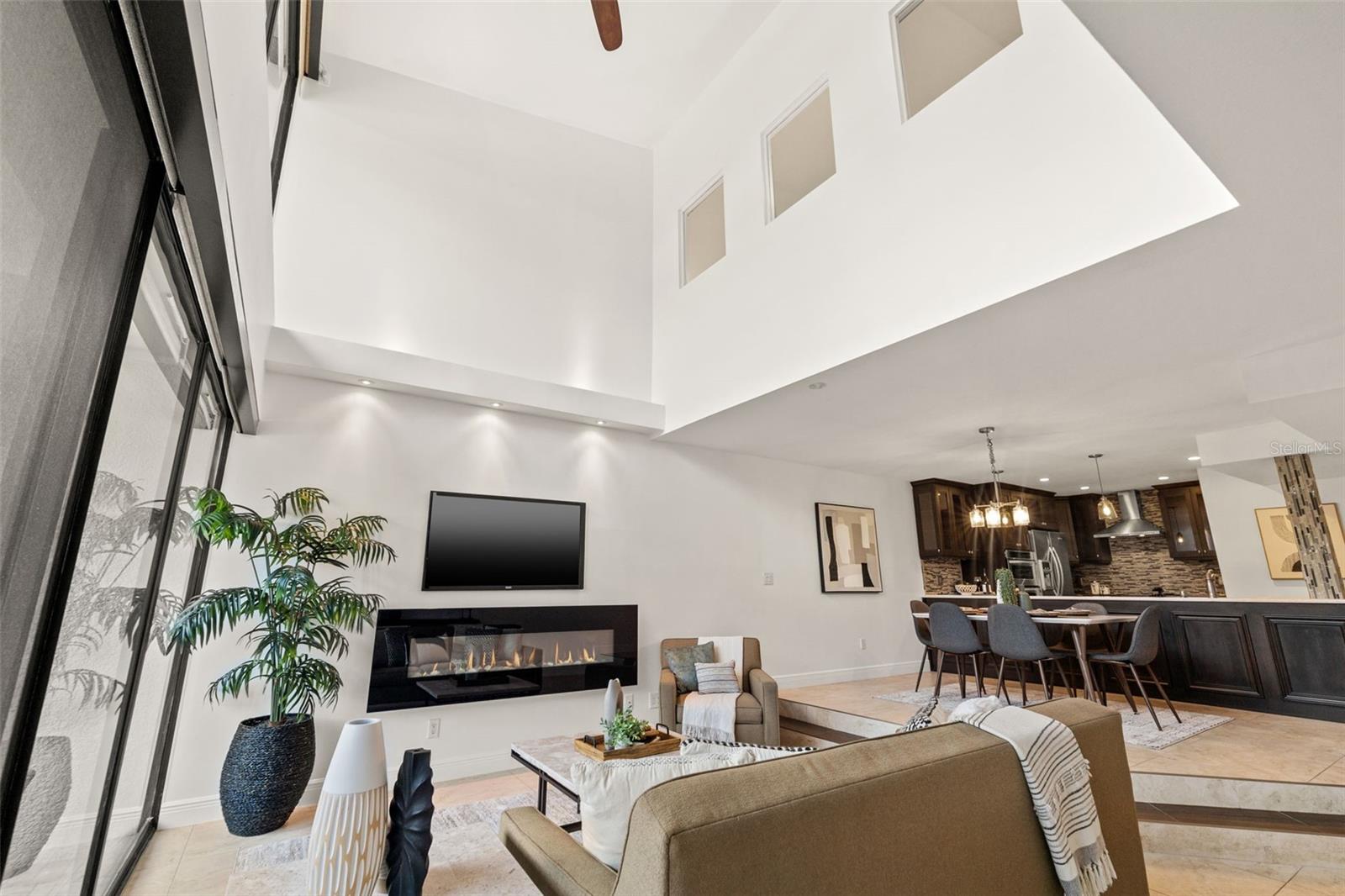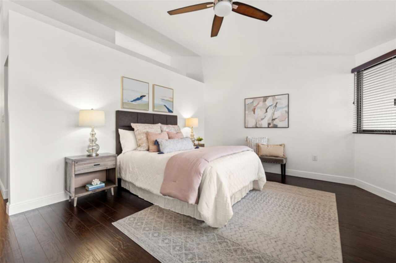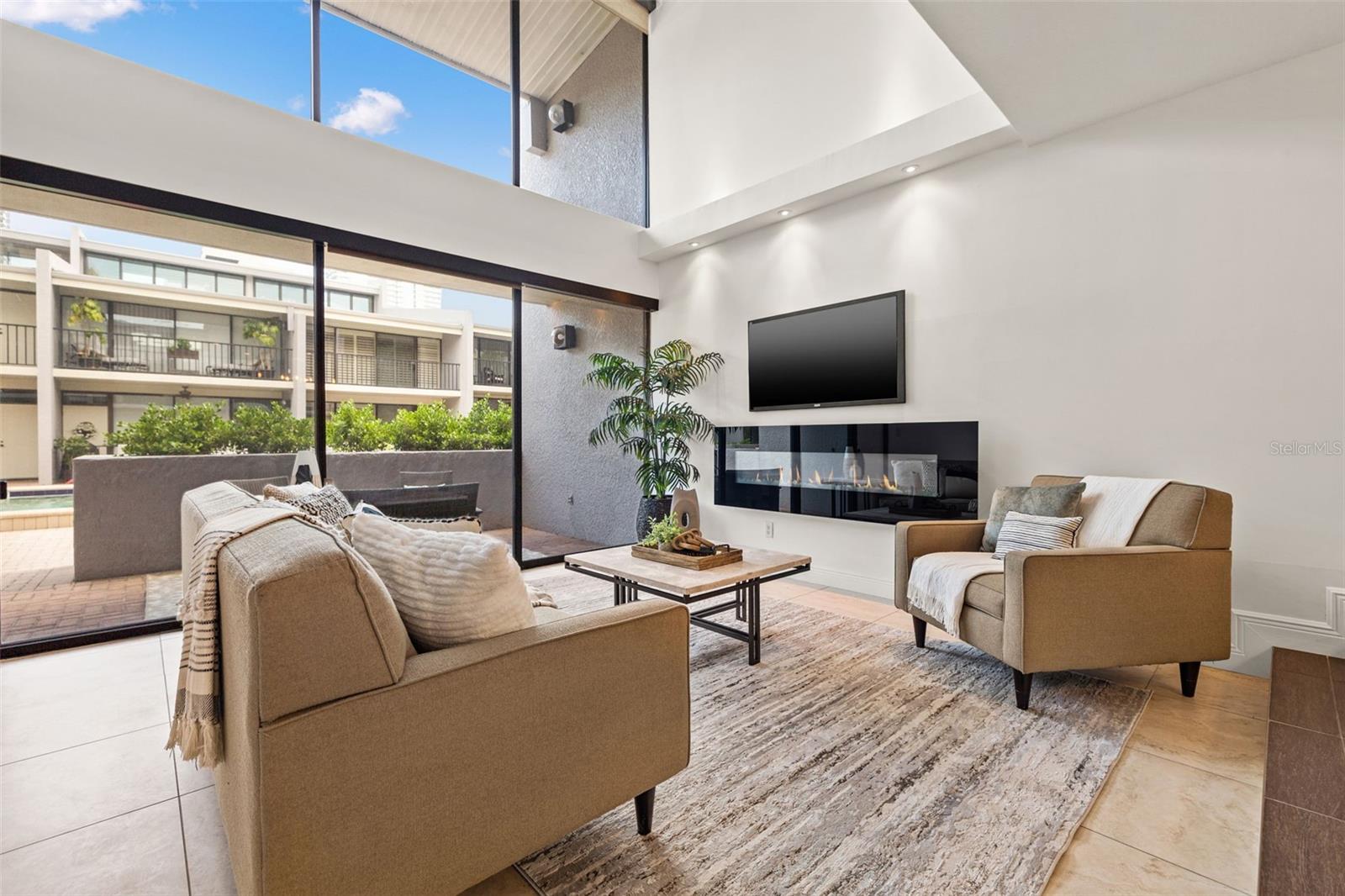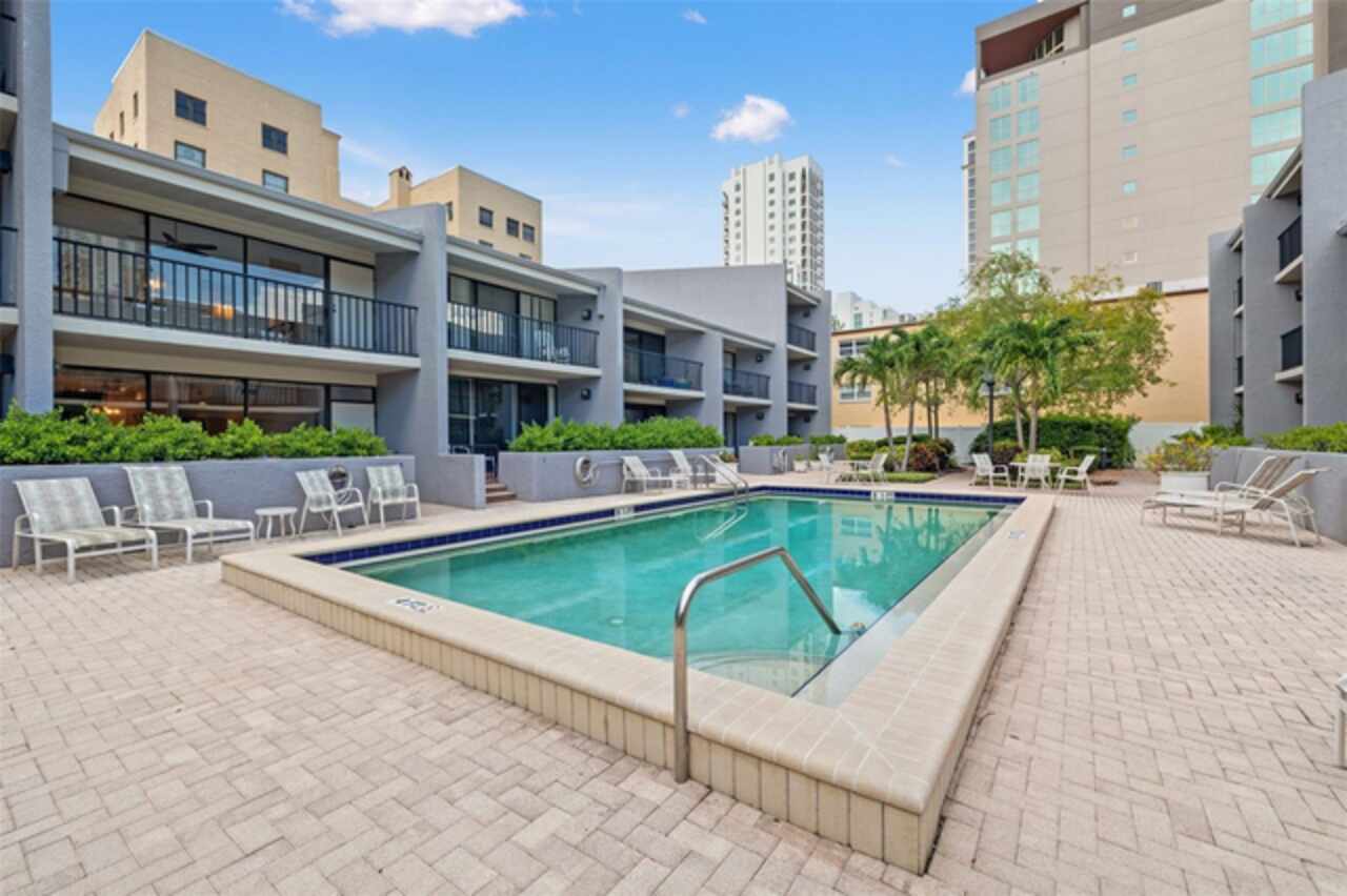 Ditch the car—you won’t need it! If you’ve been searching for walkable downtown living with character, style, and a residential feel, this distinctive three-bedroom townhome in the boutique Fareham Place community may be just what you’ve been waiting for. Ideally located just two blocks from the waterfront, you'll enjoy peaceful surroundings while being just steps from all the energy and excitement of downtown St. Pete. Walk to rooftop bars, award-winning restaurants, sidewalk cafés, coffee shops, museums, galleries, live music, and waterfront parks—it's all right outside your door. This unique townhome offers the best of both worlds with a private entrance, an attached one-car garage with alley access and extra storage, and no need to deal with elevators or parking garages. Inside, you're welcomed by soaring double-height ceilings, an abundance of natural light, and dramatic floor-to-ceiling windows overlooking the community’s lushly landscaped heated pool and spa. The open-concept living and dining areas are ideal for entertaining or relaxing, and the updated kitchen features granite countertops, stainless steel appliances, and plentiful cabinetry. Freshly painted throughout, the home also includes automated window shades for comfort and privacy. Upstairs, the spacious primary suite is a private retreat with vaulted ceilings, a custom walk-in closet, and a beautifully appointed ensuite bath with dual sinks. The split floor plan provides excellent separation, with two additional bedrooms filled with natural light—one of which includes its own private balcony and ensuite bath. This gated 18-unit community is perched 20 feet above sea level in a non-flood, non-evacuation zone—high and dry! HOA fees include roof care (roof replaced in 2024), exterior maintenance, building insurance, cable TV, water, sewer, and trash, making for truly low-maintenance living. A brand-new HVAC system installed in 2024 adds to the value and peace of mind. This is a rare opportunity to own one of downtown St. Pete’s most unique and well-located townhomes—where walkability, privacy, and style meet.