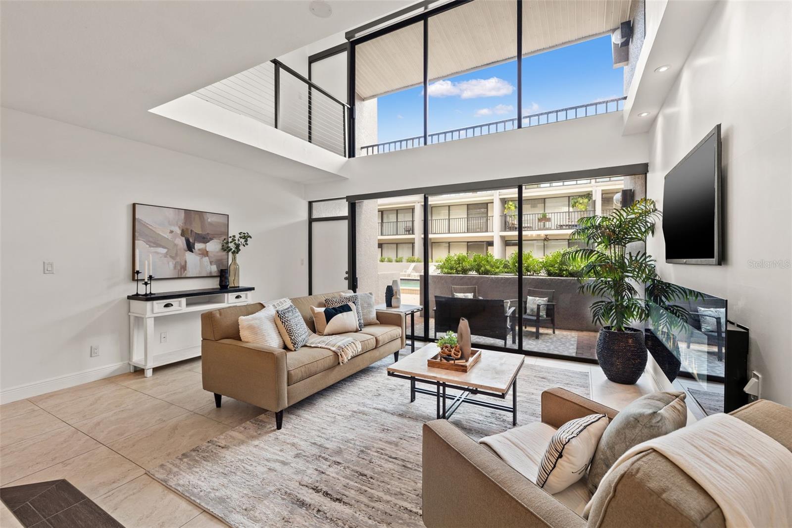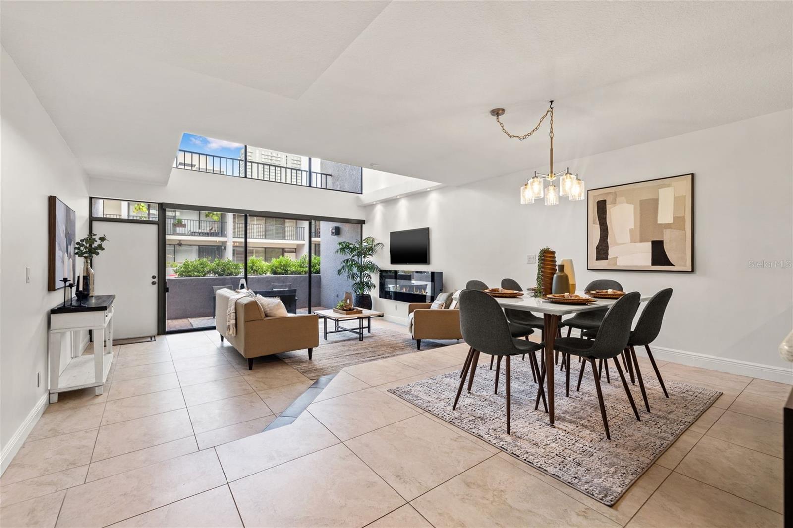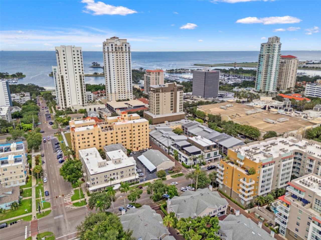 Ditch the car—you won’t need it! If you’ve been searching for walkable downtown living with character, style, and a residential feel, this distinctive three-bedroom townhome in the boutique Fareham Place community may be just what you’ve been waiting for. Ideally located just two blocks from the waterfront, you'll enjoy peaceful surroundings while being just steps from all the energy and excitement of downtown St. Pete. Walk to rooftop bars, award-winning restaurants, sidewalk cafés, coffee shops, museums, galleries, live music, and waterfront parks—it's all right outside your door. This unique townhome offers the best of both worlds with a private entrance, an attached one-car garage with alley access and extra storage, and no need to deal with elevators or parking garages. Inside, you're welcomed by soaring double-height ceilings, an abundance of natural light, and dramatic floor-to-ceiling windows overlooking the community’s lushly landscaped heated pool and spa. The open-concept living and dining areas are ideal for entertaining or relaxing, and the updated kitchen features granite countertops, stainless steel appliances, and plentiful cabinetry. Freshly painted throughout, the home also includes automated window shades for comfort and privacy. Upstairs, the spacious primary suite is a private retreat with vaulted ceilings, a custom walk-in closet, and a beautifully appointed ensuite bath with dual sinks. The split floor plan provides excellent separation, with two additional bedrooms filled with natural light—one of which includes its own private balcony and ensuite bath. This gated 18-unit community is perched 20 feet above sea level in a non-flood, non-evacuation zone—high and dry! HOA fees include roof care (roof replaced in 2024), exterior maintenance, building insurance, cable TV, water, sewer, and trash, making for truly low-maintenance living. A brand-new HVAC system installed in 2024 adds to the value and peace of mind. This is a rare opportunity to own one of downtown St. Pete’s most unique and well-located townhomes—where walkability, privacy, and style meet.