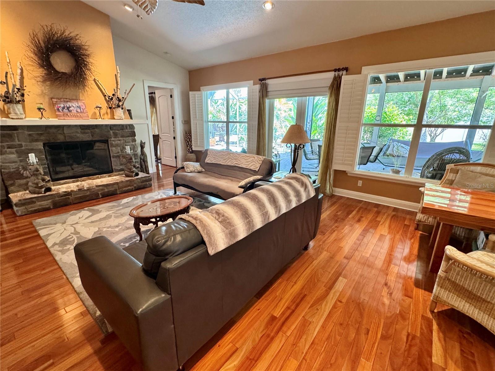Ceiling Fans(s), Eat-in Kitchen, Open Floorplan, Primary Bedroom Main Floor, Solid Wood Cabinets, Stone Counters, Thermostat, Vaulted Ceiling(s), Walk-In Closet(s), Window Treatments